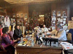 Mayor Domenic J. Sarno and Chief of Staff Bill Baker met School Committeewoman-Elect Ayanna Crawford and Takeshia Crowder.