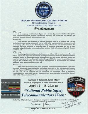 Chief of Staff Bill Baker on behalf of Mayor Domenic J. Sarno joined with Springfield’s Emergency Communications team at the Fire Dispatch Office on Friday afternoon to help recognize and celebrate National Public Safety Telecommunicators Week with…