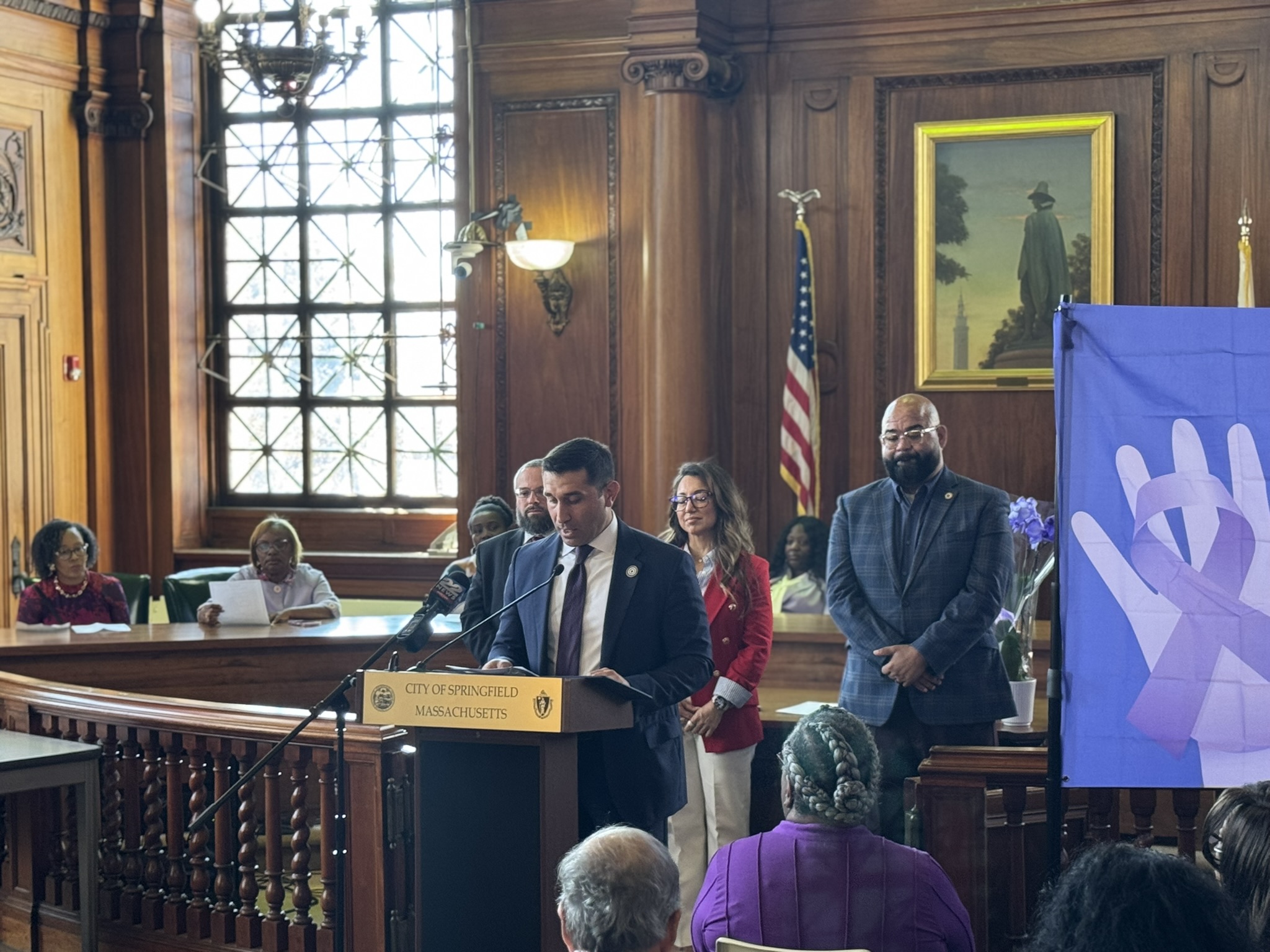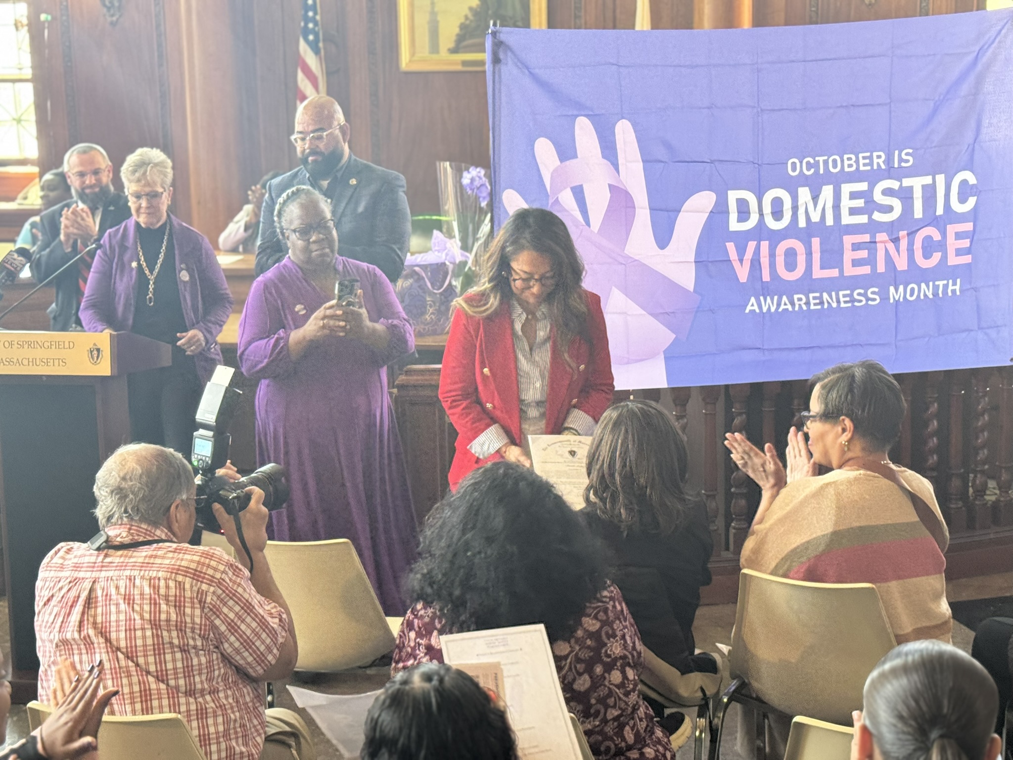 Mayor Sarno states, “Domestic Violence is a serious and important issue. My administration is proud to stand together with Councilor Kateri Walsh and our Women’s Commission to help raising awareness to this important issue. Anyone can be a victim of domestic violence. Our Springfield Police Department responds to more than 10,000 calls for domestic violence each year. Under Police Superintendent Larry Akers’ leadership, with SPD’s Domestic Violence Coordinator/Administrator Milta Vargas, our Springfield Police Department maintains a dedicated staff of domestic violence advocates to provide help and support to victims. We want to encourage anyone who may be a victim or think they are a victim of domestic violence to call our advocates at (413) 735-1519 or (413) 735-1510.”