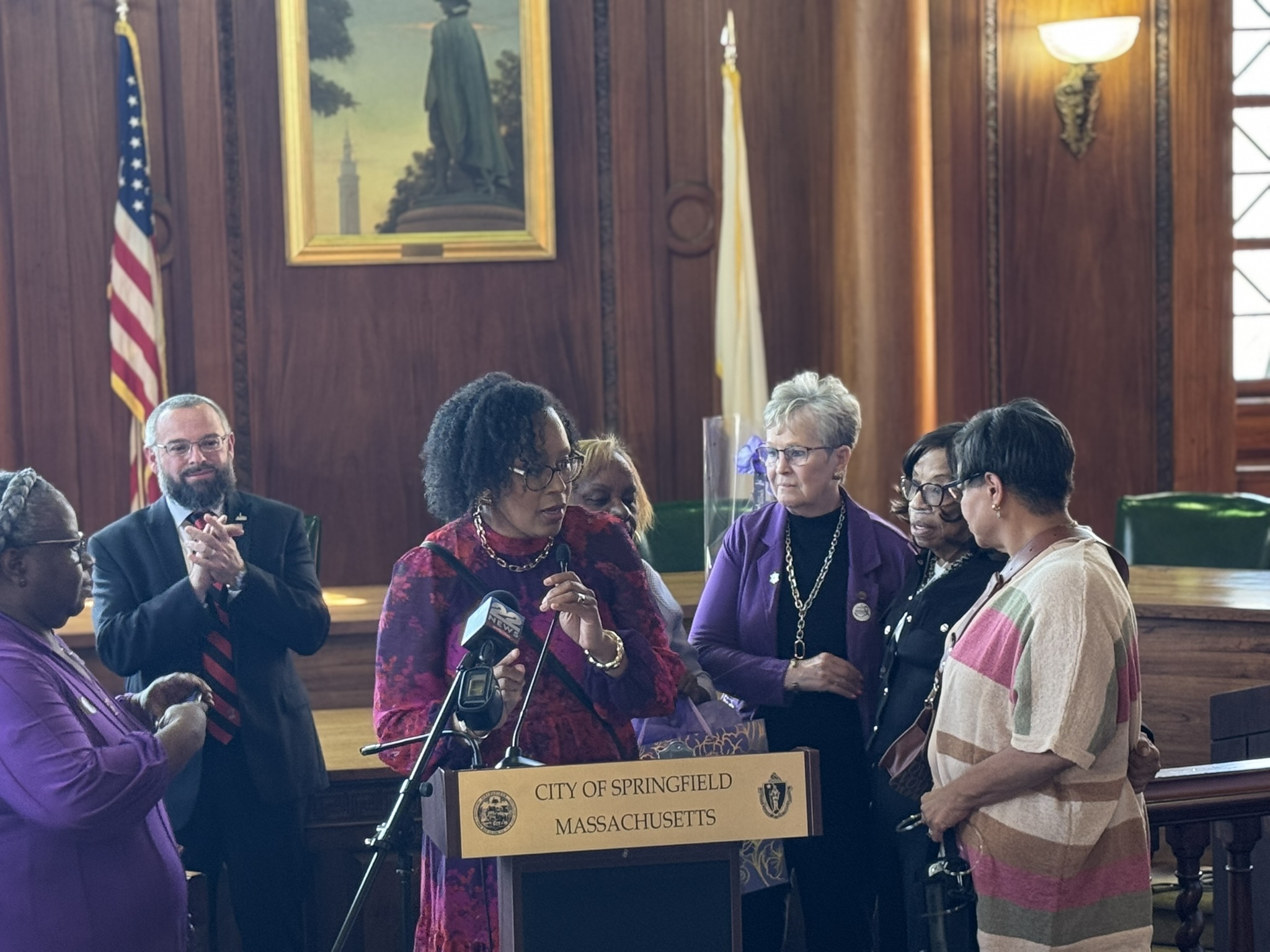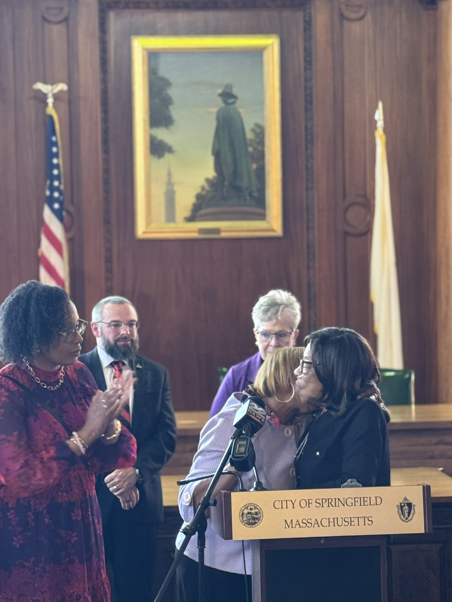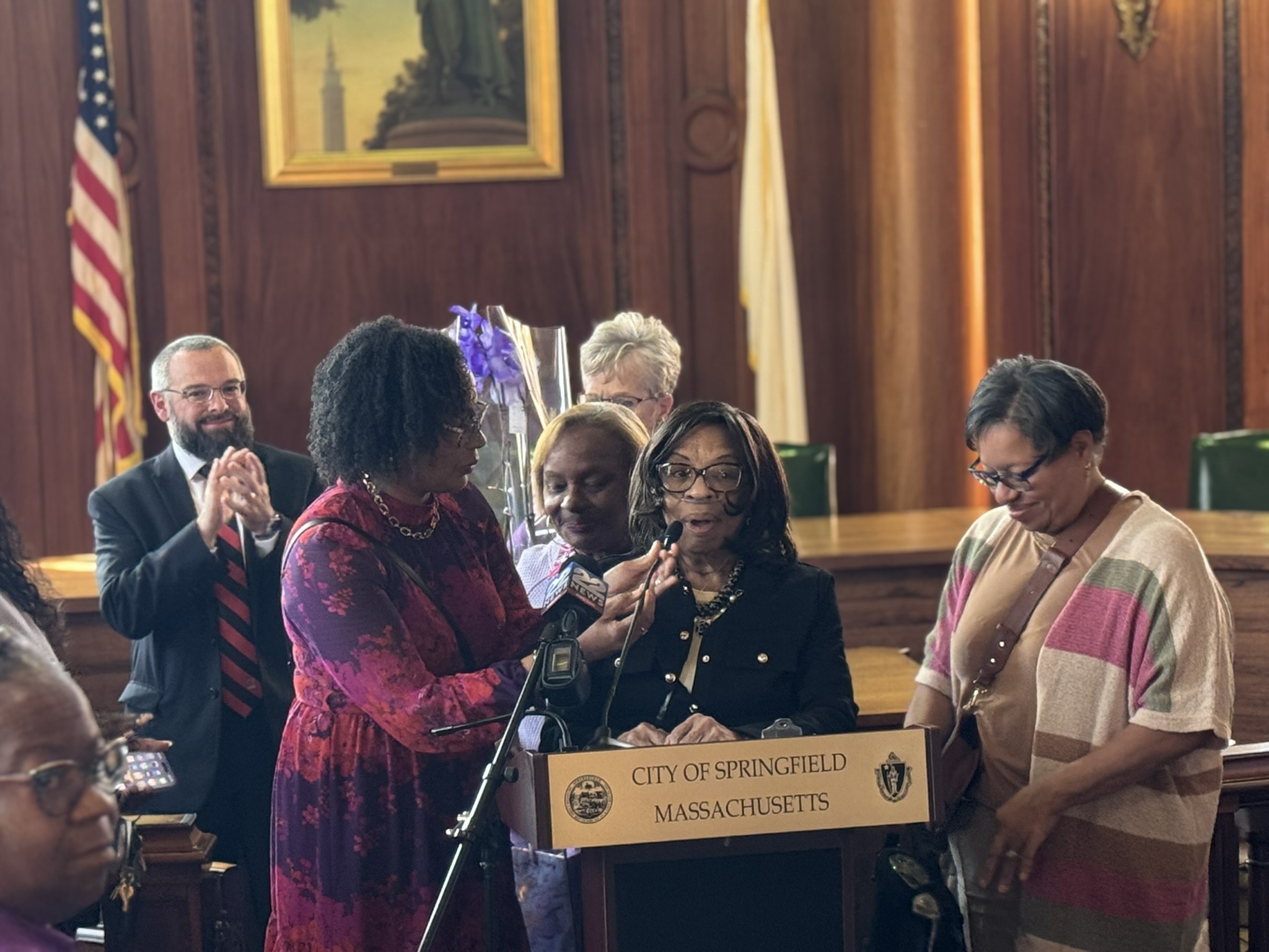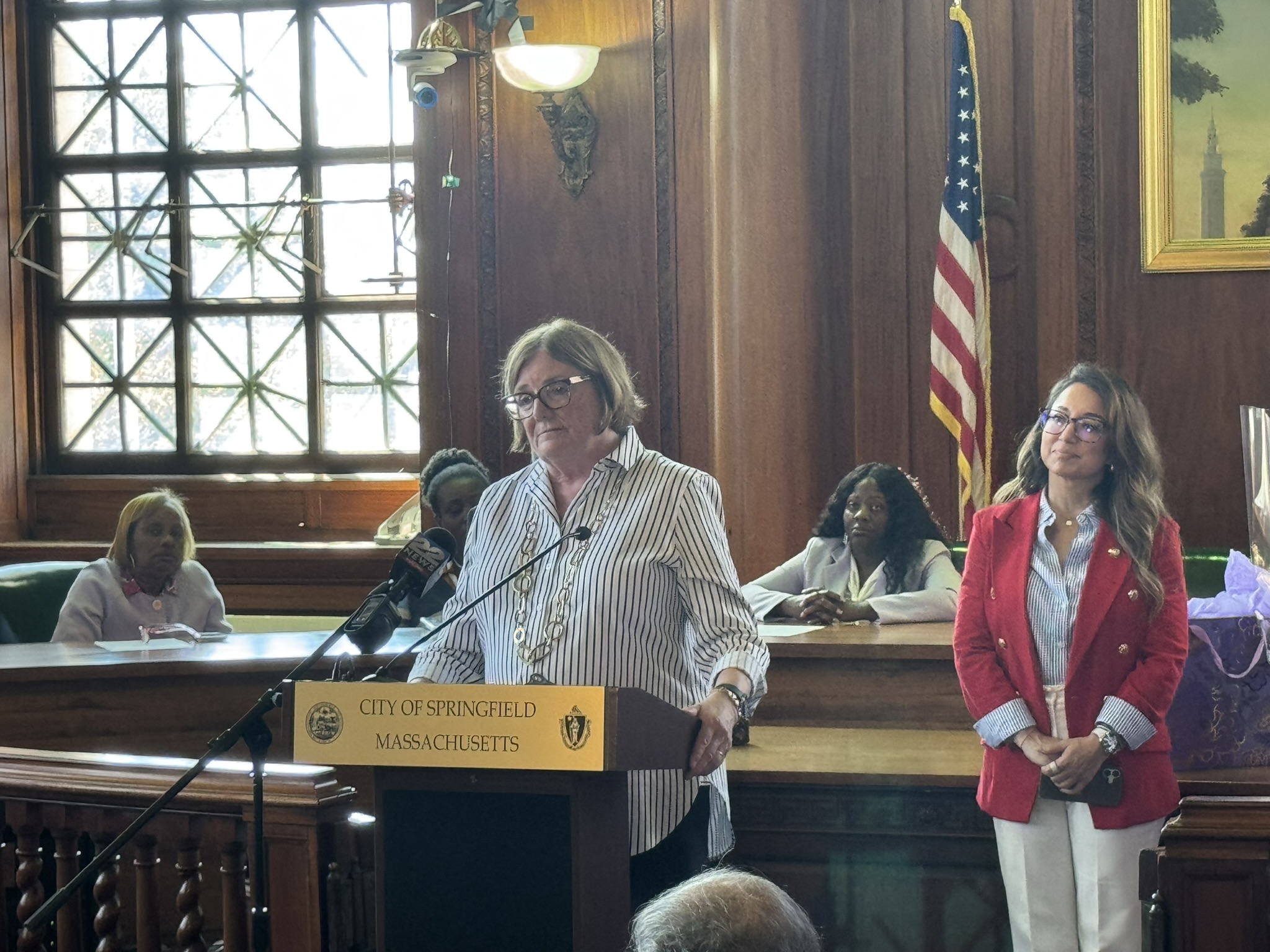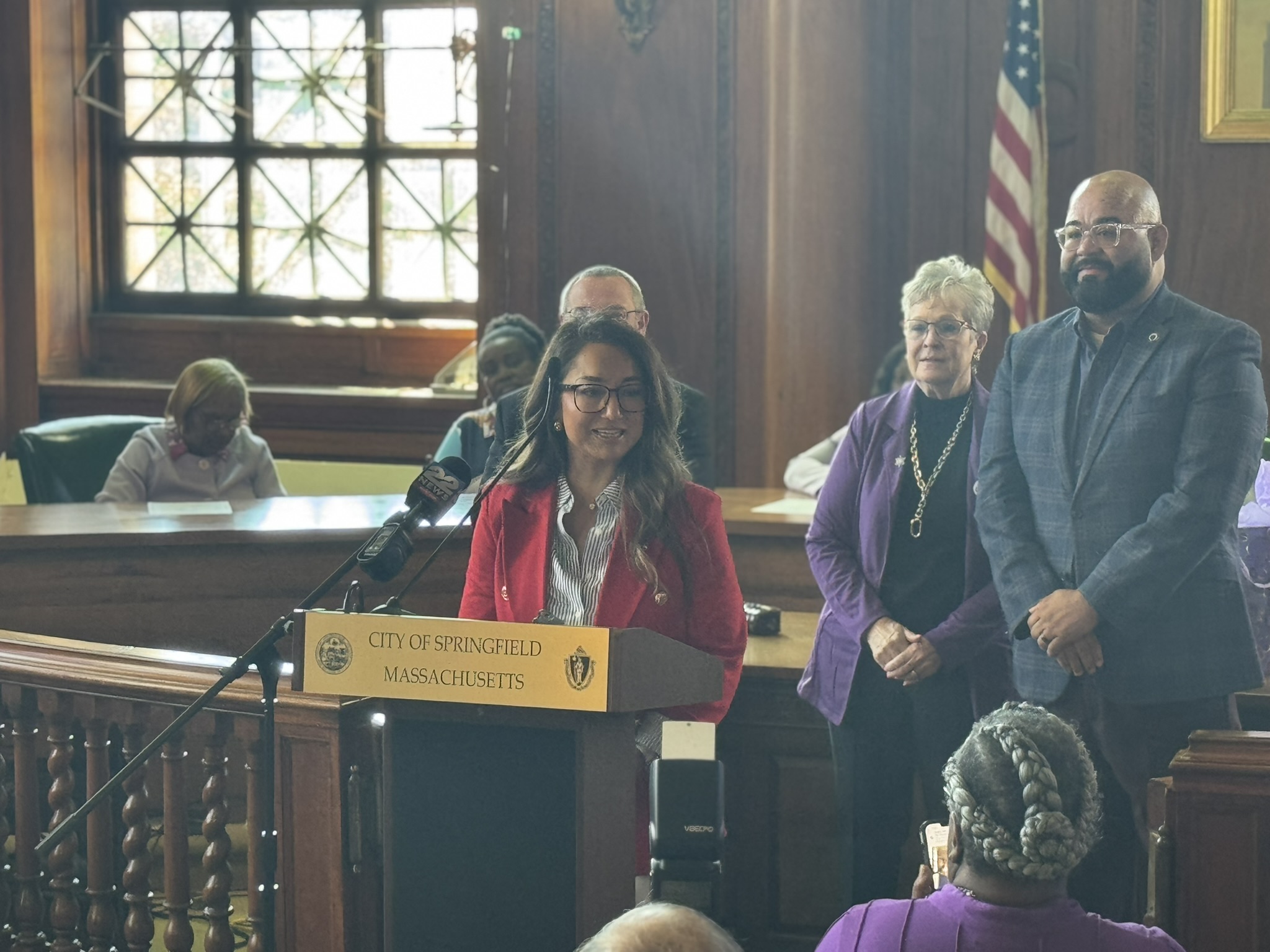 Also in attendance were, Health and Human Services Commissioner Helen Caulton-Harris, Chief Diversity and Inclusion Officer Judi Crowell, Police Superintendent Larry Akers, Fire Commissioner BJ Calvi, Jesse Ledermen from Senator Ed Markey’s Office, State Senator Adam Gomez, Eliana Gutierrez on behalf of State Representative Carlos Gonzalez, Ayanna Crawford on behalf of State Representative Orlando Ramos, Vice President of the City Council Tracye Whitfield, City Councilors Maria Perez, and Brian Santaniello, Jean Canosa Albano, Jillian Hinkson, and Tracey Carpenter.