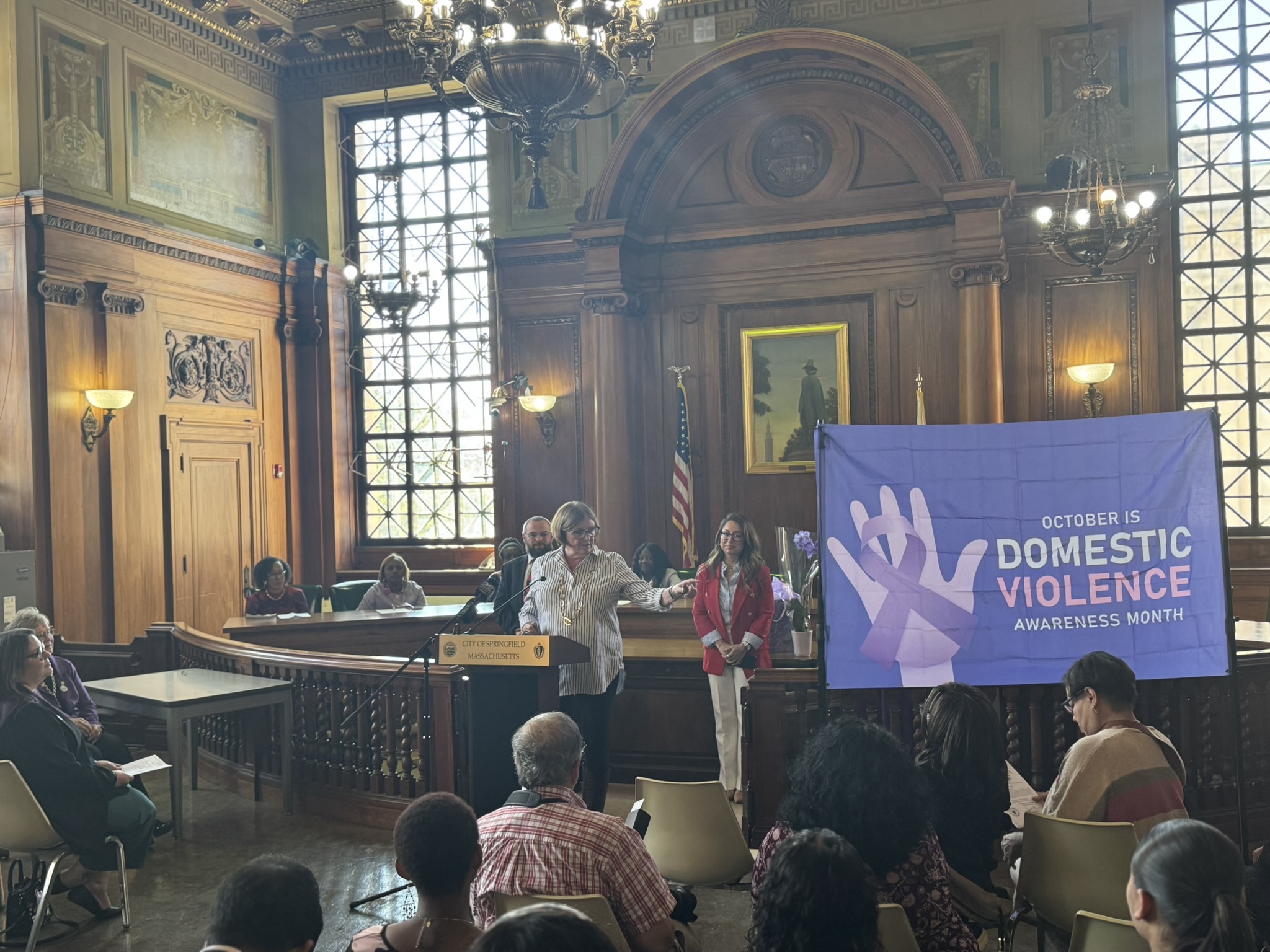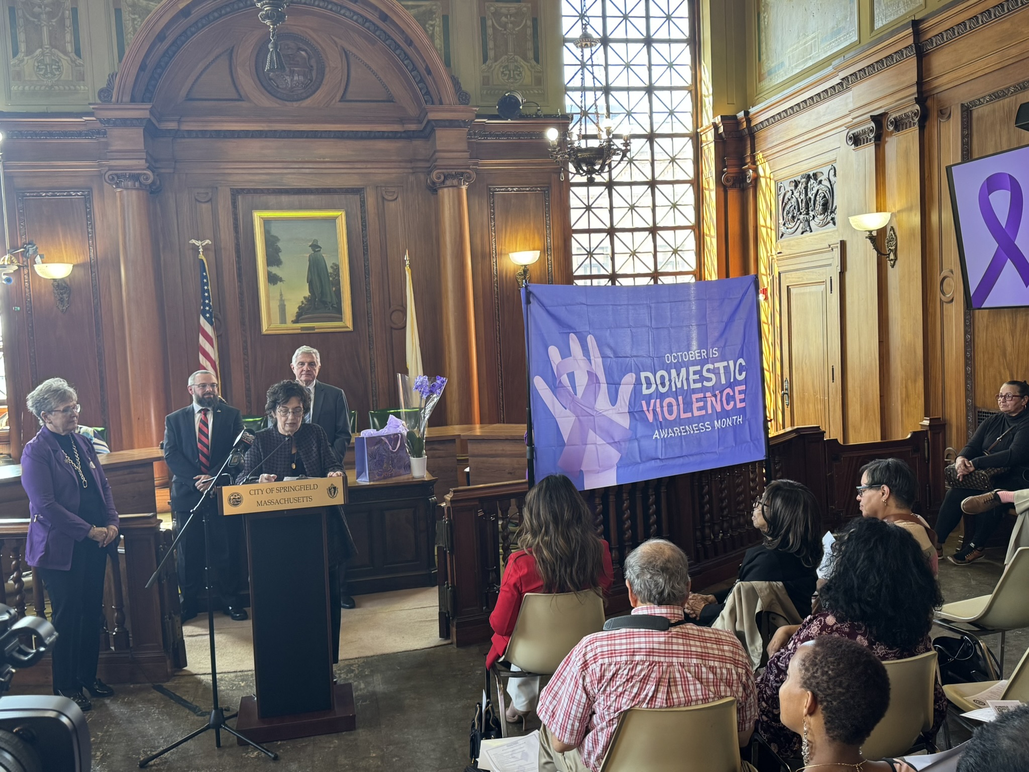 Chief of Staff Bill Baker, on behalf of Mayor Domenic J. Sarno and city officials joined City Councilor Kateri Walsh and the Springfield Women’s Commission for a public forum in recognition of Domestic Violence Awareness Month which takes place each October.