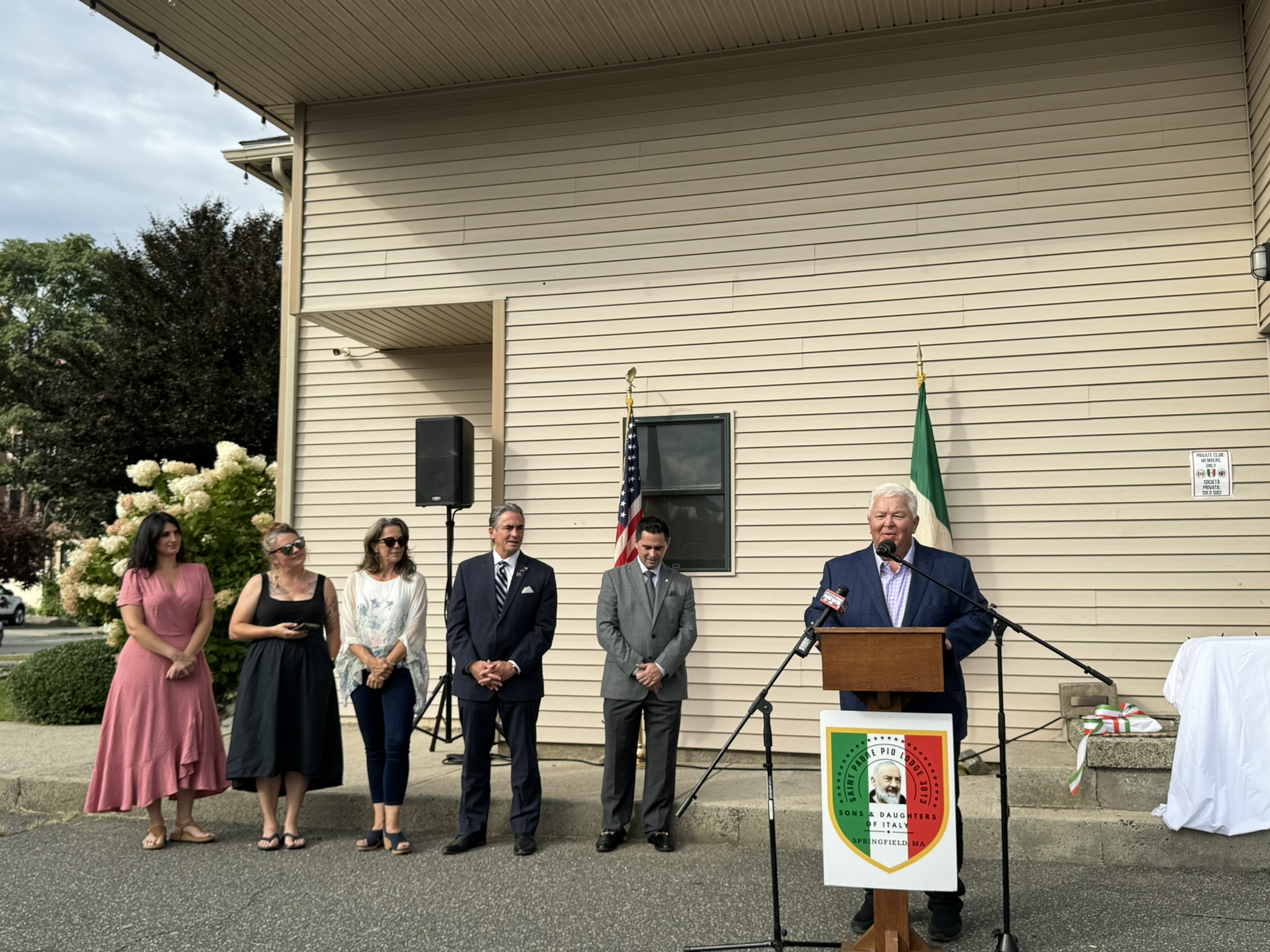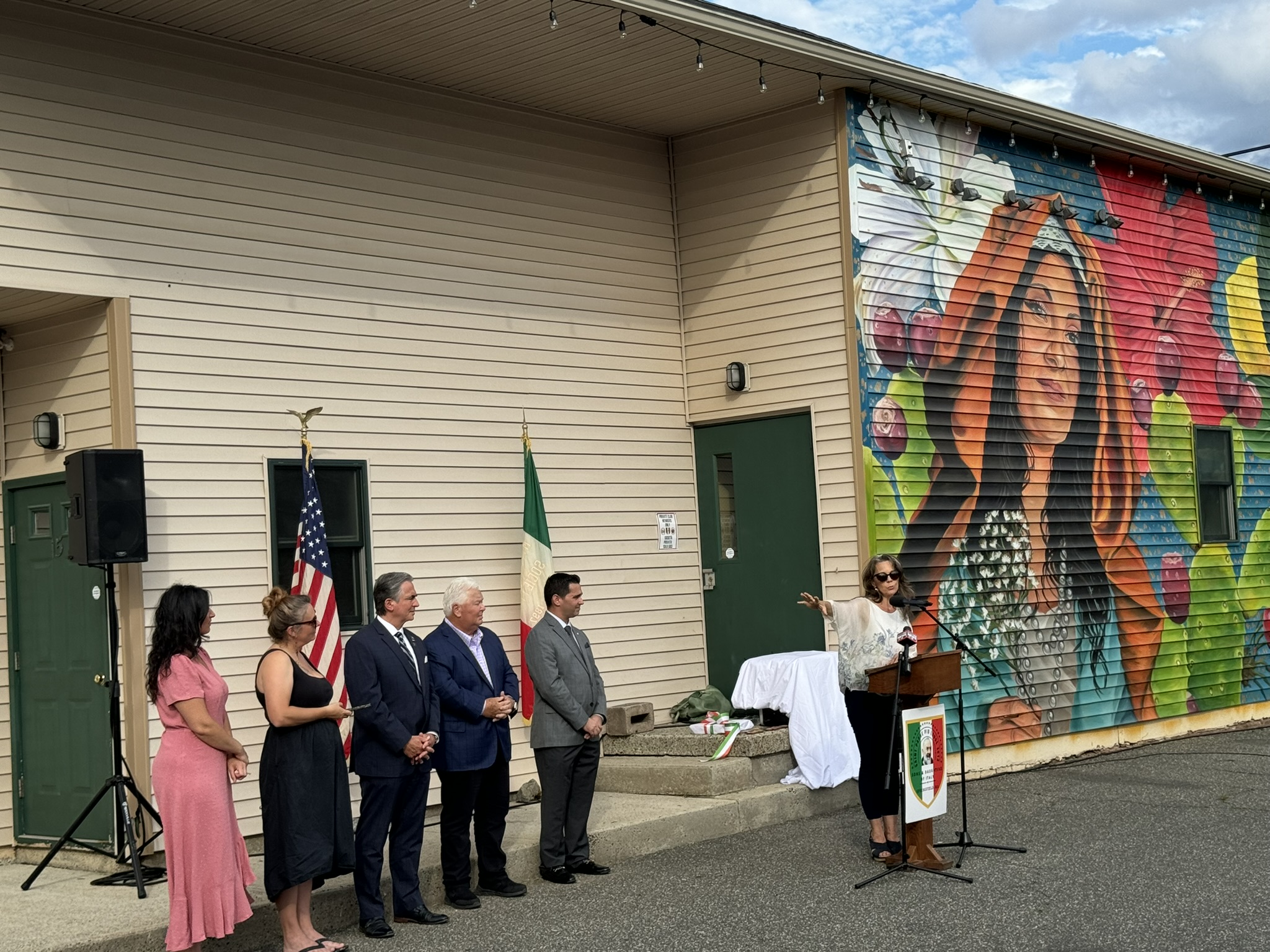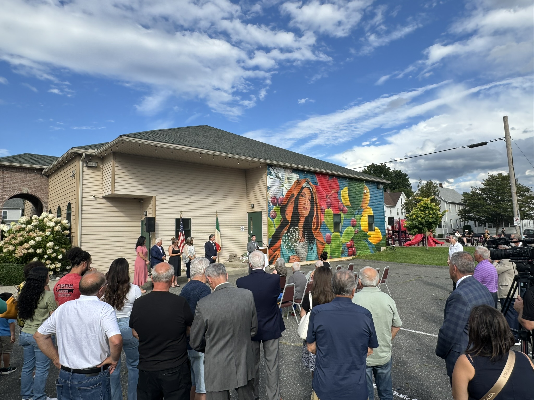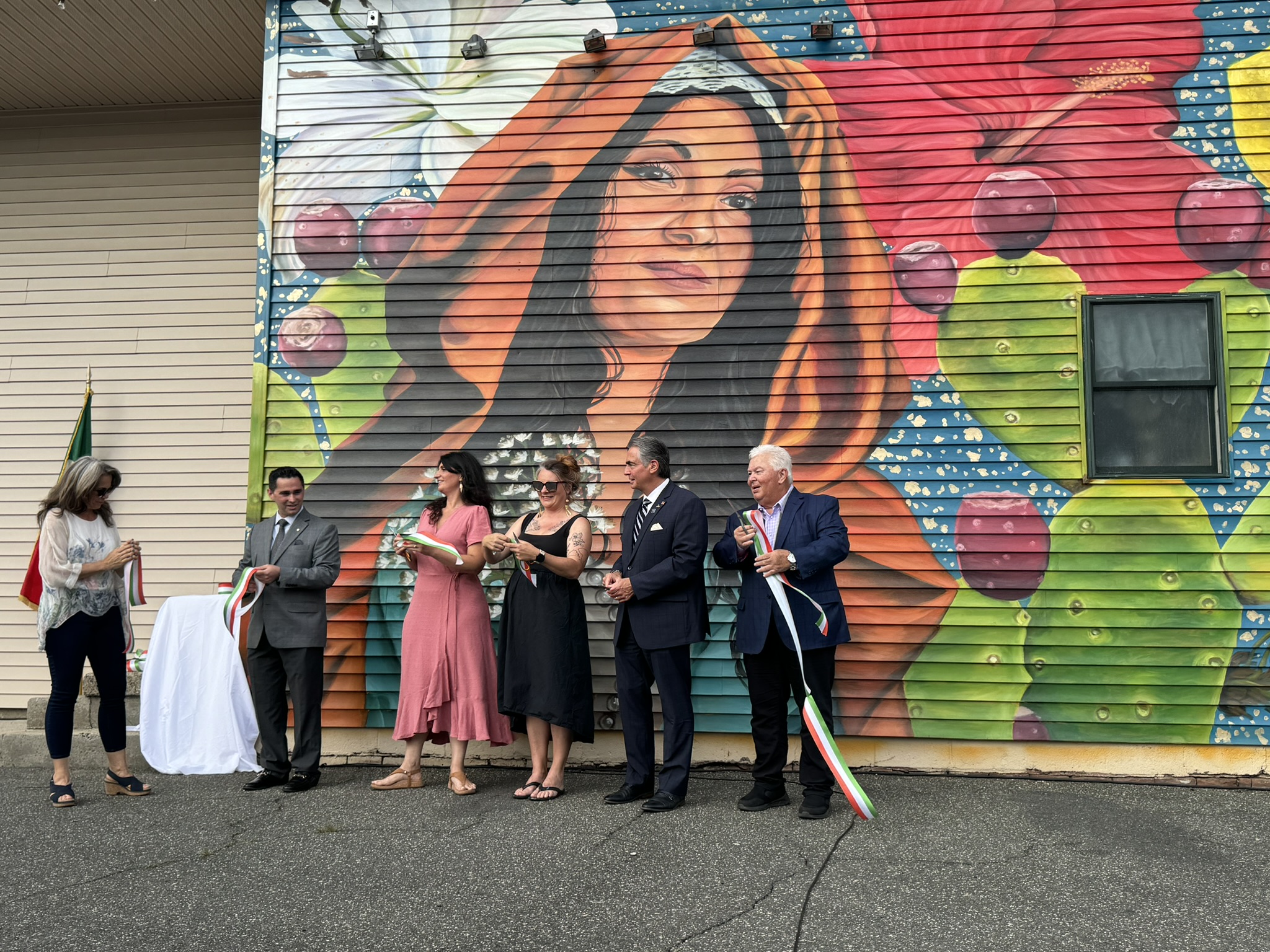 Mayor Domenic J. Sarno and city officials joined with Common Wealth Murals Director Britt Ruhe, Honorary Consul General for the Italian Consulate in Springfield Paul Picknelly, members of the Our Lady of Mt. Carmel Society, members of the Sons and Daughters of Italy led by Salvatore “Sal” Circosta, and the South End Community on Monday for the unveiling and ribbon cutting ceremony of the brand-new mural in the South End. The artist who completed the new mural located at the Mt. Carmel Society, Nico Cathcart, joined and gave remarks. Councilor Brian Santaniello also joined.