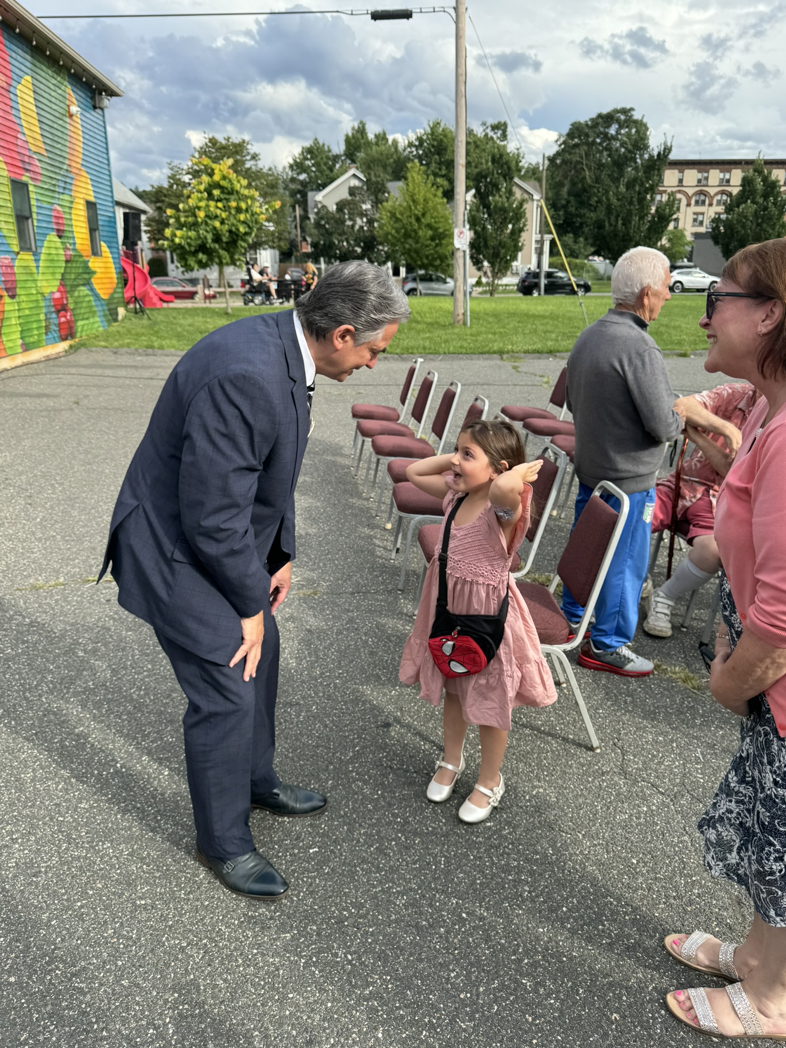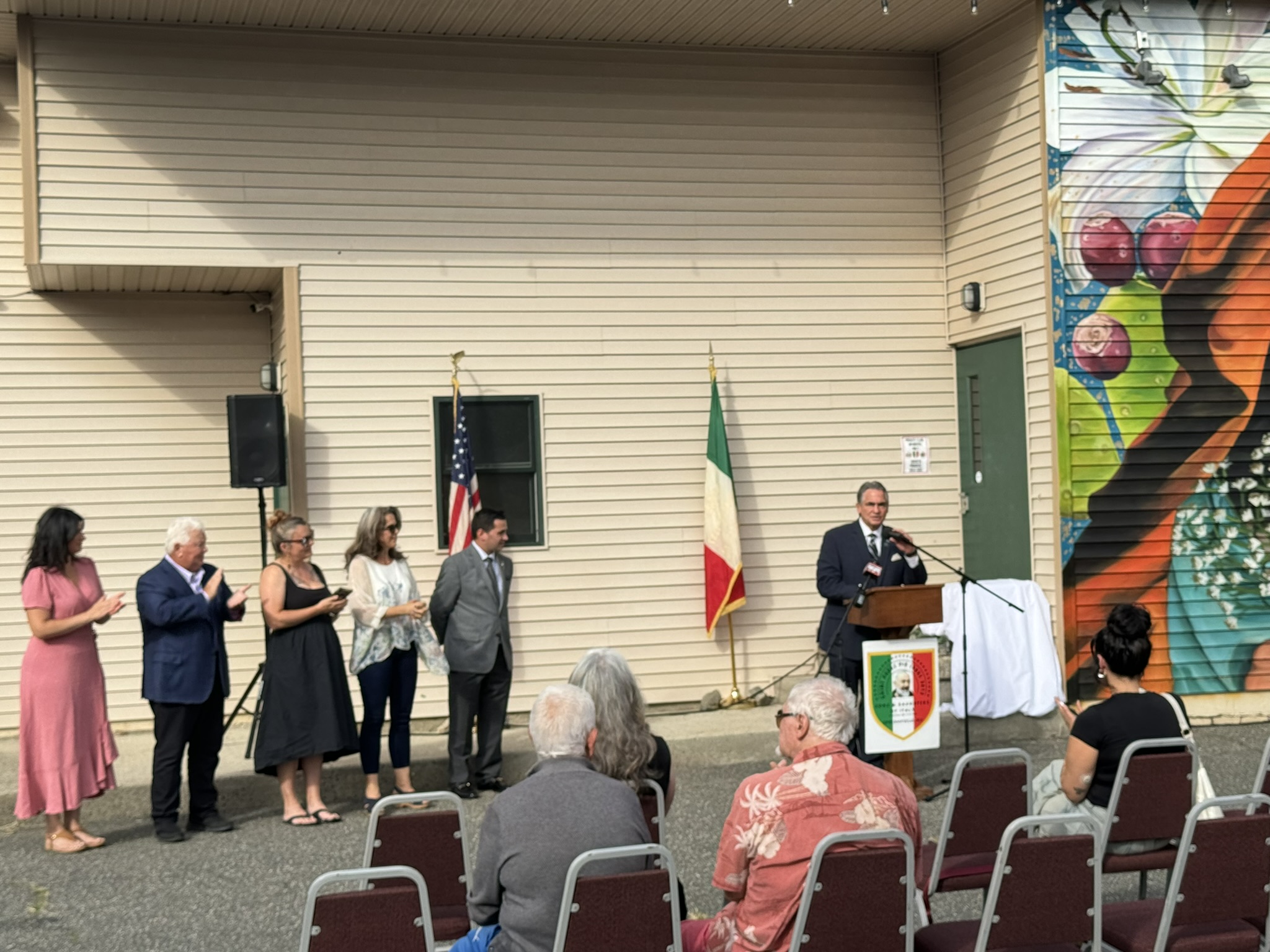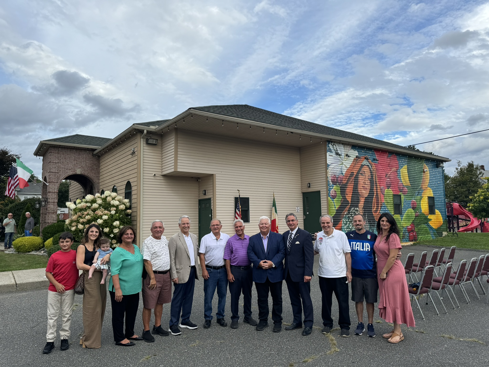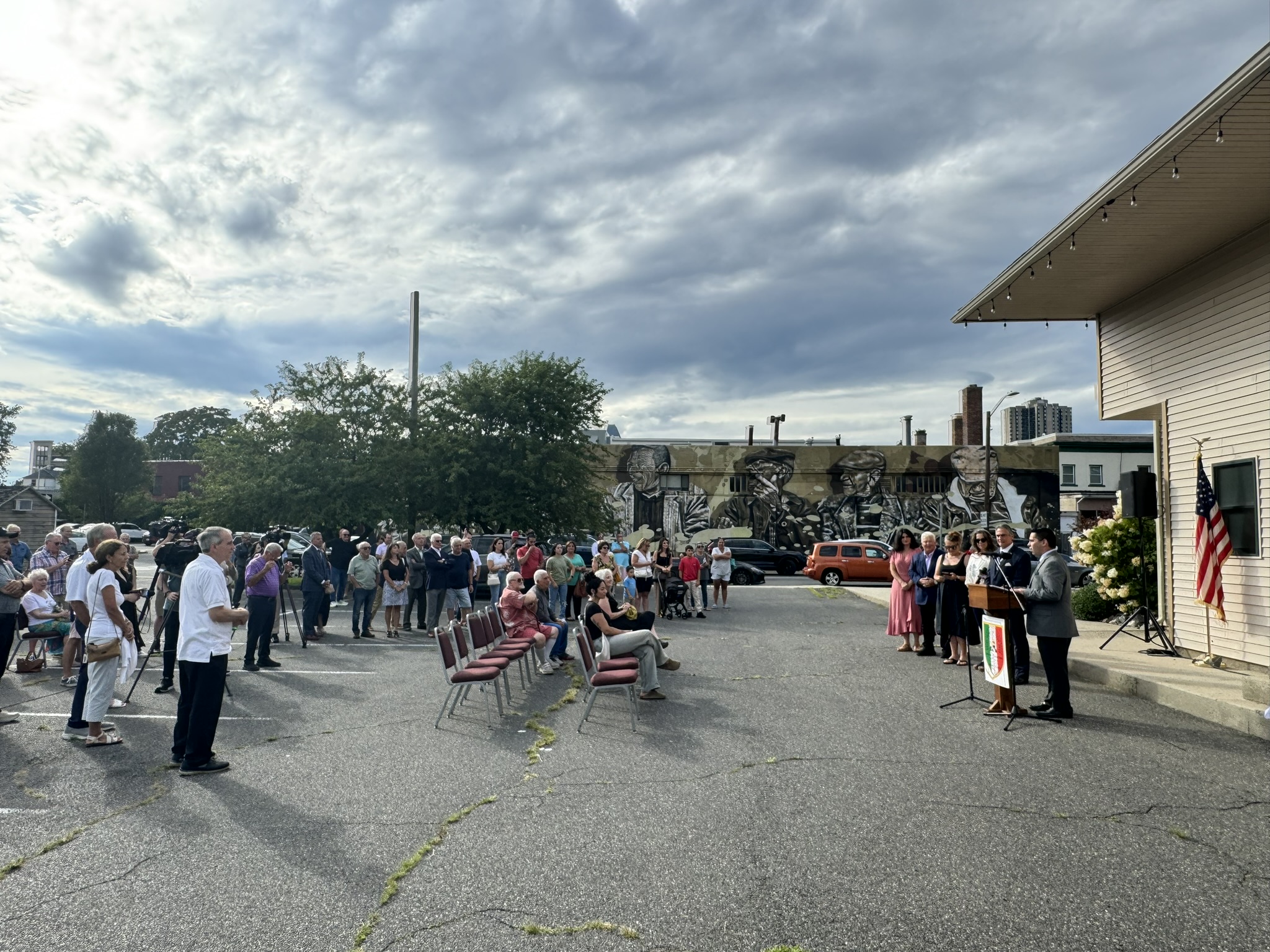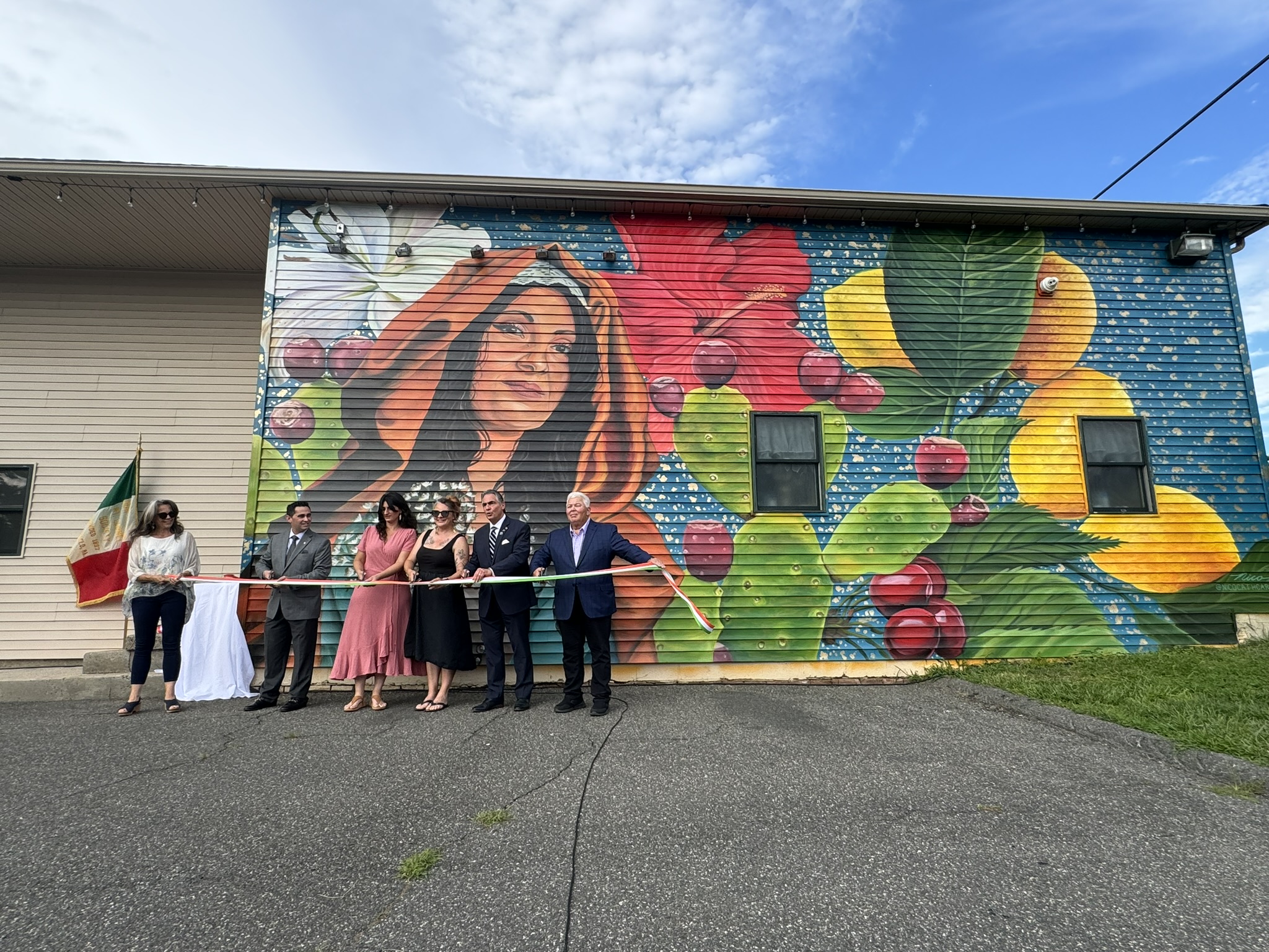 Mayor Domenic J. Sarno and city officials joined with Common Wealth Murals Director Britt Ruhe, Honorary Consul General for the Italian Consulate in Springfield Paul Picknelly, members of the Our Lady of Mt. Carmel Society, members of the Sons and Daughters of Italy led by Salvatore “Sal” Circosta, and the South End Community on Monday for the unveiling and ribbon cutting ceremony of the brand-new mural in the South End. The artist who completed the new mural located at the Mt. Carmel Society, Nico Cathcart, joined and gave remarks. Councilor Brian Santaniello also joined.