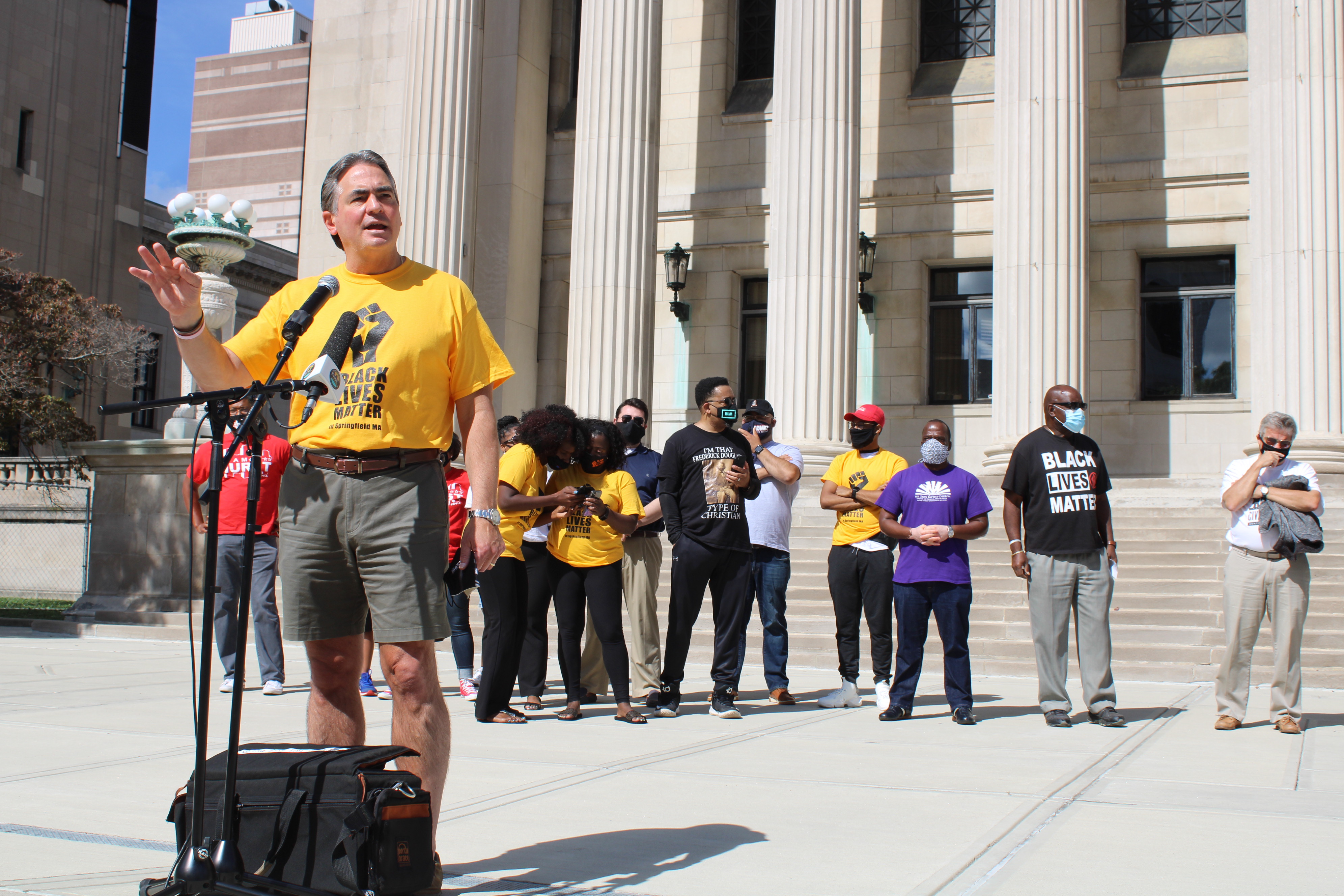 Supporters gathered on Court Street and in Court Square to show solidarity for unity, peace, love, and harmony, and to join with their elected officials in the fight against social injustice and racial unrest.