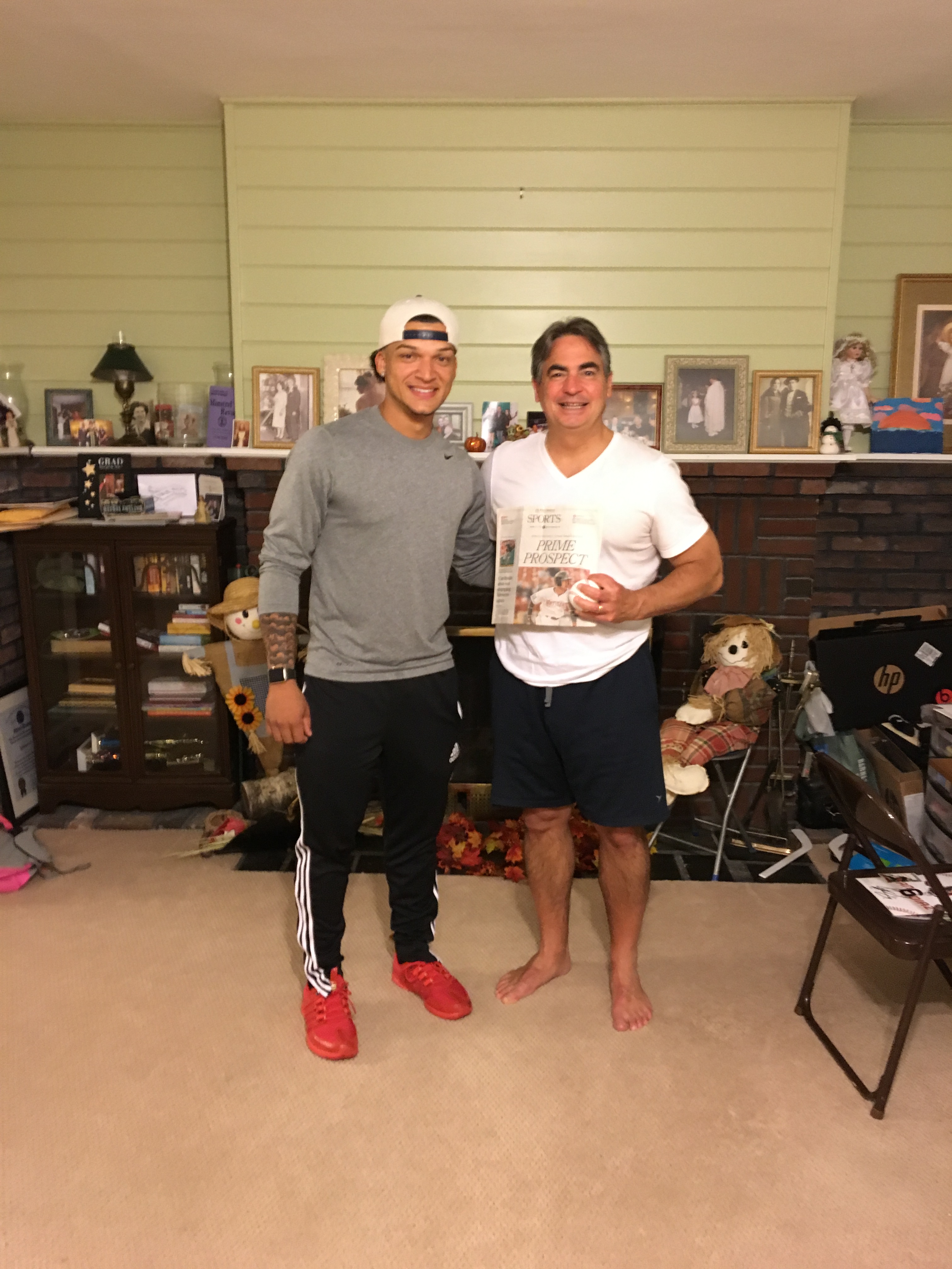 Mayor Sarno had a special visitor to his home yesterday evening- his neighbor, recent Central High School graduate, and Milwaukee Brewers organization shortstop Isan Diaz. Isan visited with the Sarnos and brought over his own autographed baseball cards, and a signed baseball.