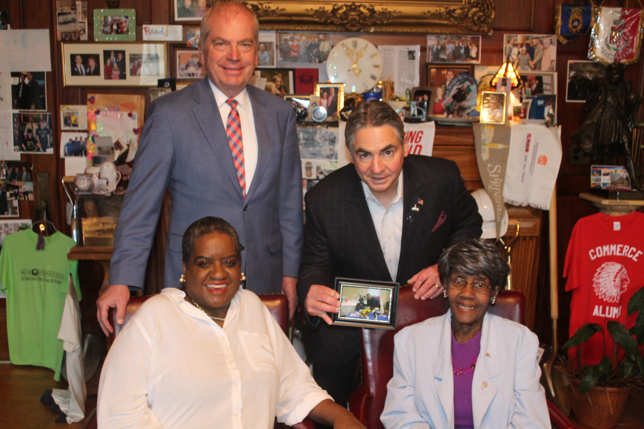 Mayor Domenic J. Sarno met with one of the city's heralded seniors Ms. Pearlie Pitts to discuss changes in the city over the past 10 years. Ms. Pitts engaged the mayor in a productive and lively conversation filled with a combination of laughter and civic exchange.