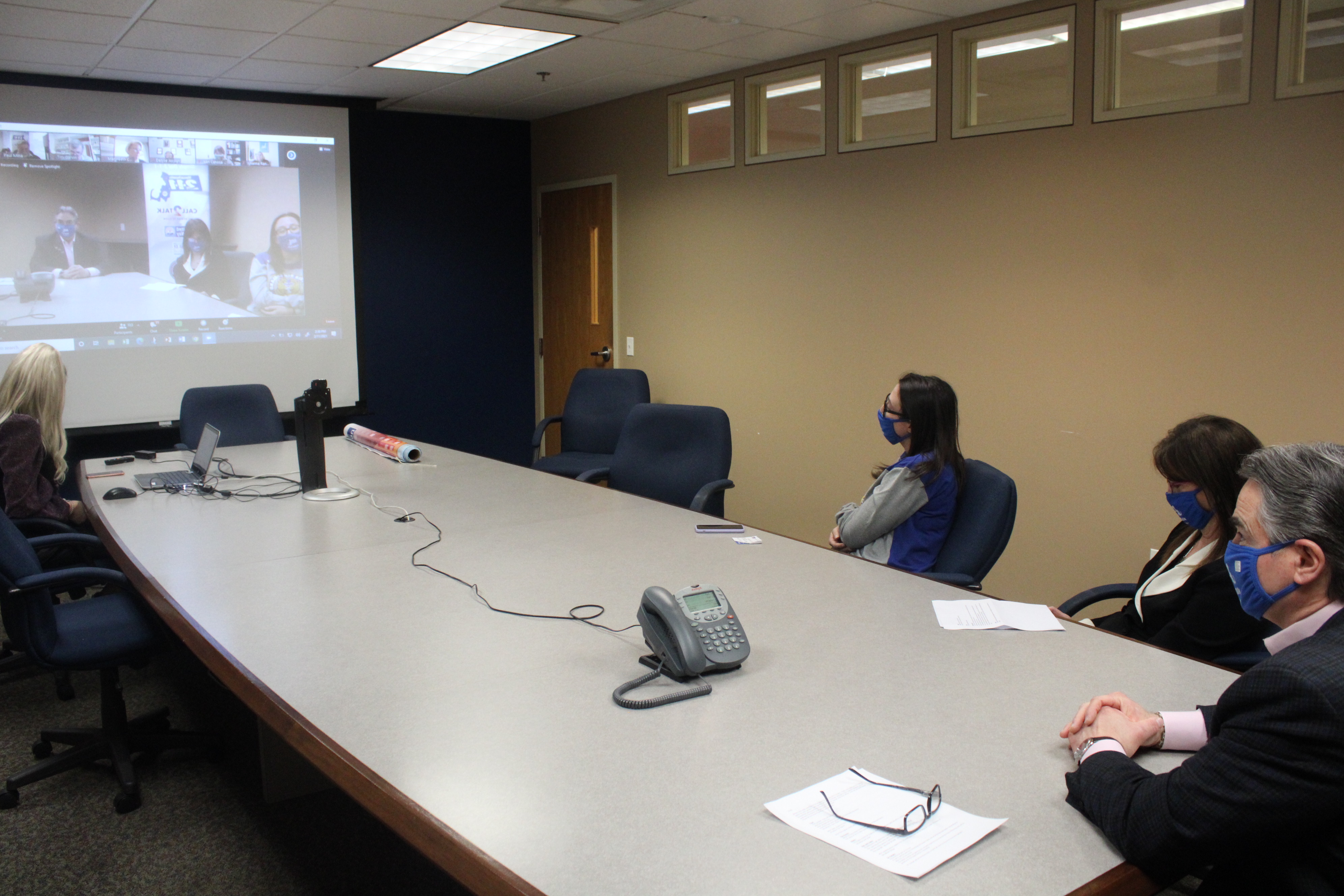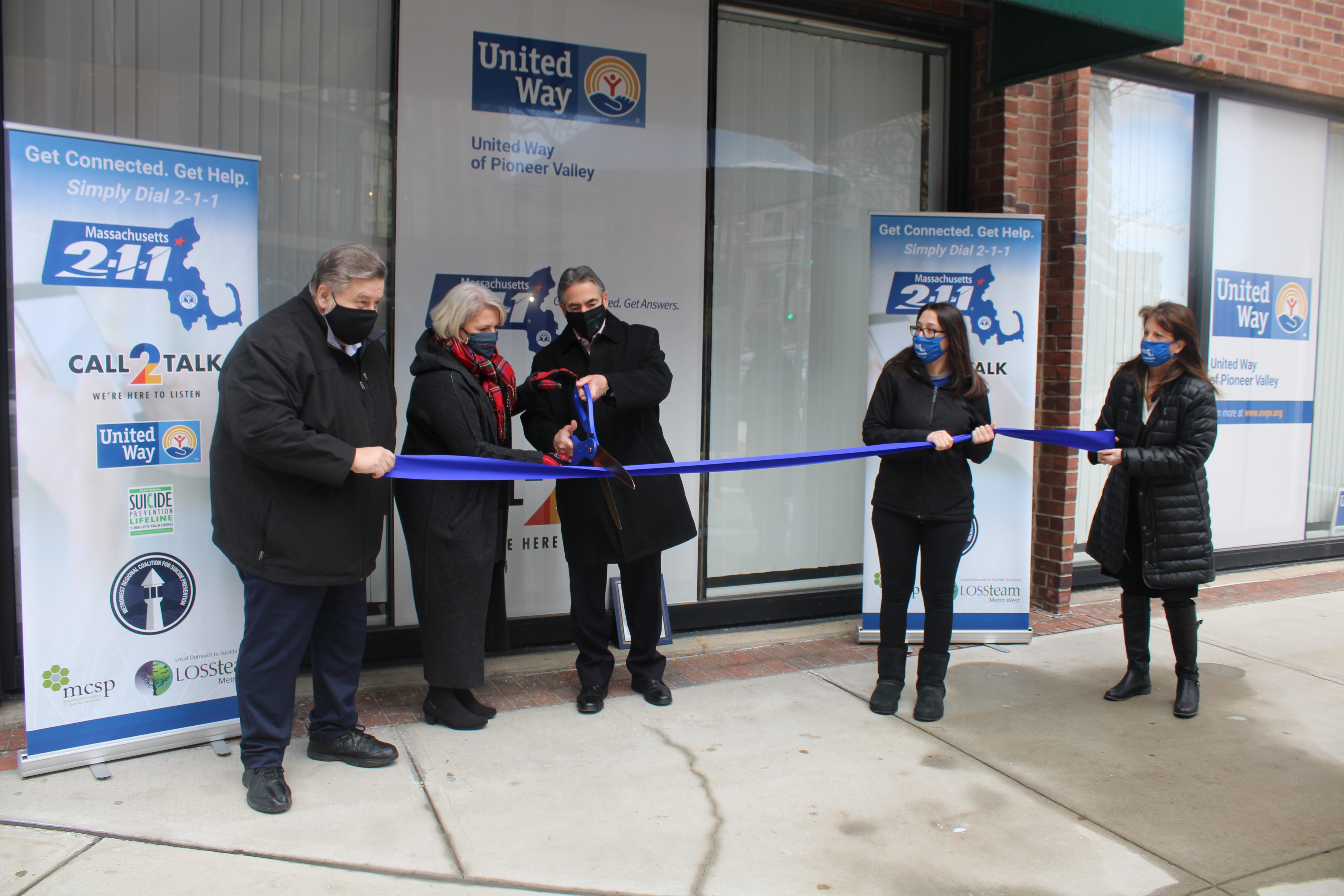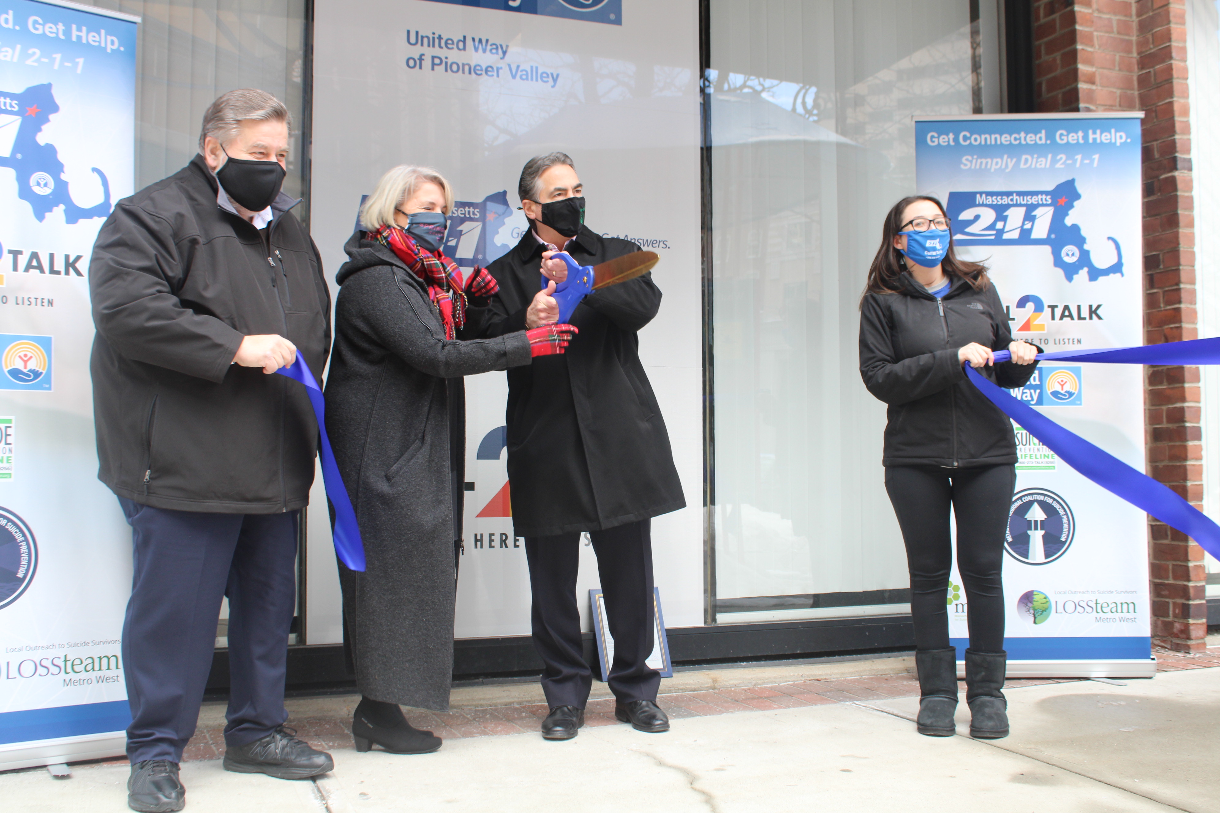 Mayor Domenic J. Sarno joined with United Way of Pioneer Valley President and CEO Paul Mina, Springfield College President Dr. Mary-Beth Cooper, and Mass2-1-1 Vice President Eileen Davis for a ribbon cutting ceremony to celebrate Massachusetts 2-1-1 day and mark the opening of the Mass2-1-1 satellite Call2Talk office here in Springfield.