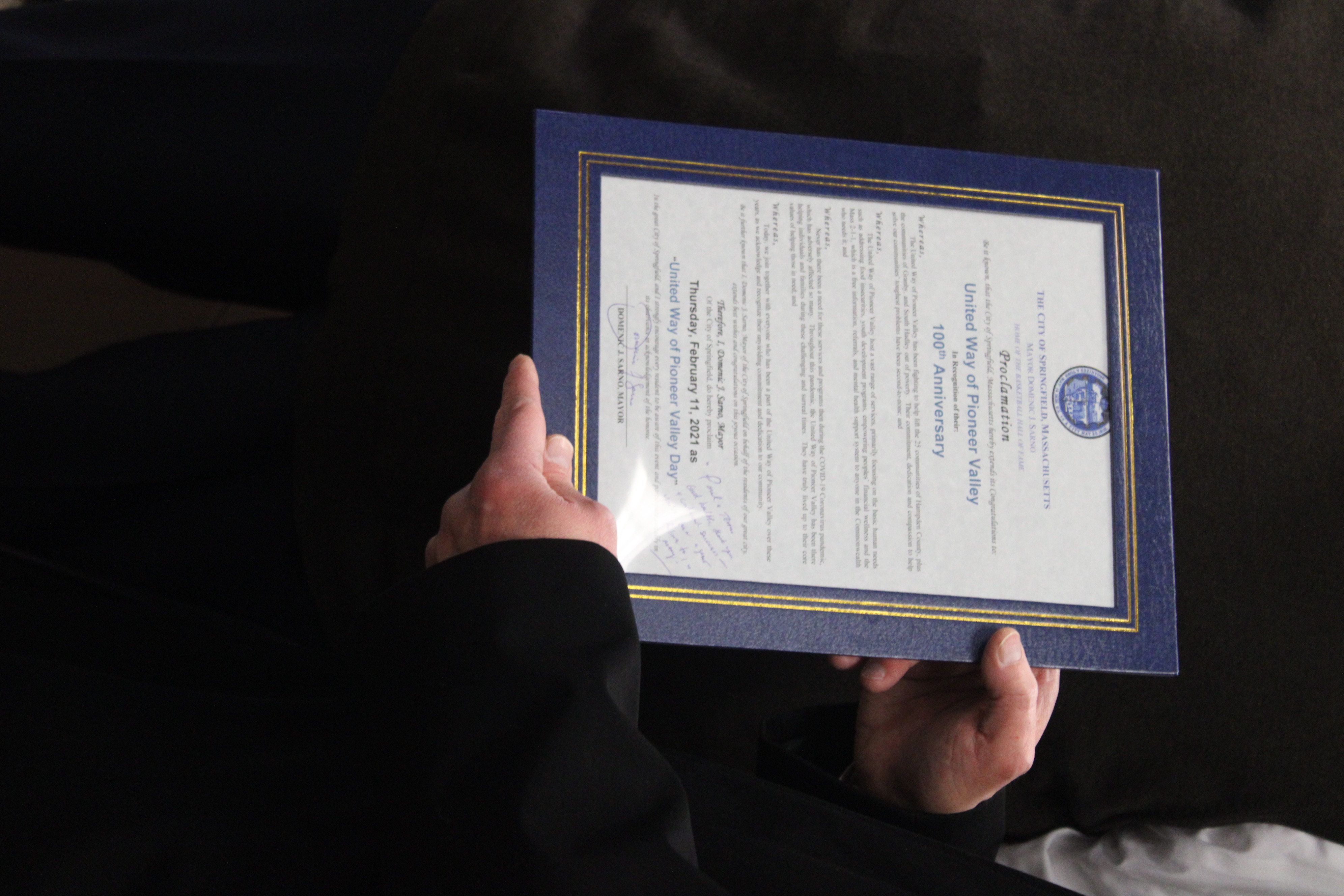 This year also marks the 100th Anniversary of the United Way of Pioneer Valley. Mayor Sarno issued a proclamation declaring Thursday, February 11, 2021 as “United Way of Pioneer Valley Day” in the City of Springfield to commemorate this milestone.