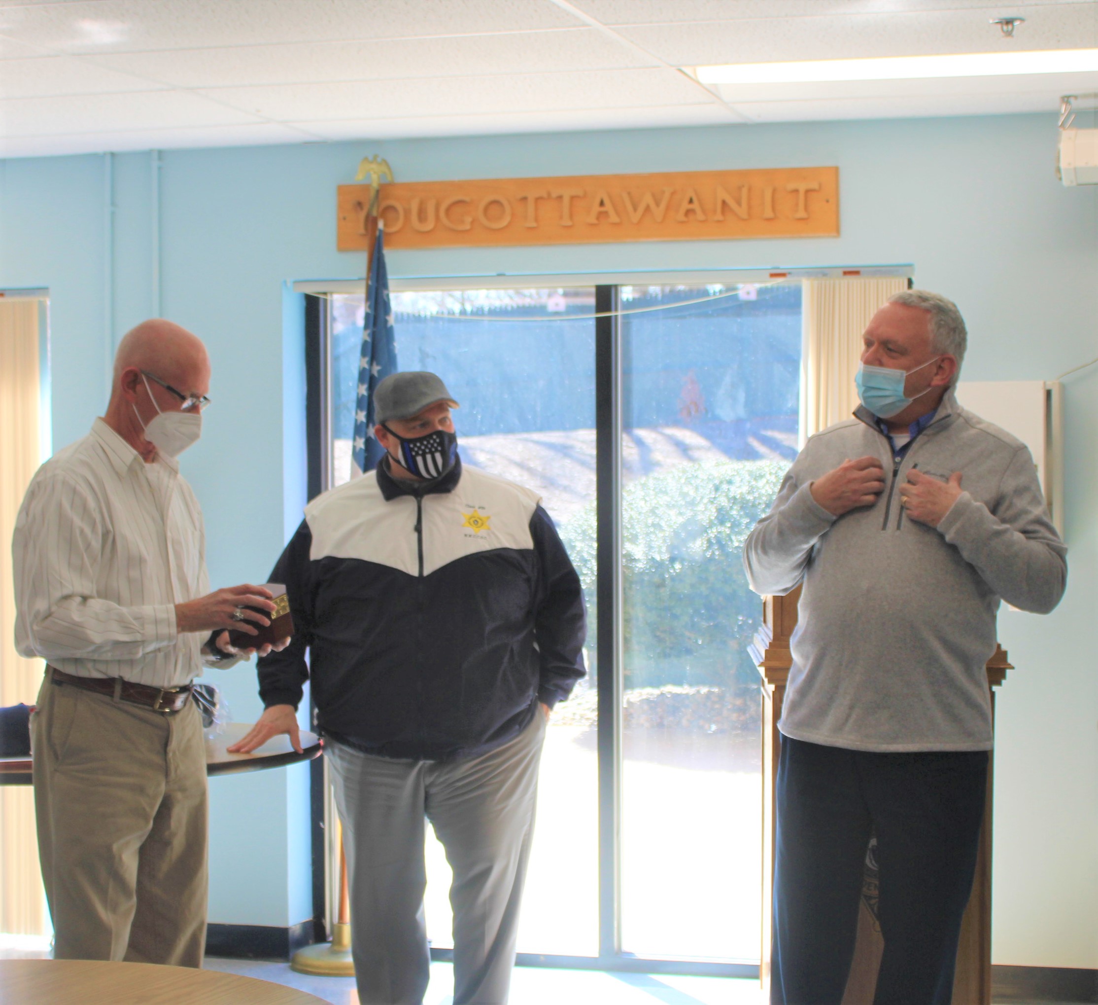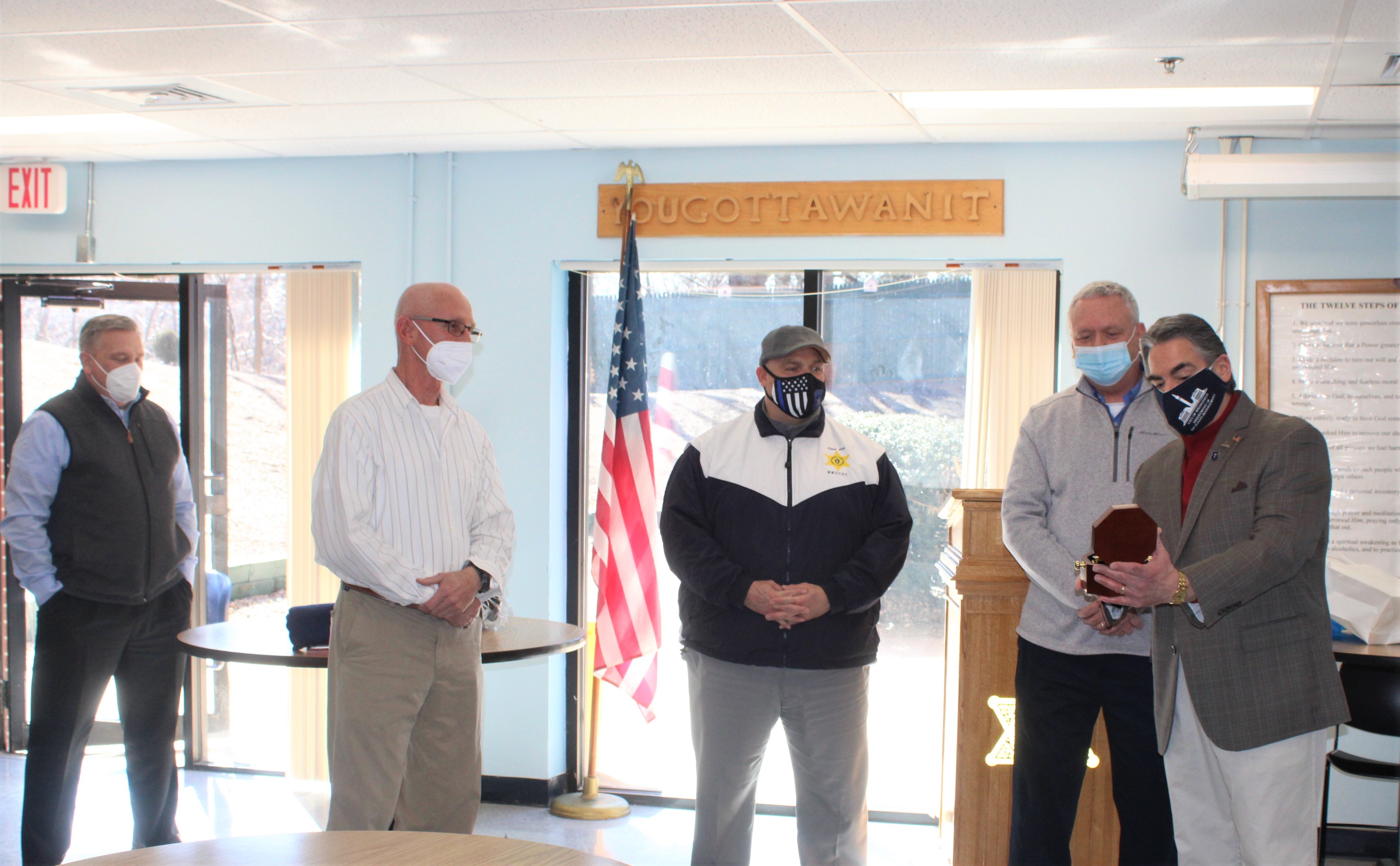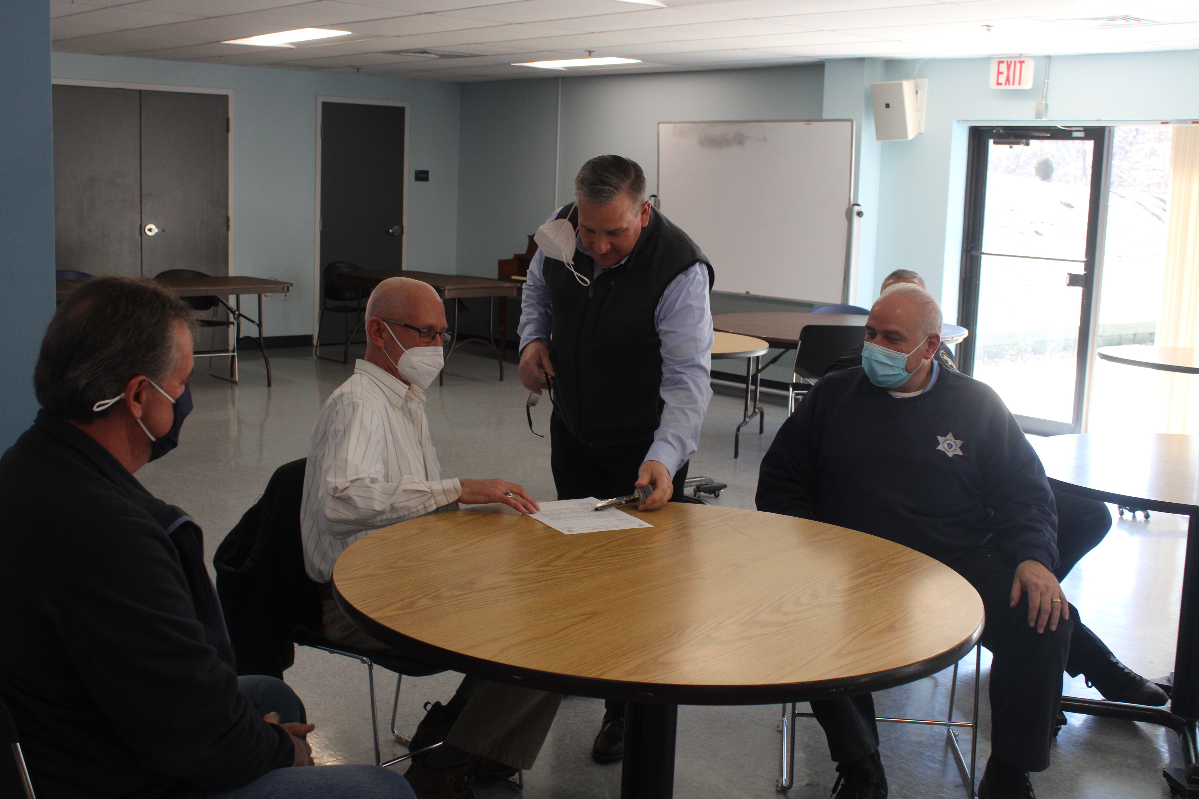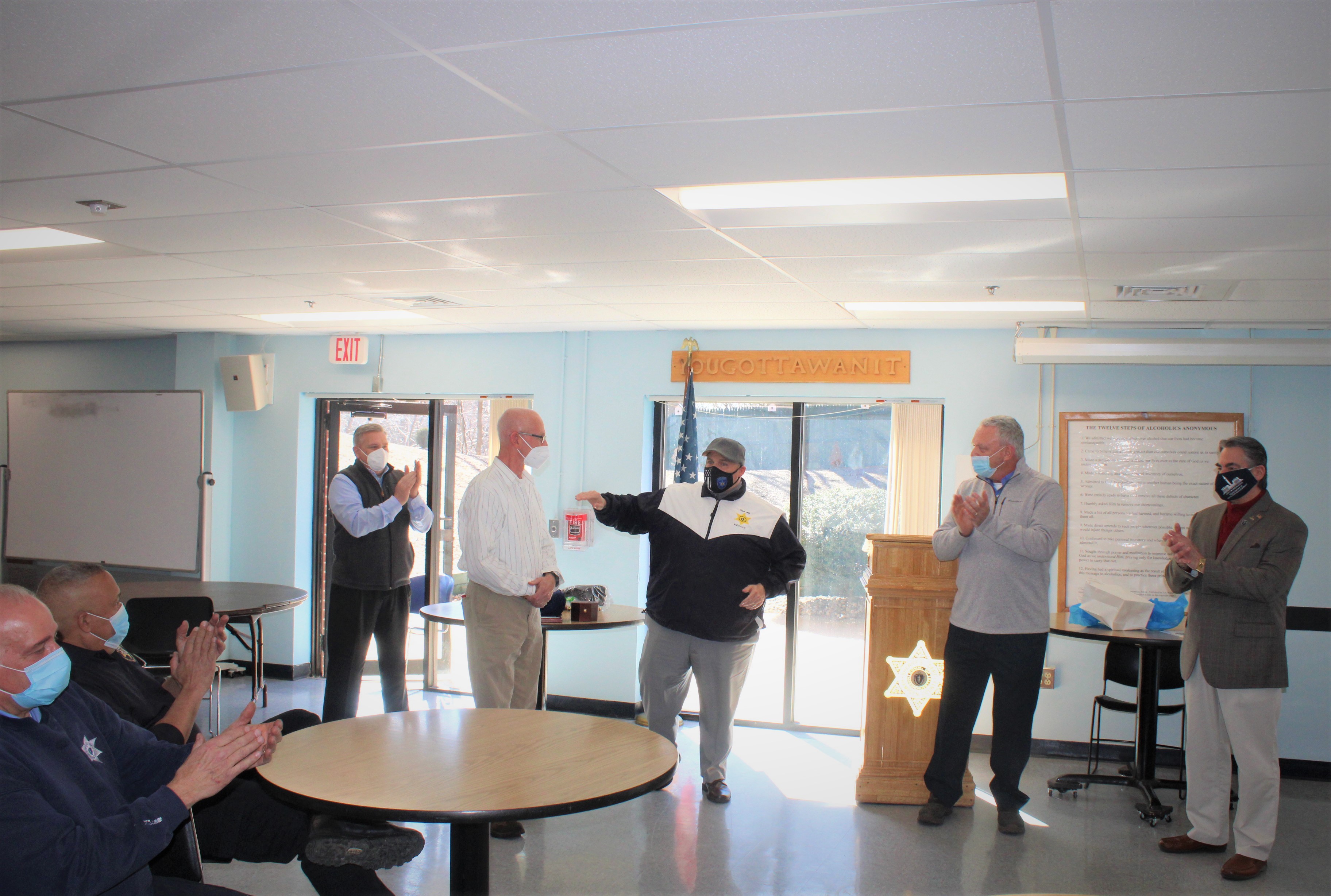 Mayor Domenic J. Sarno and Director of Parks, Buildings, and Recreation Management Patrick Sullivan joined with Hampden County Sheriff Nick Cocchi to wish Dennis Sullivan a very happy and well deserved retirement.