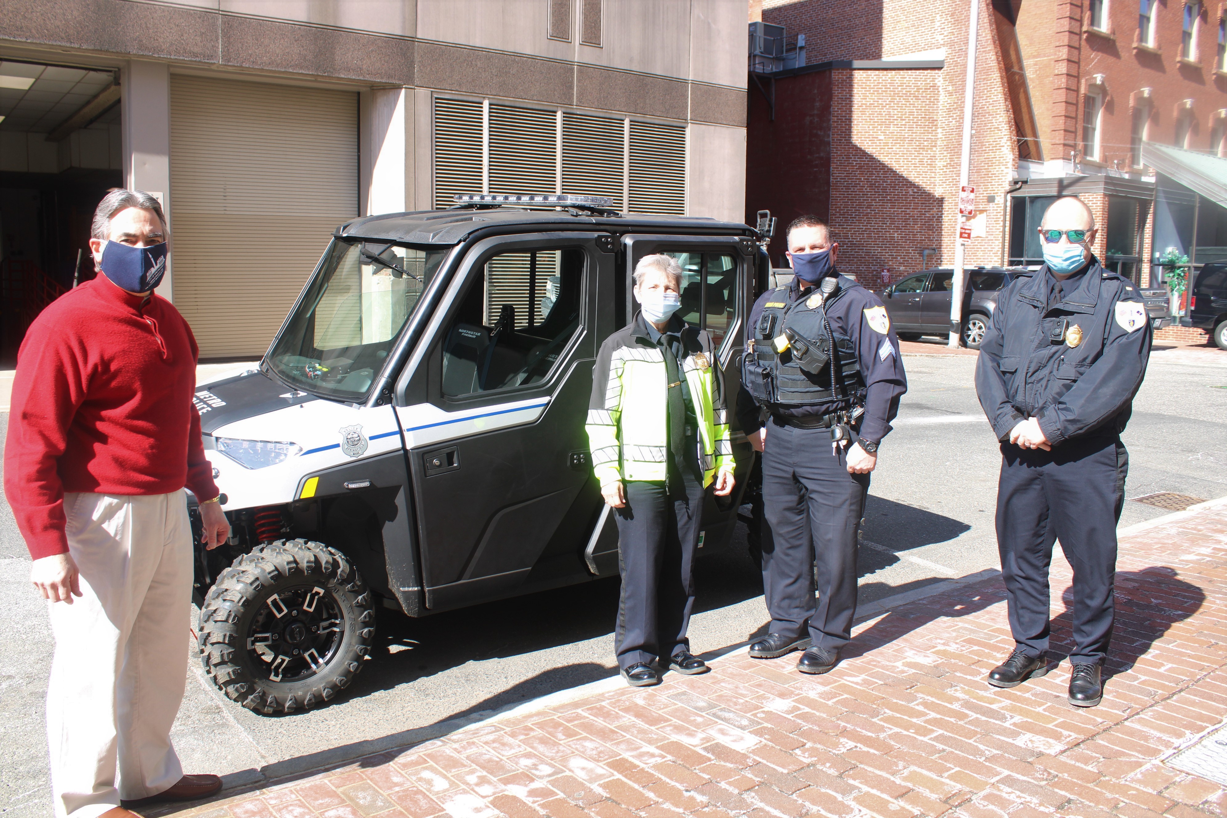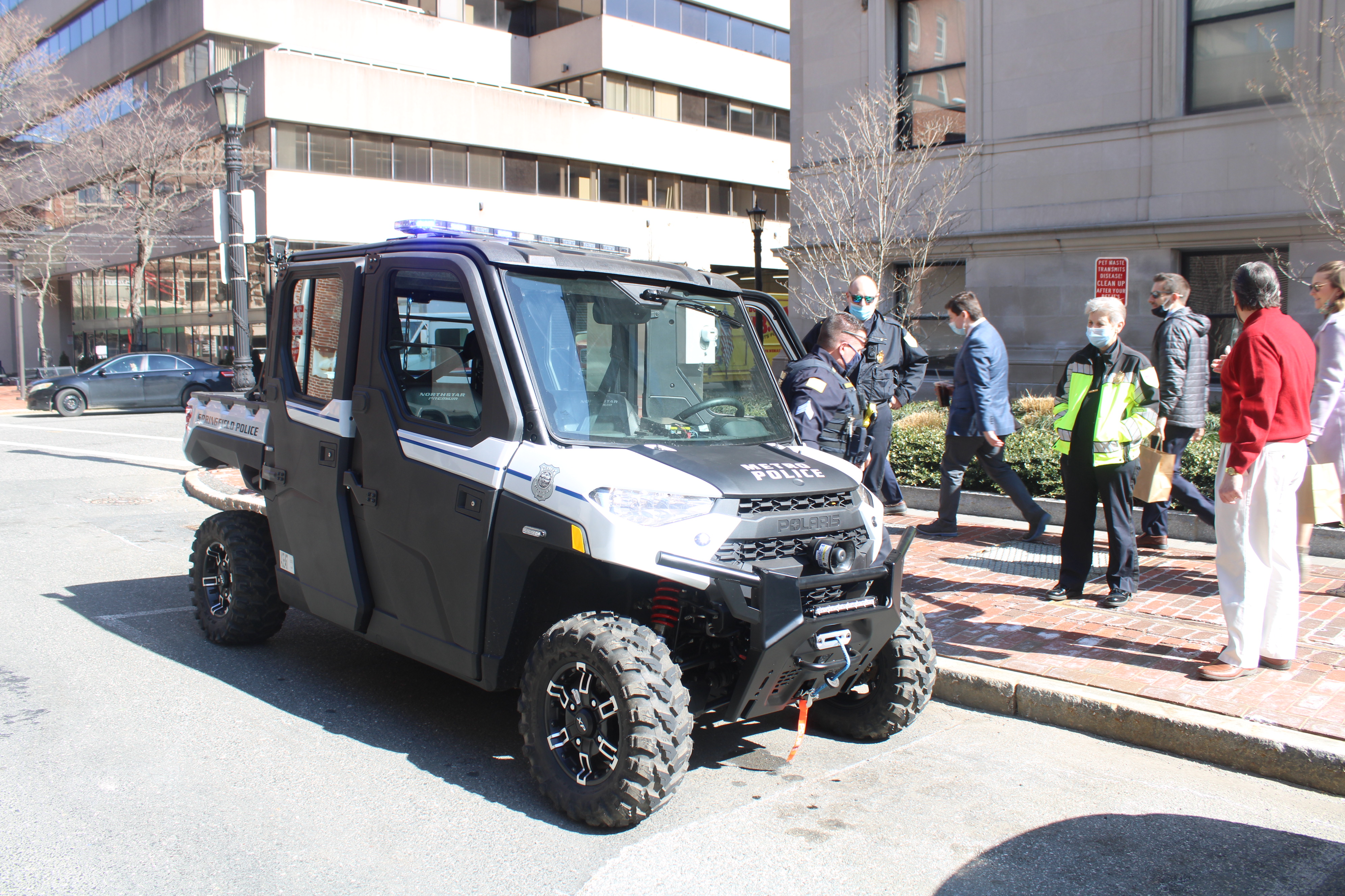 Police Commissioner Cheryl Clapprood, Lt. Jeff Martucci, and Sgt. Brian Elliott stopped by City Hall to show Mayor Domenic J. Sarno the Springfield Police Department Metro Unit’s new vehicle to help address the illegal dirt bike on our public streets.