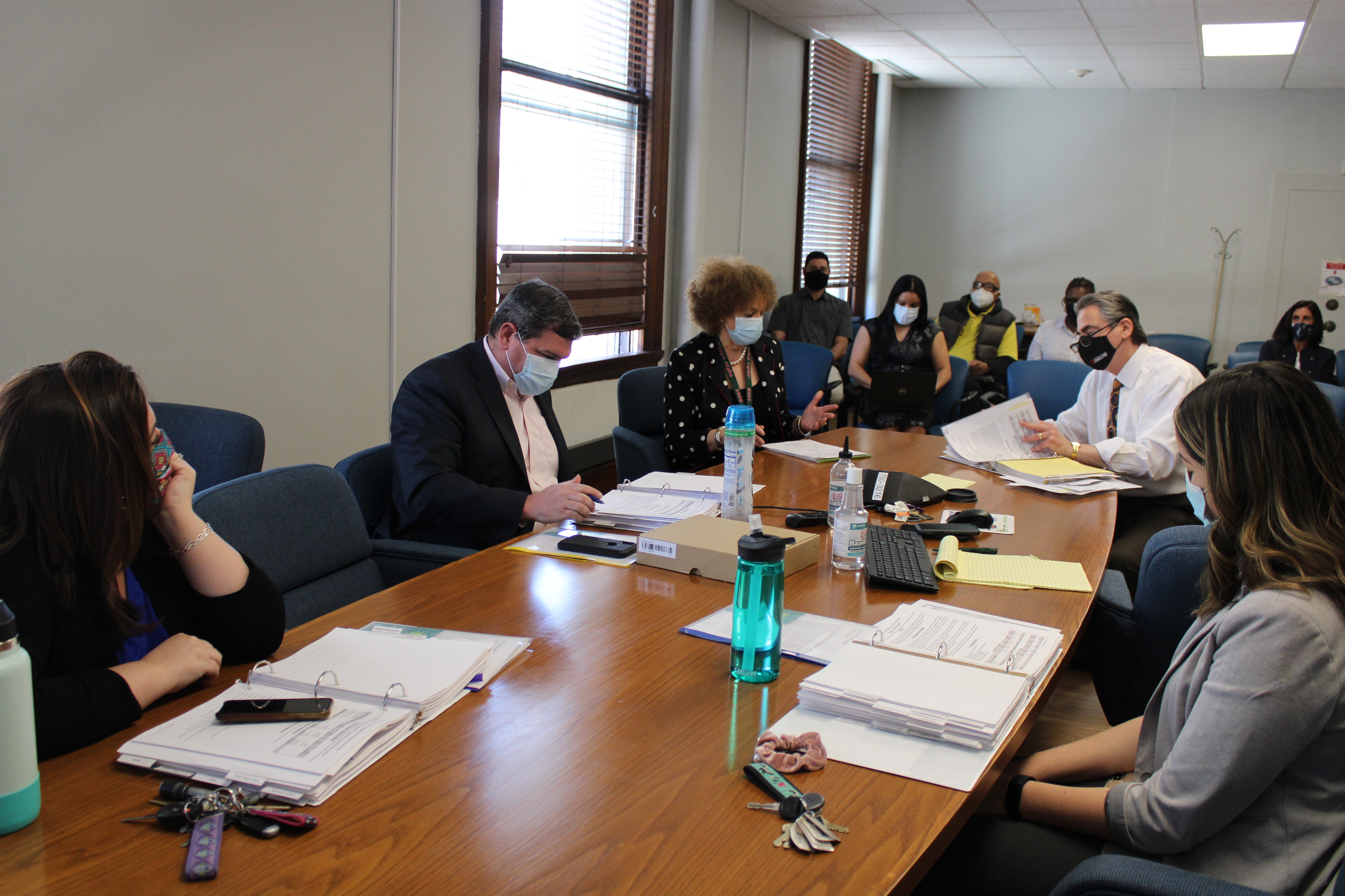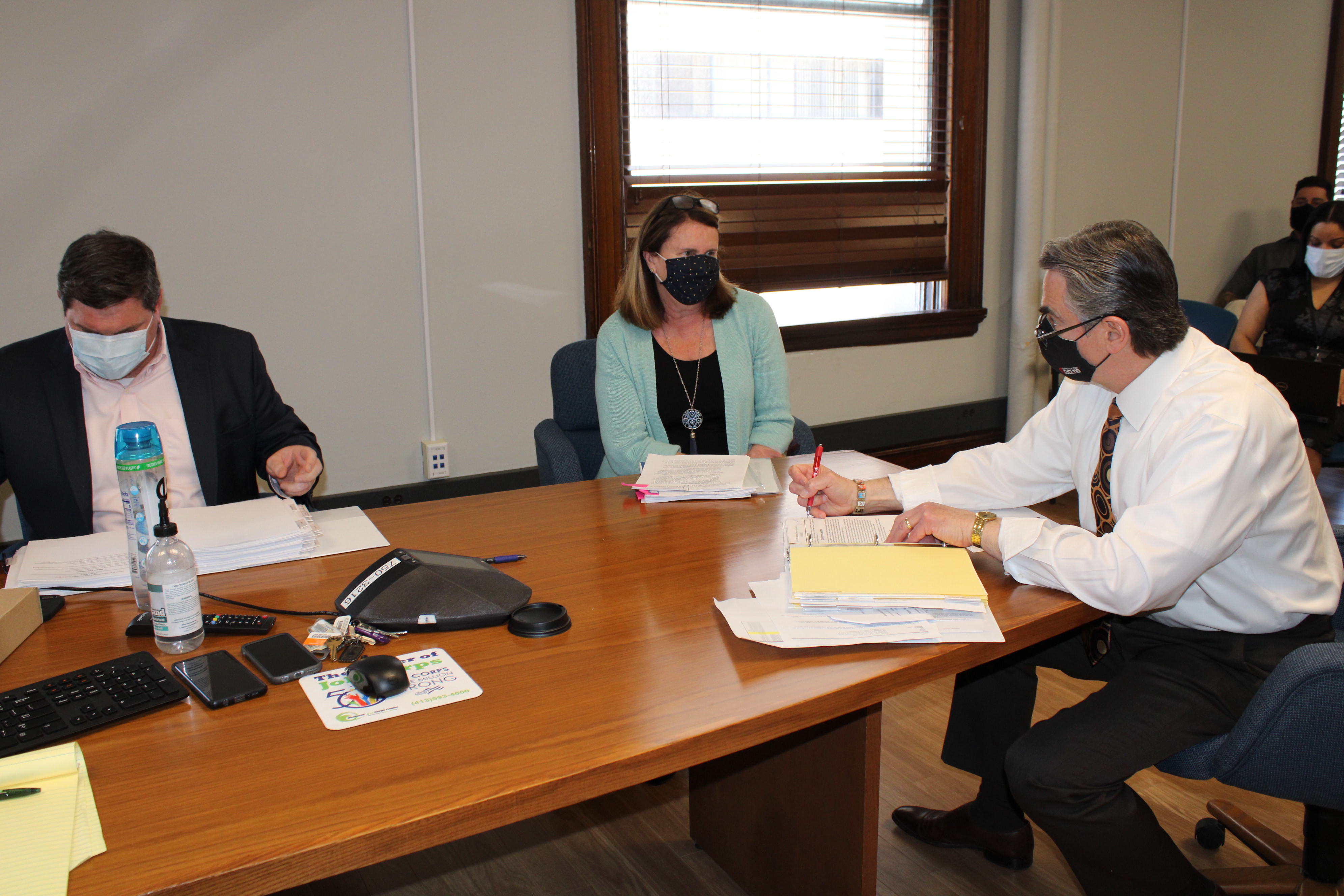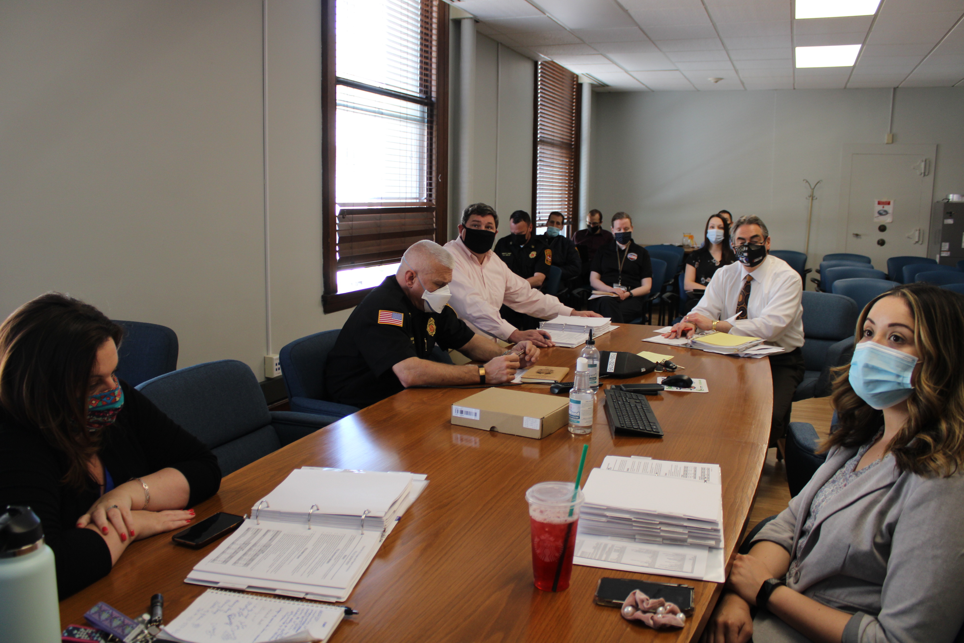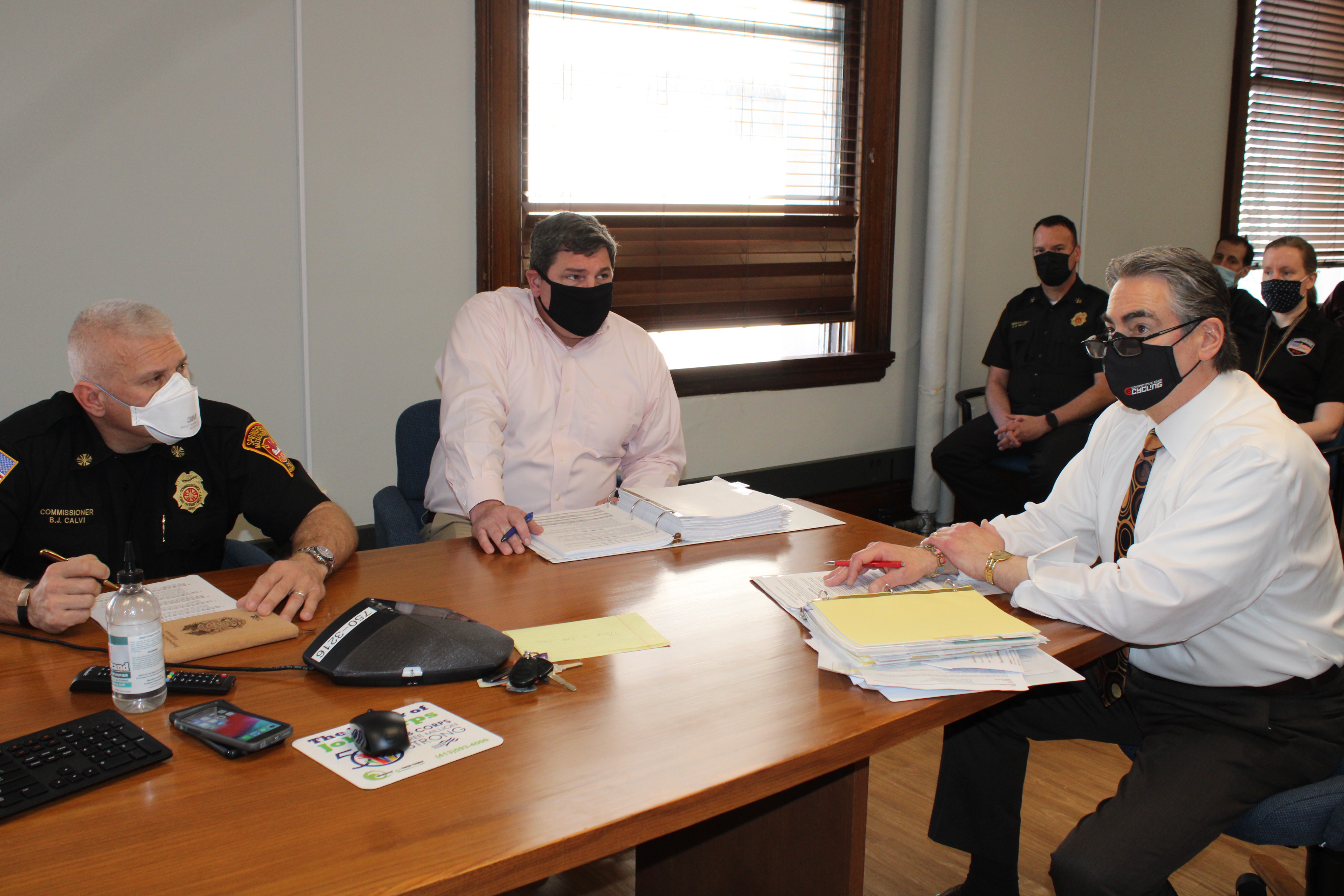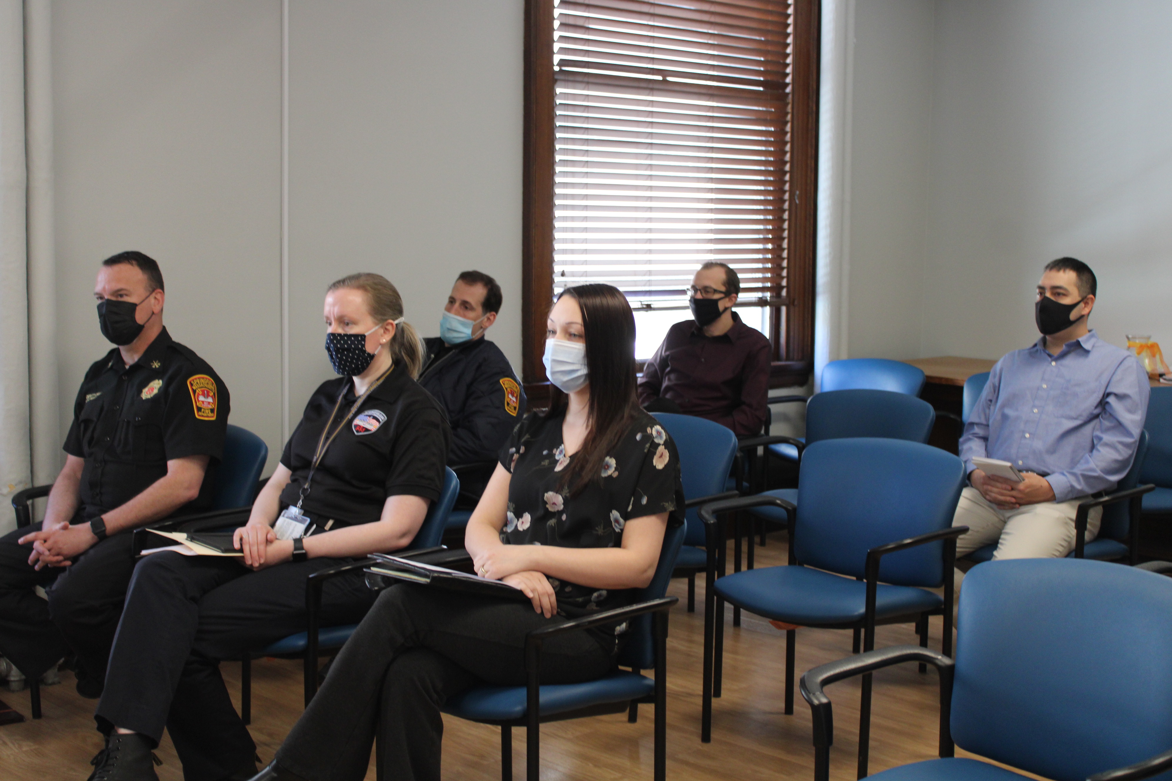 Those attending the meeting were: Mayor Sarno, City Councilor Tim Allen, CAFO TJ Plante, Deputy CAFO Lindsay Hackett, Grants/Budget Director Melanie Acobe, Communications Director William Baker, HHS Commissioner Helen Caulton-Harris, TJO Executive Director Pam Peebles, TJO Supervisor Hannah Orenstein, Elder Affairs Director Sandy Federico, Library Director Molly Fogarty, Library Assistant Director Jean Canosa Albano, Veterans Services Director Tom Belton, Veterans Services Deputy Director Joe DeCaro, Veterans Services Admin. Assistant Danielle Witherspoon, Police Commissioner Cheryl Clapprood, SPD Captain Jeff Martucci, SPD Director of Business and Technology Jennifer Leydon, SPD Budget Director Lisa Willis, Fire Commissioner BJ Calvi, SFD Deputy Chief David Wells, SFD Deputy Chief Michael Hess, SFD Deputy Director of Emergency Communications Rebecca Ocasio, SFD Director of Finance Erica Floyd, and Budget Analysts Hamediah Mohammed, Sean Pham, and Chris Fraser.