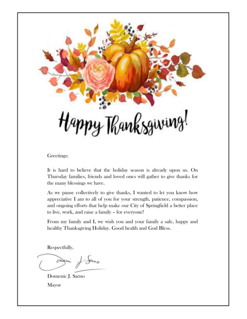Happy Thanksgiving from Mayor Sarno