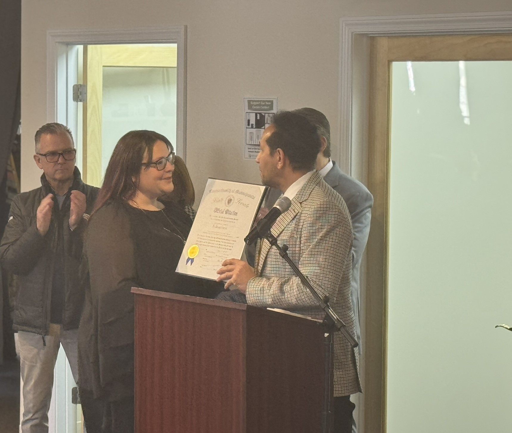 Mayor Sarno was honored to join Dress for Success Western Massachusetts Executive Director Jess Roncarati-Howe, DFSWM Board President Tracy Friedenberg, O’Dell Womens Center Director Margaret Tantillo, and founder of the Western Massachusetts Dress for Success organization Doreen Fadus to celebrate this exciting milestone for DFSWM as they continue to enhance their services to empower women in our community. State Representatives Carlos Gonzalez, Brian Ashe, and Orlando Ramos, City Councilors Zaida Govan, Maria Perez, and Kateri Walsh, and Lamari Jackson, aide for State Senator Adam Gomez all joined to celebrate.