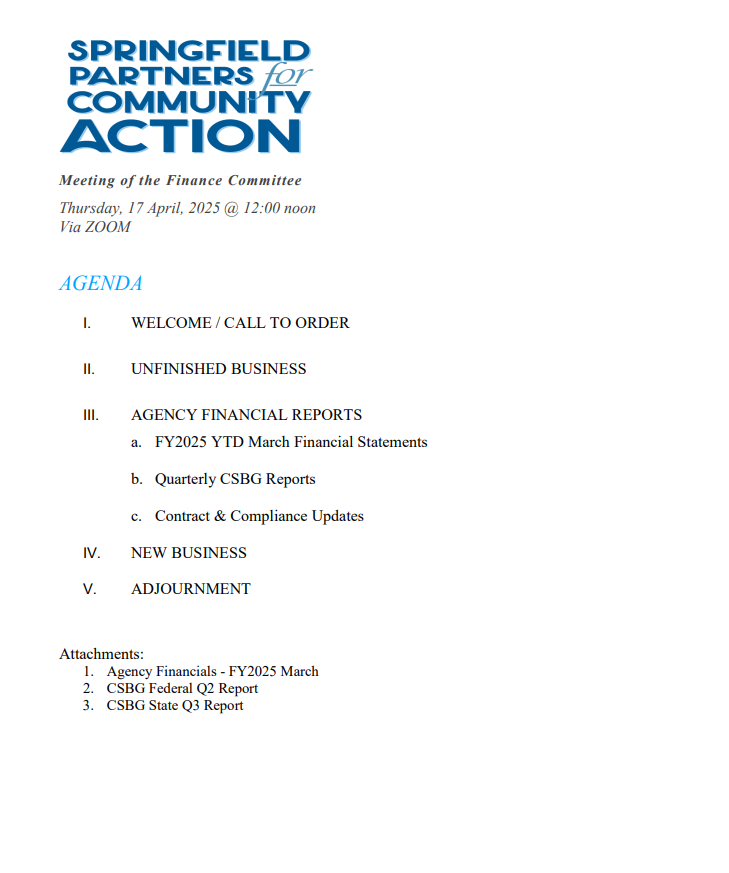 Join Springfield Partners for Community Action for their Upcoming Committee Meetings