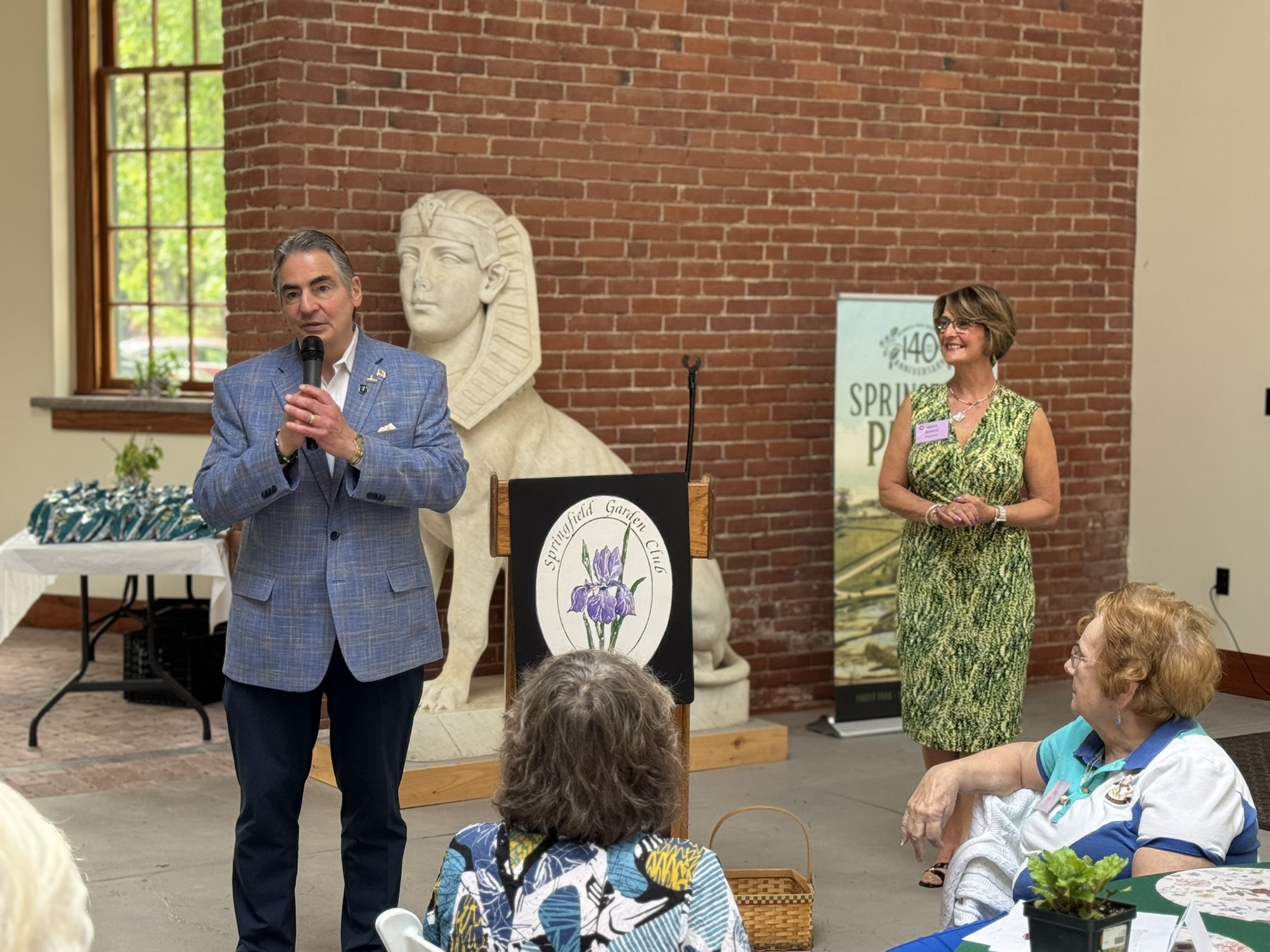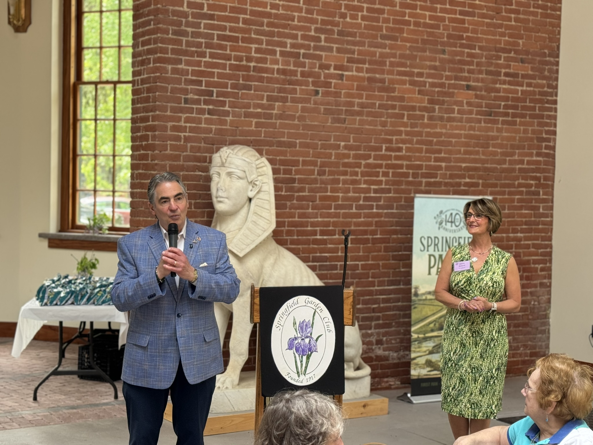 Mayor Domenic J. Sarno and Parks, Buildings, & Recreation Management (PBRM) Director Thomas Ashe joined with the Springfield Garden Club (SGC) including President Janine Boland, for their Annual Meeting and special luncheon at the Monkey House in Forest Park on Friday.