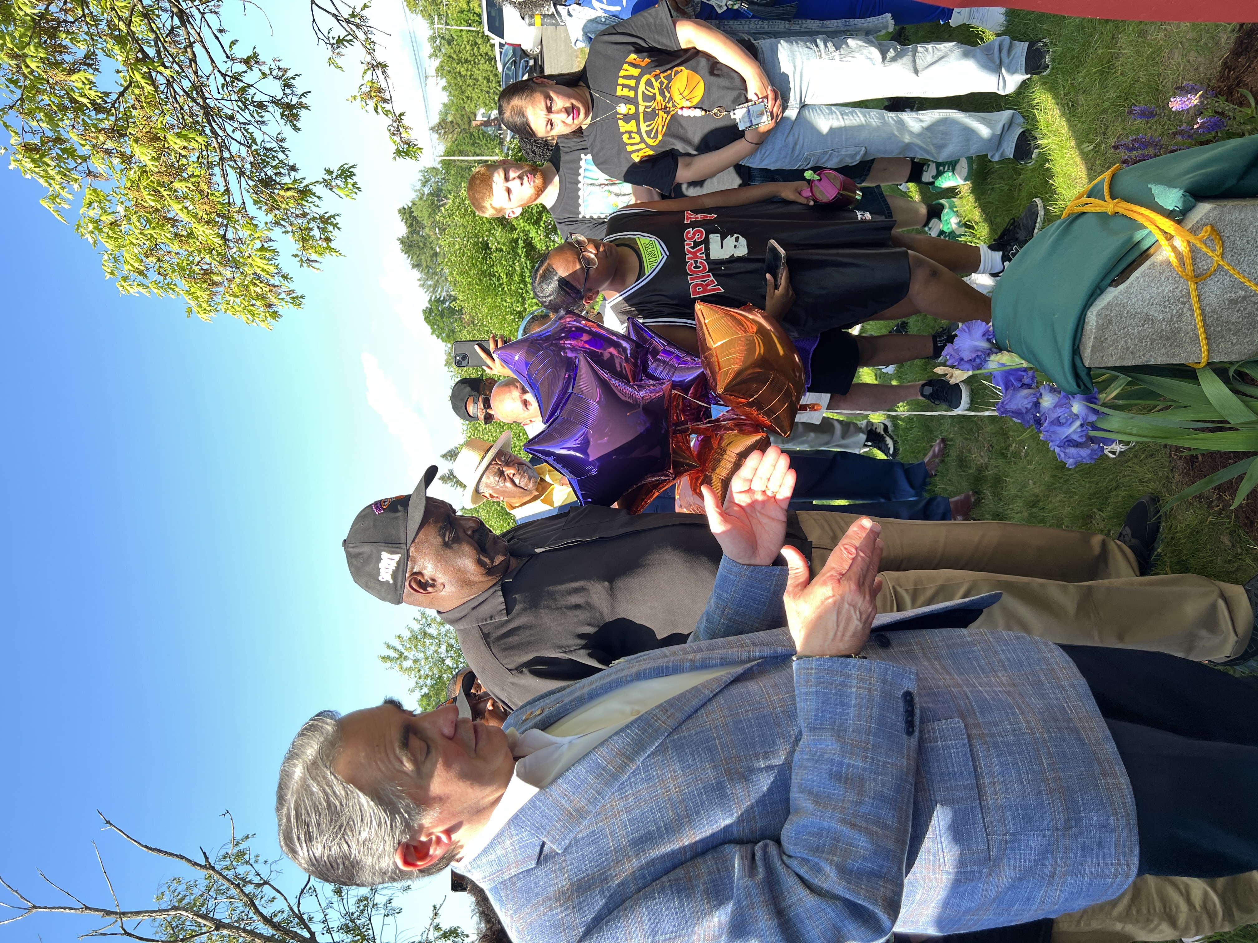 Mayor Sarno, PBRM Director Ashe, City Councilor Click-Bruce, State Representative Bud Williams, City Councilor Tracye Whitfield, Police Superintendent Larry Akers, member of the Board of Police Commissioners Cee Jackson, and LaMar Cook of Governor Healey’s Western Mass office all joined with Coach Rick Marshall, family, and supporters for the special unveiling ceremony.