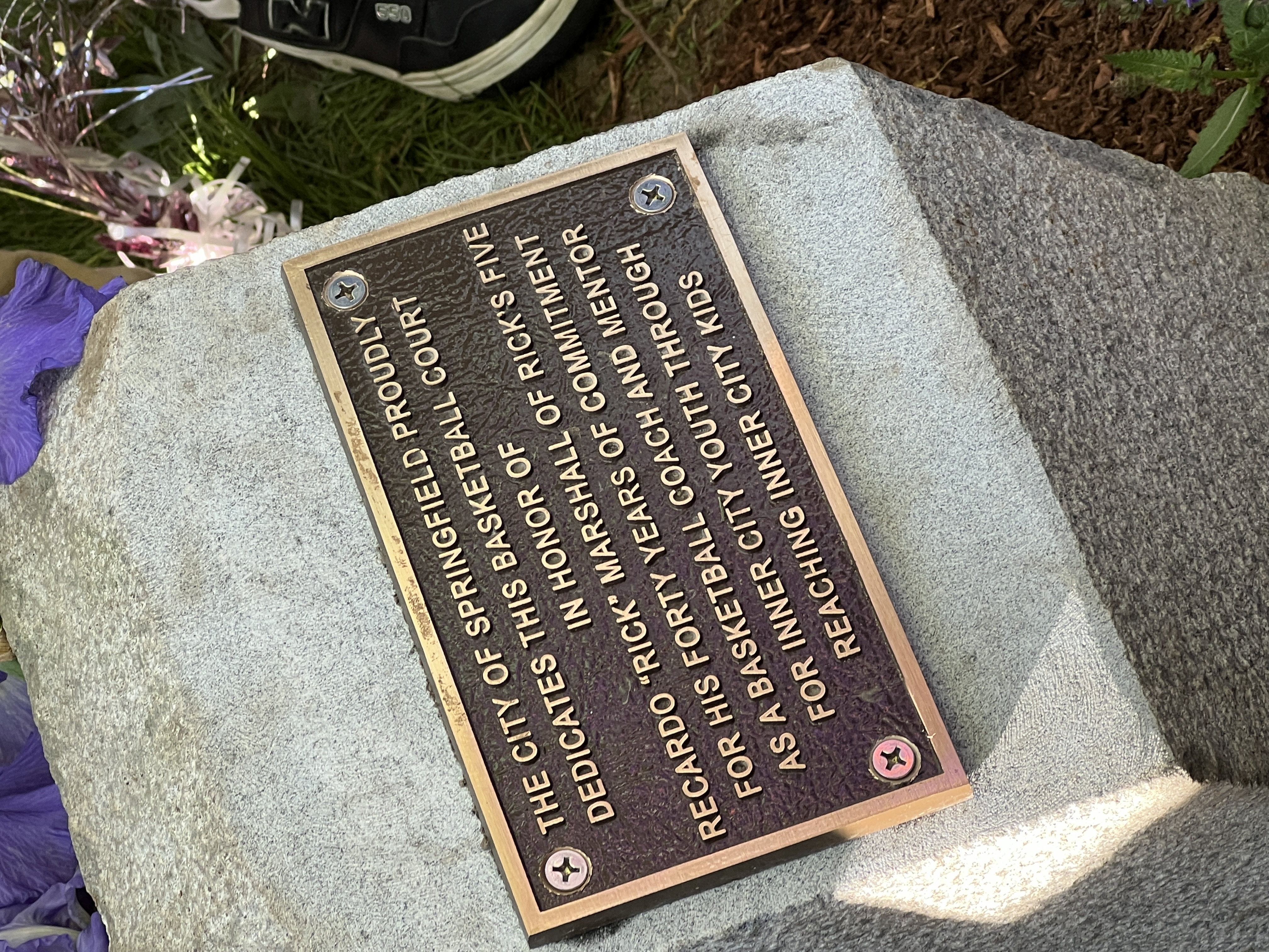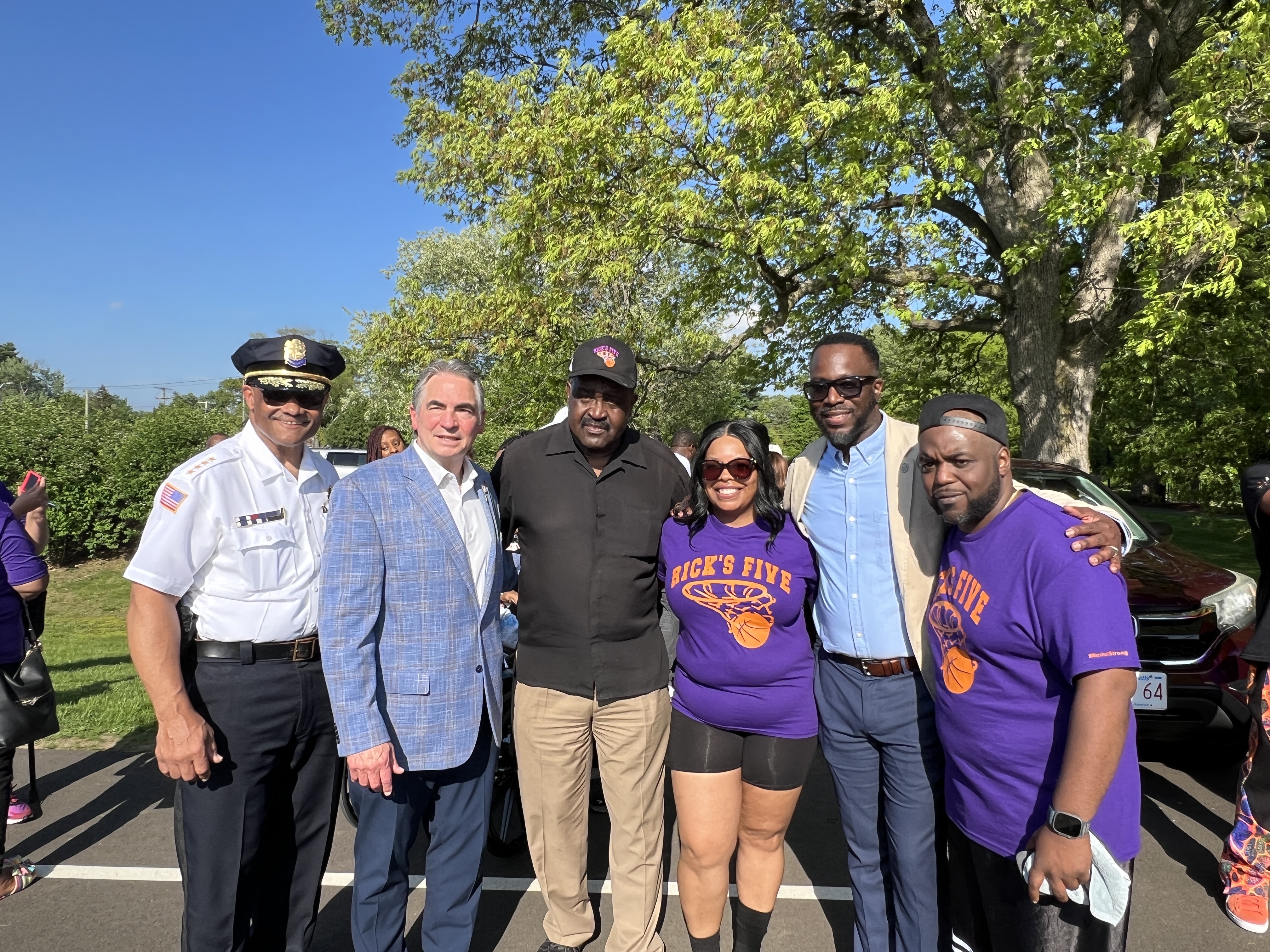 Mayor Domenic J. Sarno, Parks, Buildings, and Recreation Management (PBRM) Director Tom Ashe, Ward 5 City Councilor Lavar Click-Bruce, and city and state officials joined in honoring Recardo “Rick” Marshall with a special plaque unveiling and Basketball Court dedication ceremony at Blunt Park on Friday afternoon to honor Recardo “Rick” Marshall of Rick’s Five for his forty years of commitment as a youth basketball coach and devoted mentor for inner-city youth.
