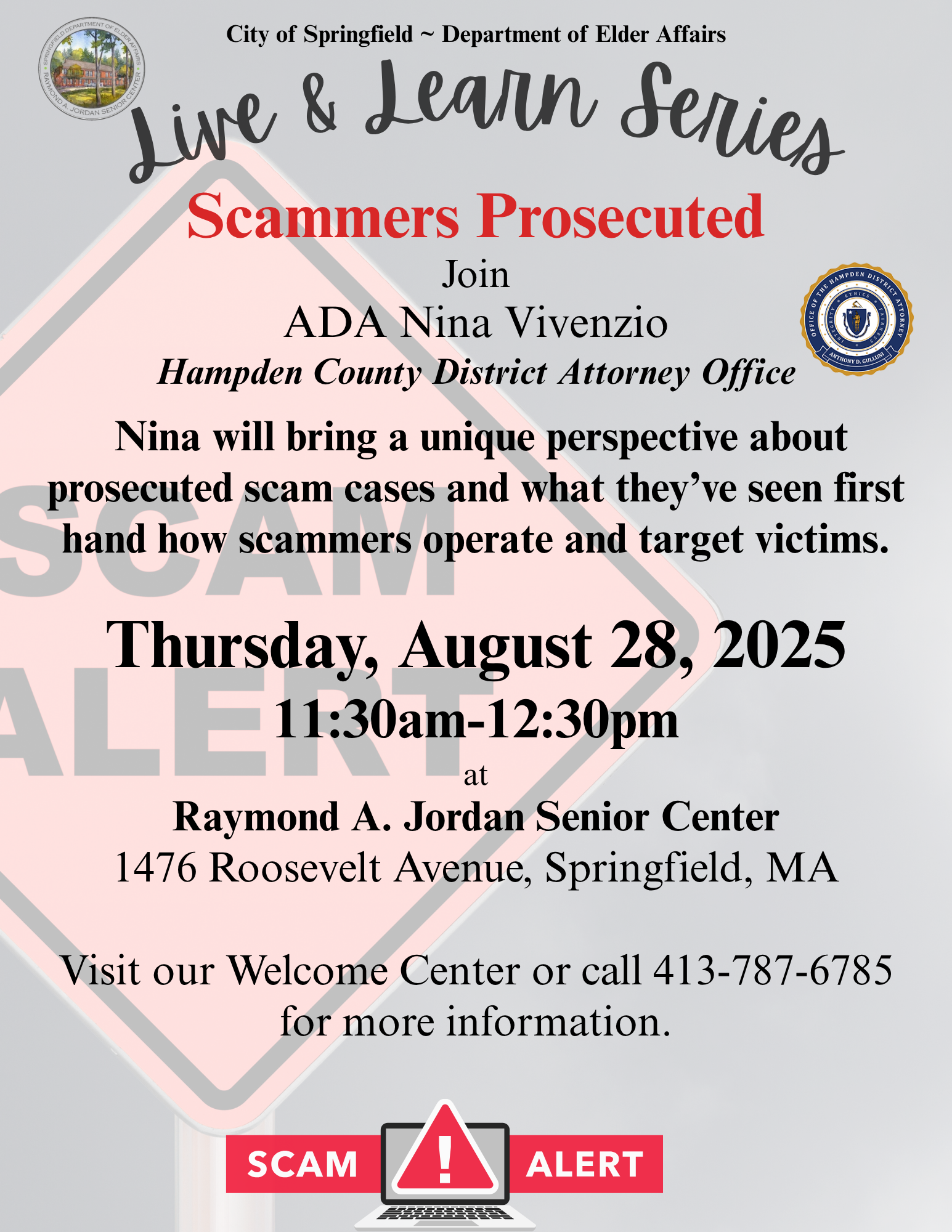 The Department of Elder Affairs will be hosting the Live and Learn Series, which feature different educational presentations about scammers, social security and transportation access. The series, hosted at the Raymond A. Jordan Senior Center, is open to the public with registration.