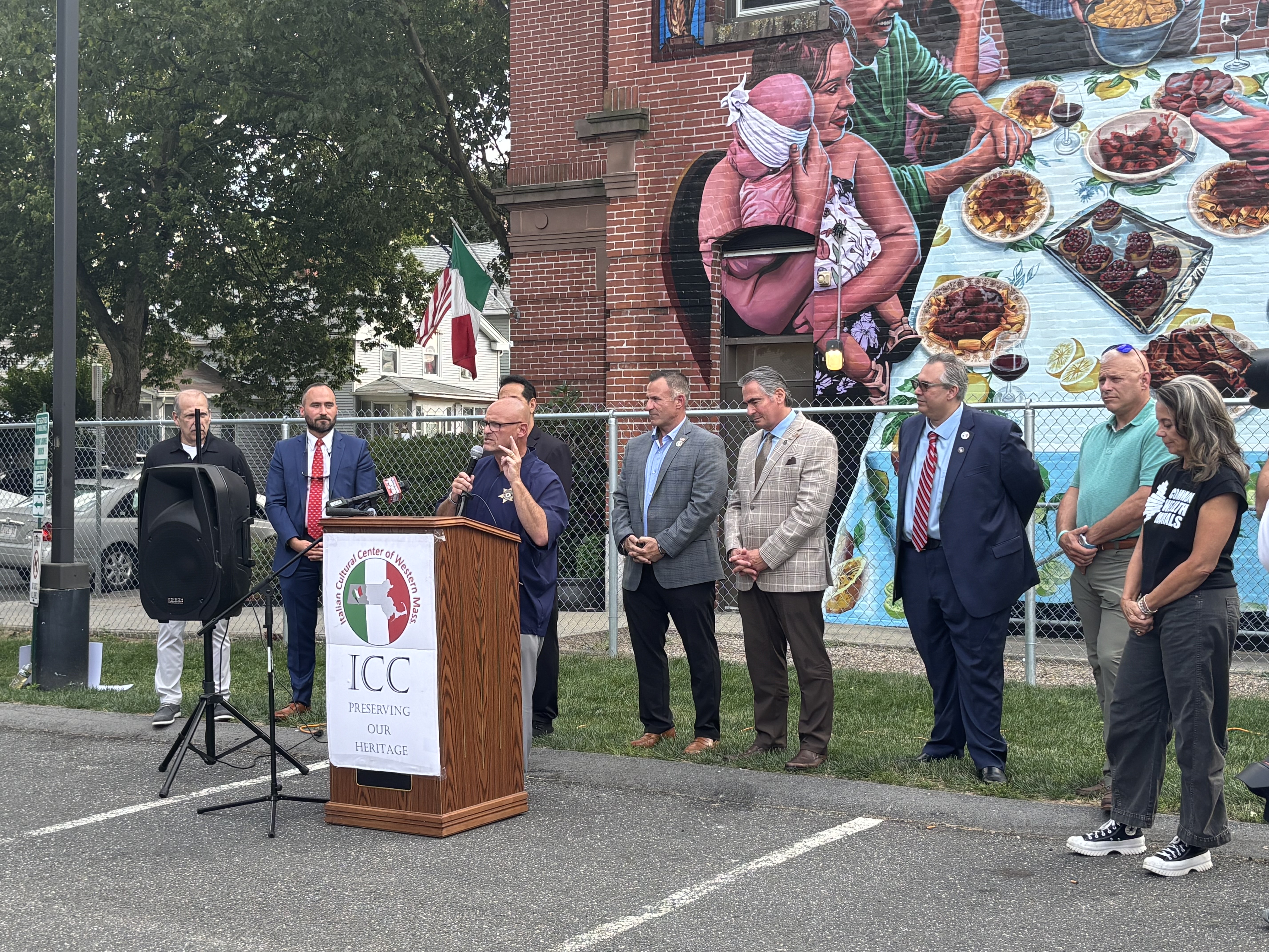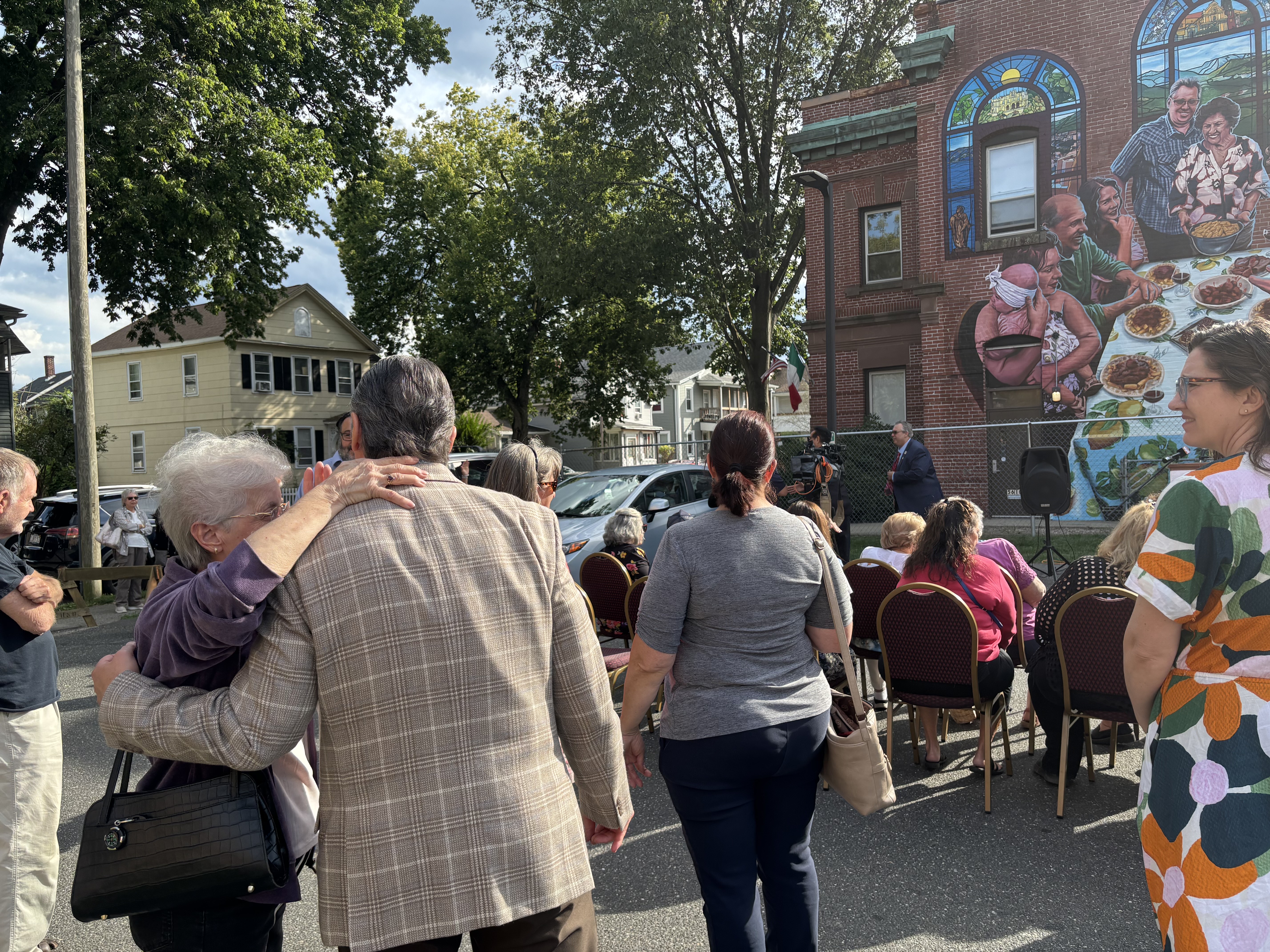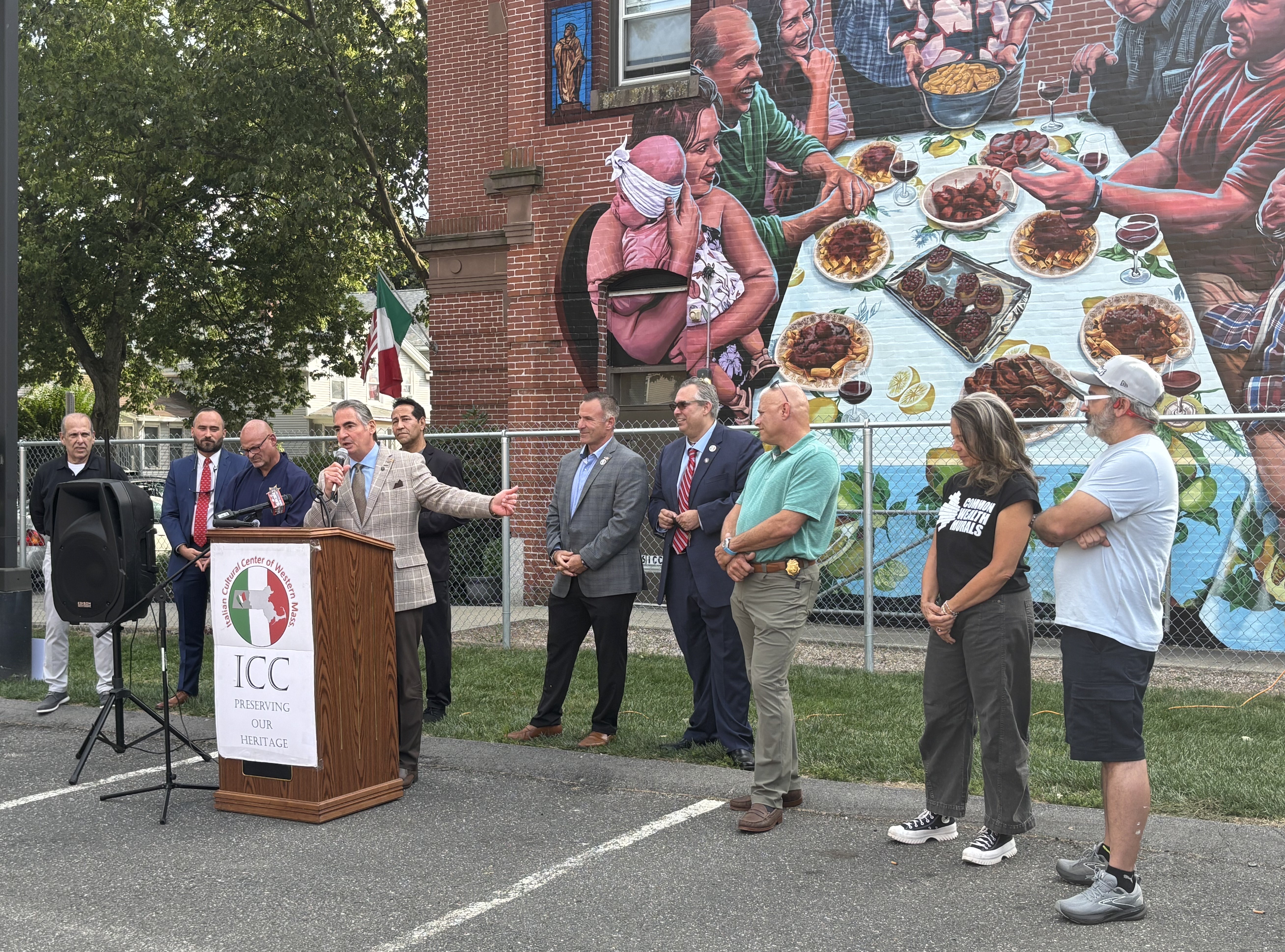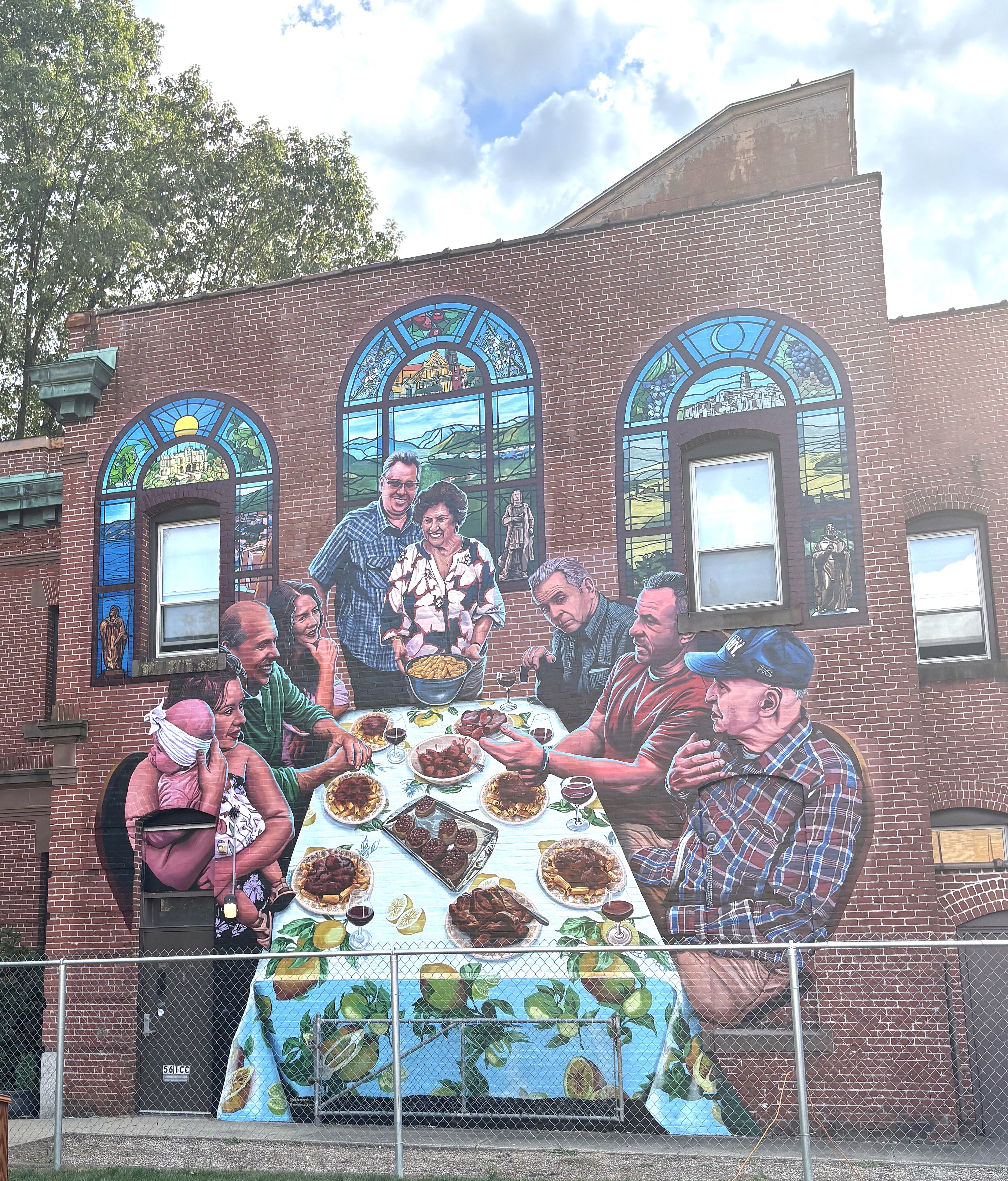 “As a first generation Italian-American and proud member of the ICC, this mural at the ICC building means a lot to the community. It was a proud and exciting moment to see the completed “Sunday Dinner” mural by Eric Okdeh depicting some of our very own ICC members celebrating faith, familia, and food. Sunday dinner and coming together with family is so important and what a beautiful tradition to memorialize here,” continued Mayor Sarno. “As with all their mural projects, Common Wealth Murals gets the community directly involved in enhancing our city’s aesthetics and pedestrian experience, which makes our city look good and people feel good, leading to spin off effects of people spending money by patronizing our business and cultural amenities.”