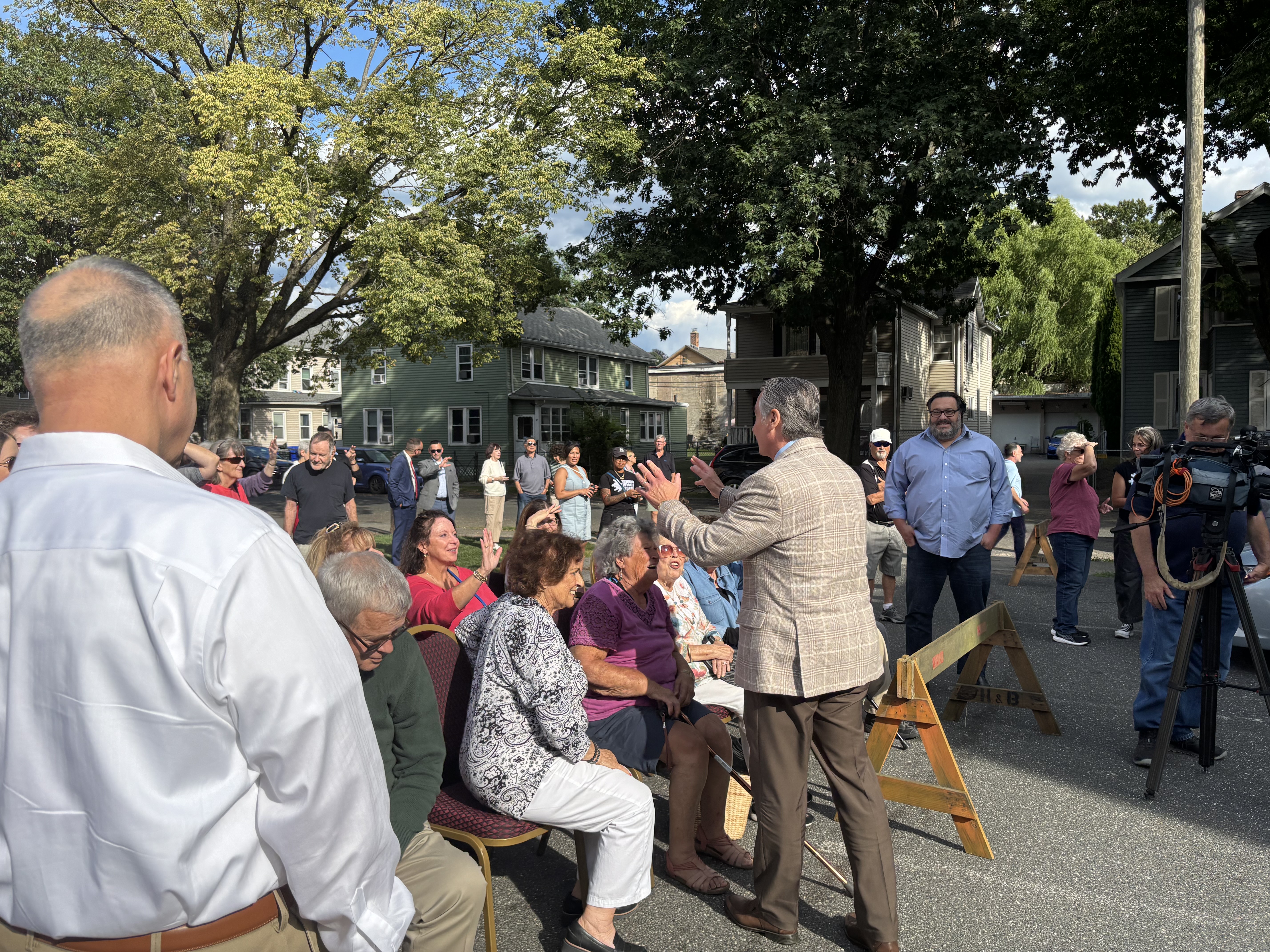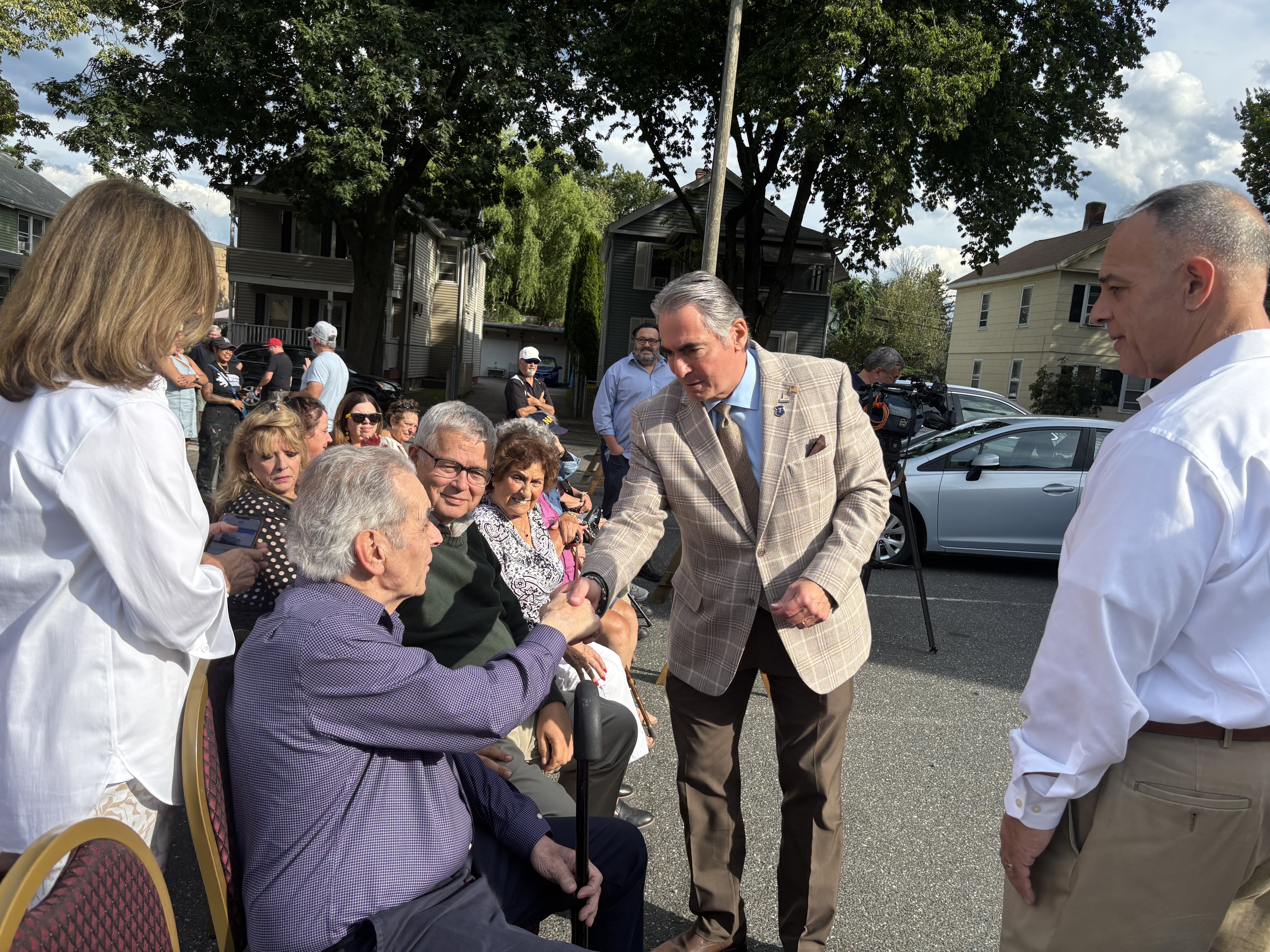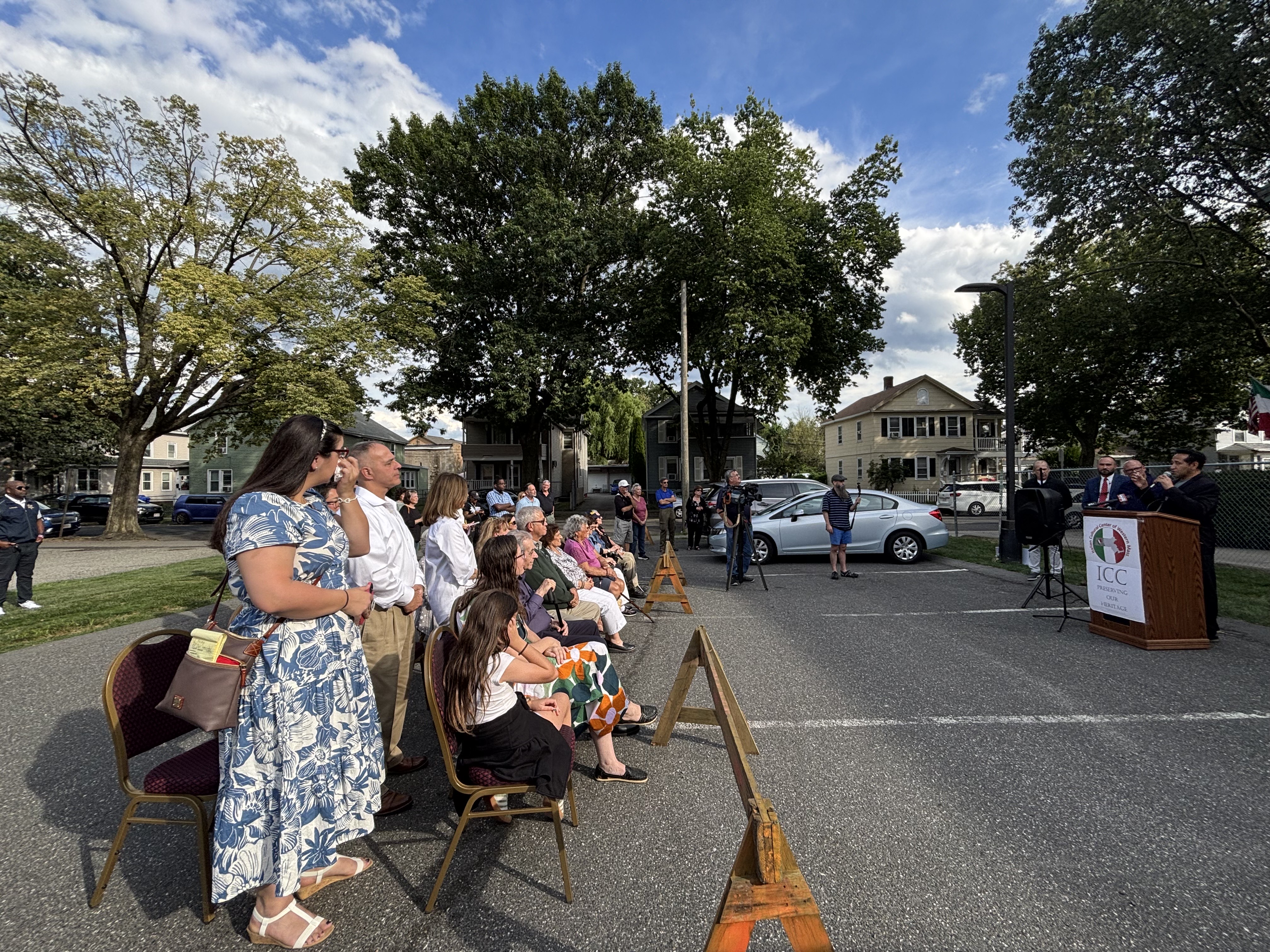 Mayor Sarno was honored to be in Springfield’s South End neighborhood with Common Wealth Murals Director Britt Ruhe, President of Italian Cultural Center of Western Massachusetts Charles Becker, the mural artist Eric Okdeh, local officials including City Council President Attorney Michael Fenton, Hampden County Sherriff Nick Cocchi, State Representative Carlos Gonzalez, Fire Commissioner BJ Calvi, President of the South End Citizens Council Leo Florian, Agawam City Council Vice President Anthony Russo, along with members of the ICC and community.