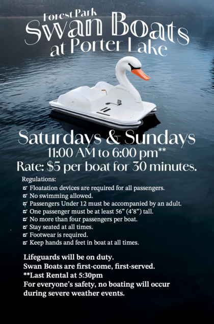The City of Springfield Department of Parks, Buildings, and Recreation Management (PBRM) has announced that the Swan Boats at Forest Park will be closed for the remainder of today, Saturday, September 6th, and tomorrow Sunday, September 7, 2025 due to inclement weather.