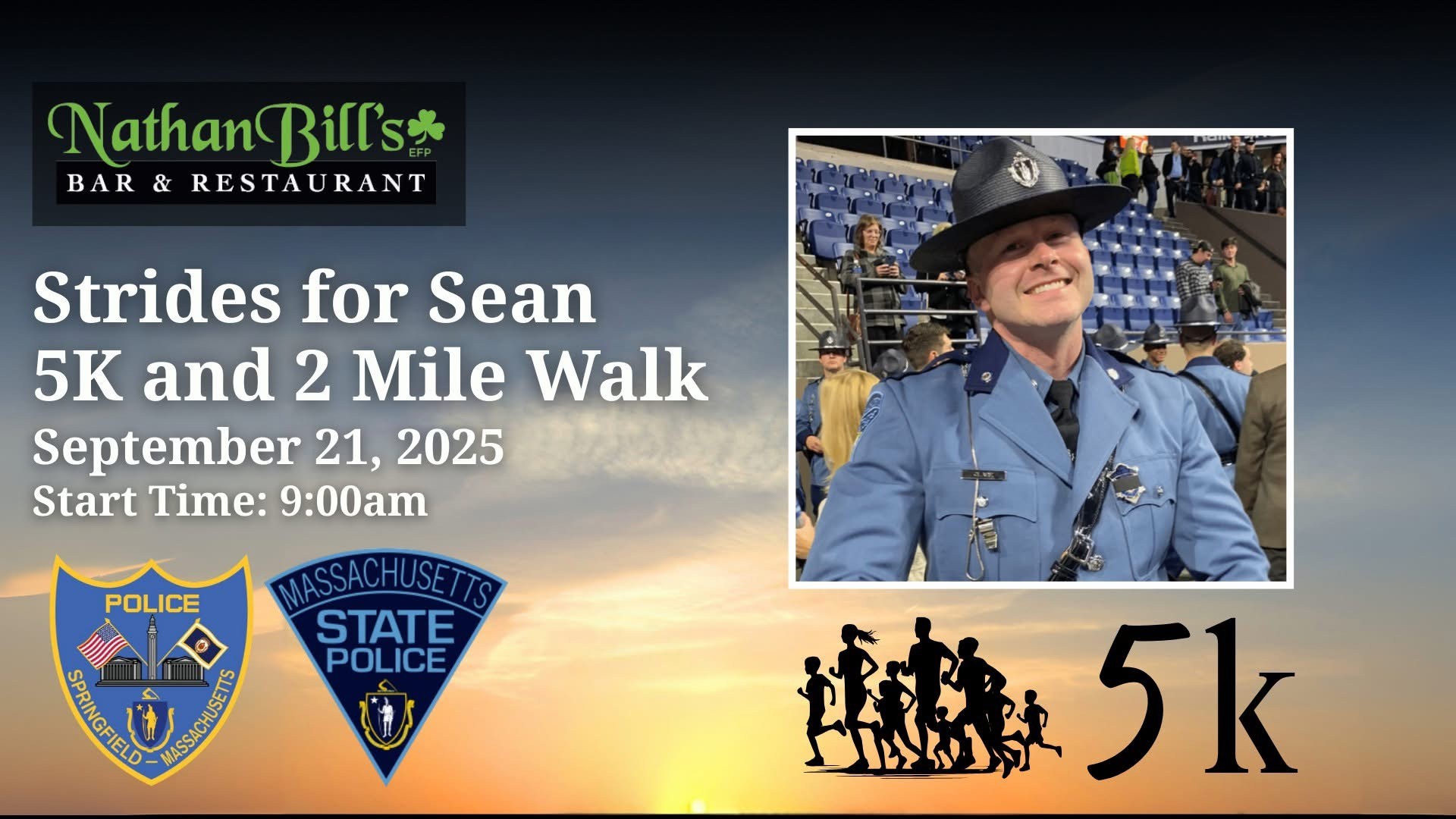 This event honors Trooper Sean Clark, a former Springfield Police Officer who went on to serve with the Massachusetts State Police. On June 10, 2025, Trooper Clark was struck by a vehicle during a traffic stop on the Mass Pike in Chicopee. The hit-and-run left him with life-threatening injuries; he continues intensive rehabilitation and faces a long road to recovery. The Strides for Sean 5K & 2 Mile Walk supports his recovery and provides direct assistance to Trooper Clark and his family.