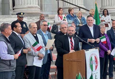 Chief of Staff Bill Baker, on behalf of Mayor Domenic J. Sarno and city and state officials joined with the Italian Cultural Center of Western Mass (ICCWM) as well as Springfield UNICO and Springfield Sons & Daughters of Italy to raise the Italian Flag in honor of Italian Heritage Month on the front steps of City Hall on Wednesday, October 1, 2025.