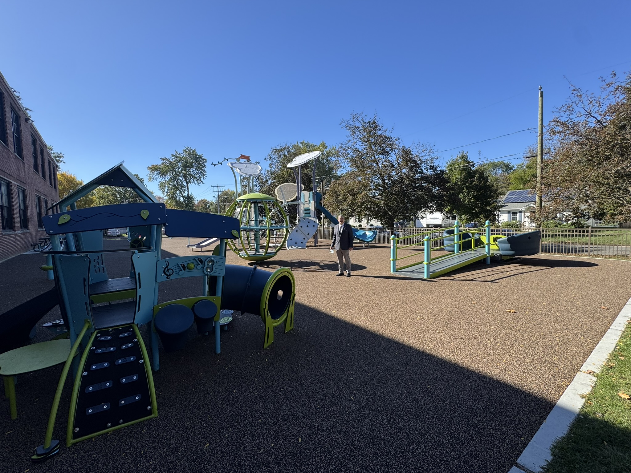 While at the school, Mayor Sarno had a chance to check out the new ADA compliant playscape that was recently added to Frederick Harris Elementary School.