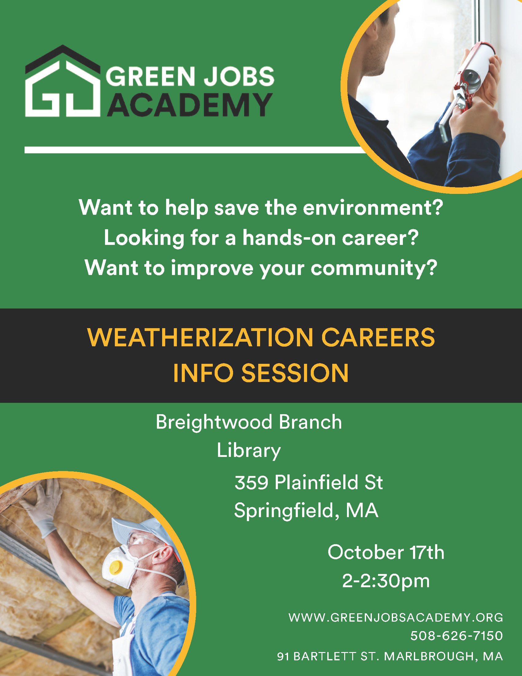 Please join us Friday to hear about Weatherization Career Opportunities from the Green Jobs Academy.