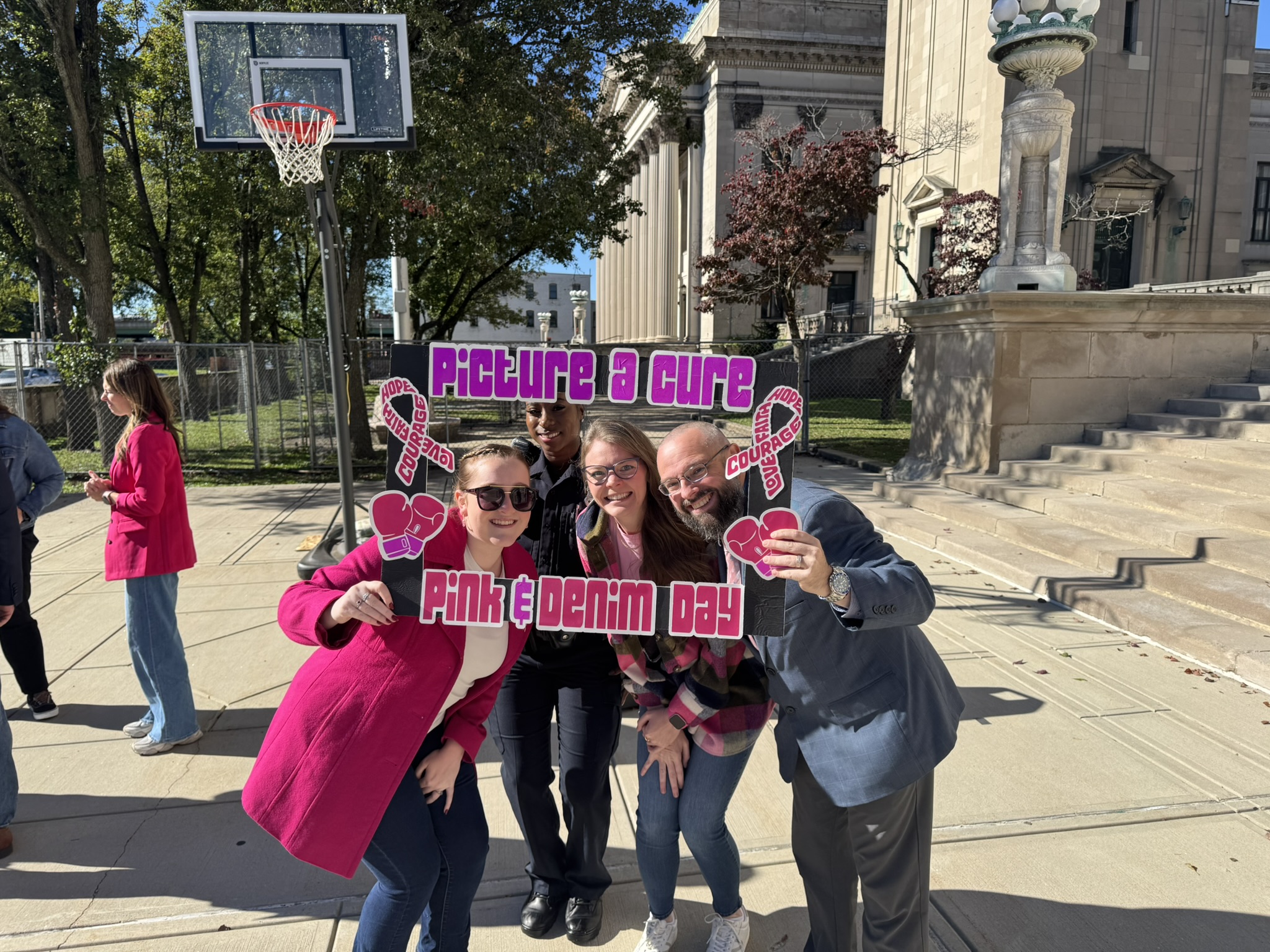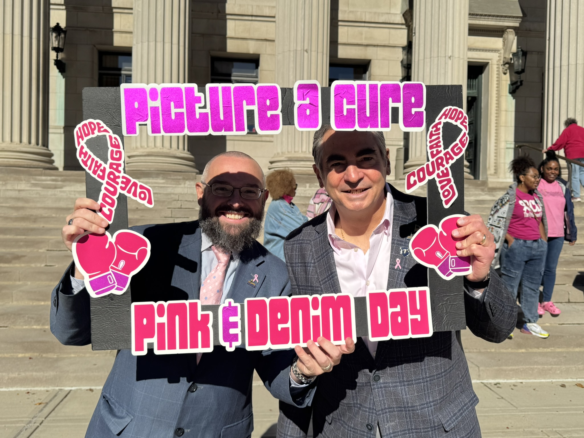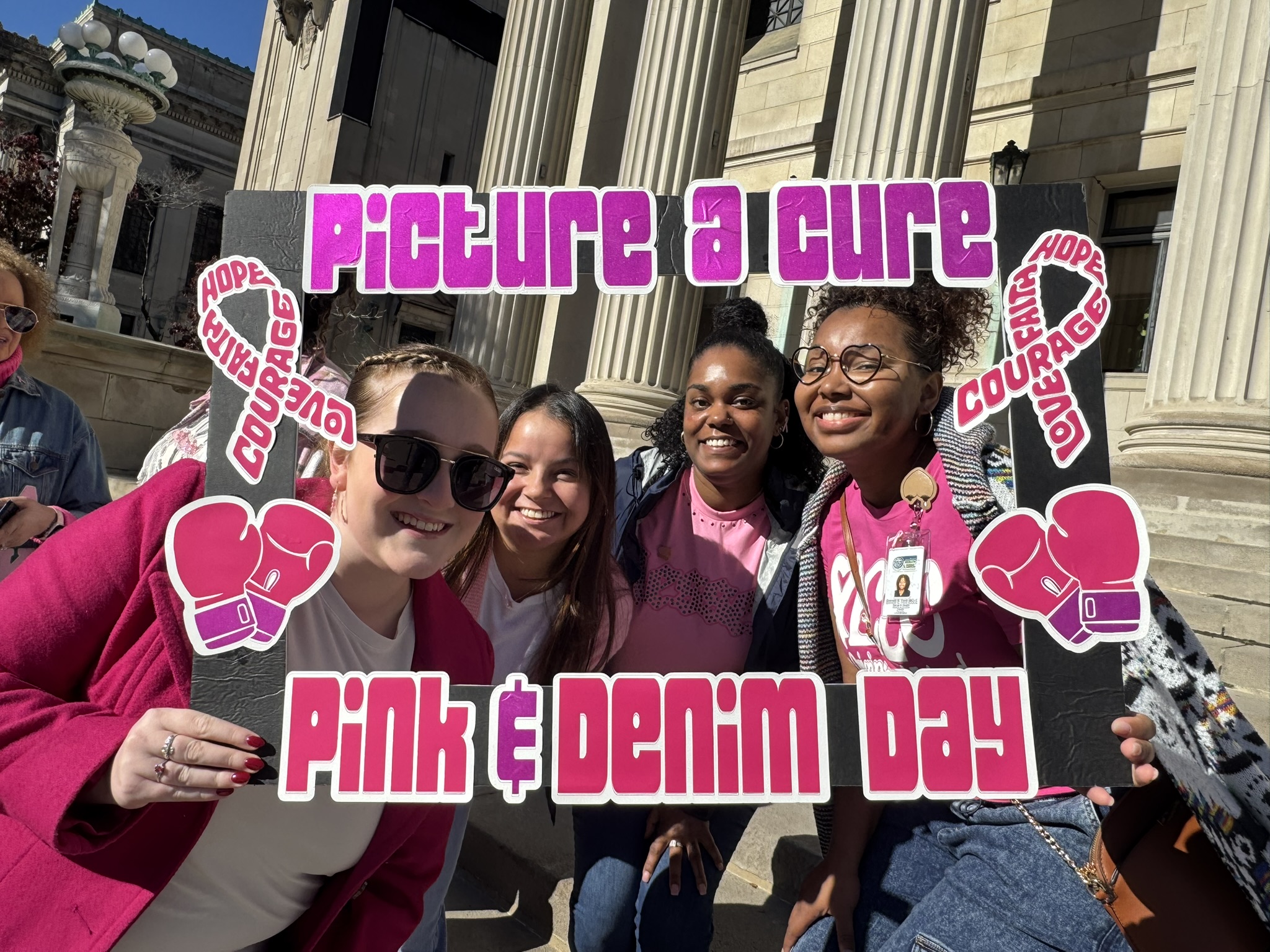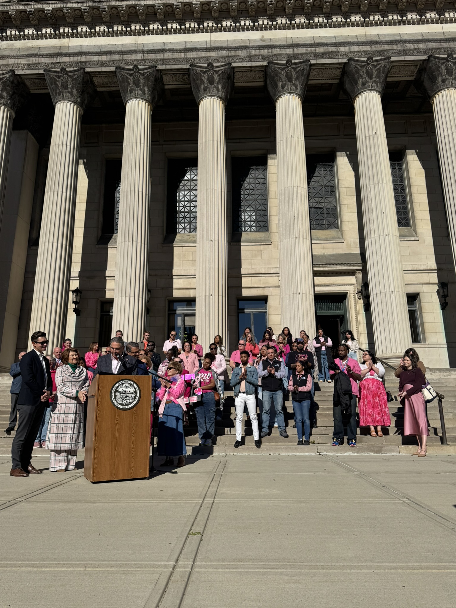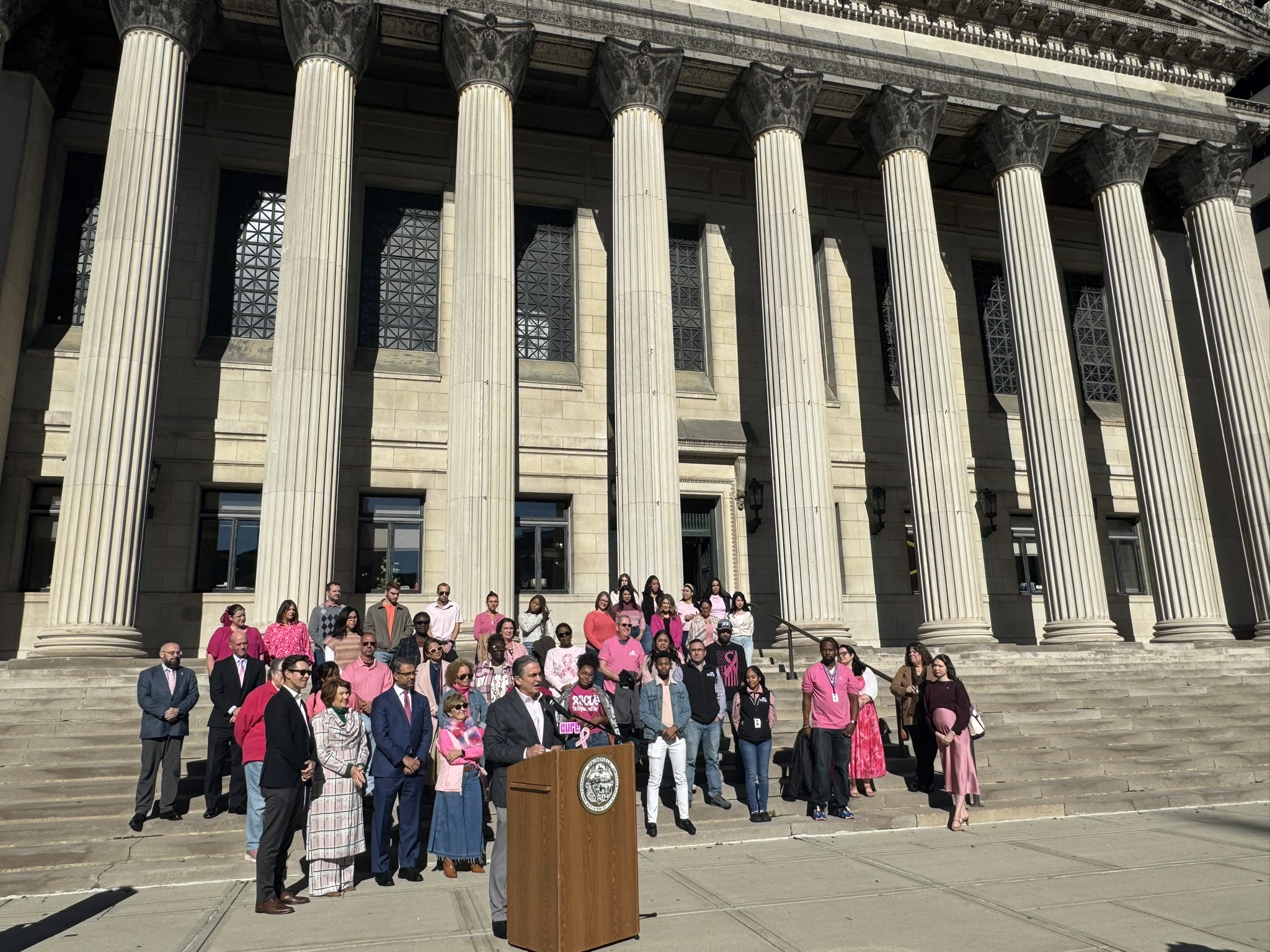 Mayor Domenic J. Sarno and City of Springfield and Springfield Public Schools - Massachusetts employees joined today to recognize and support Breast Cancer Awareness Month and the Rays of Hope with their annual “Pink & Denim Day” fundraising event on Thursday. The Pink & Denim Day event takes place each year ahead of the annual Rays of Hope - Walk & Run Toward the Cure of Breast Cancer taking place this Sunday, October 19, 2025.
