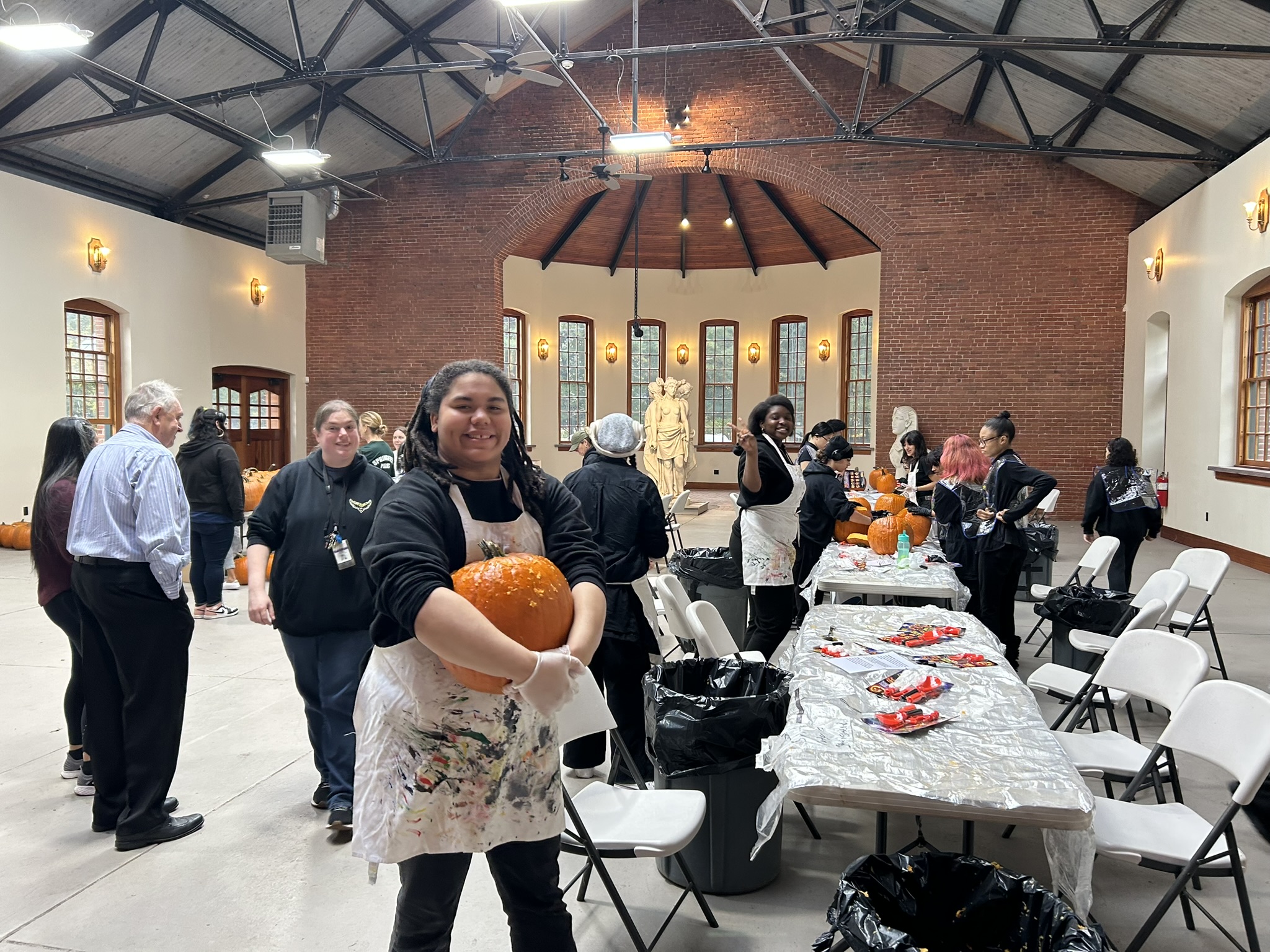 Today, the students from Central got the carving party started and began pumpkin-carving at the newly renovated Forest Park Monkey House. Later this week, our seniors will be busy carving more pumpkins at the Raymond Jordan Senior Center.