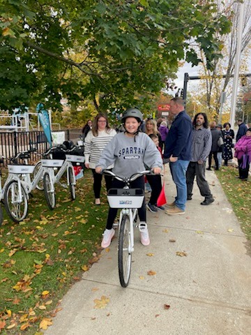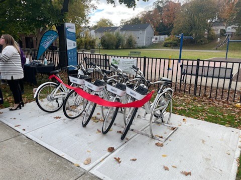 Springfield, MA – Deputy Development Officer Tina Quagliato Sullivan, the city’s Community Development team, Local and State Officials, the Indian Orchard Citizens Council and residents, joined for a special Ribbon Cutting Celebration to officially open the new ValleyBike Share Station now located at Myrtle Street Park in Indian Orchard.