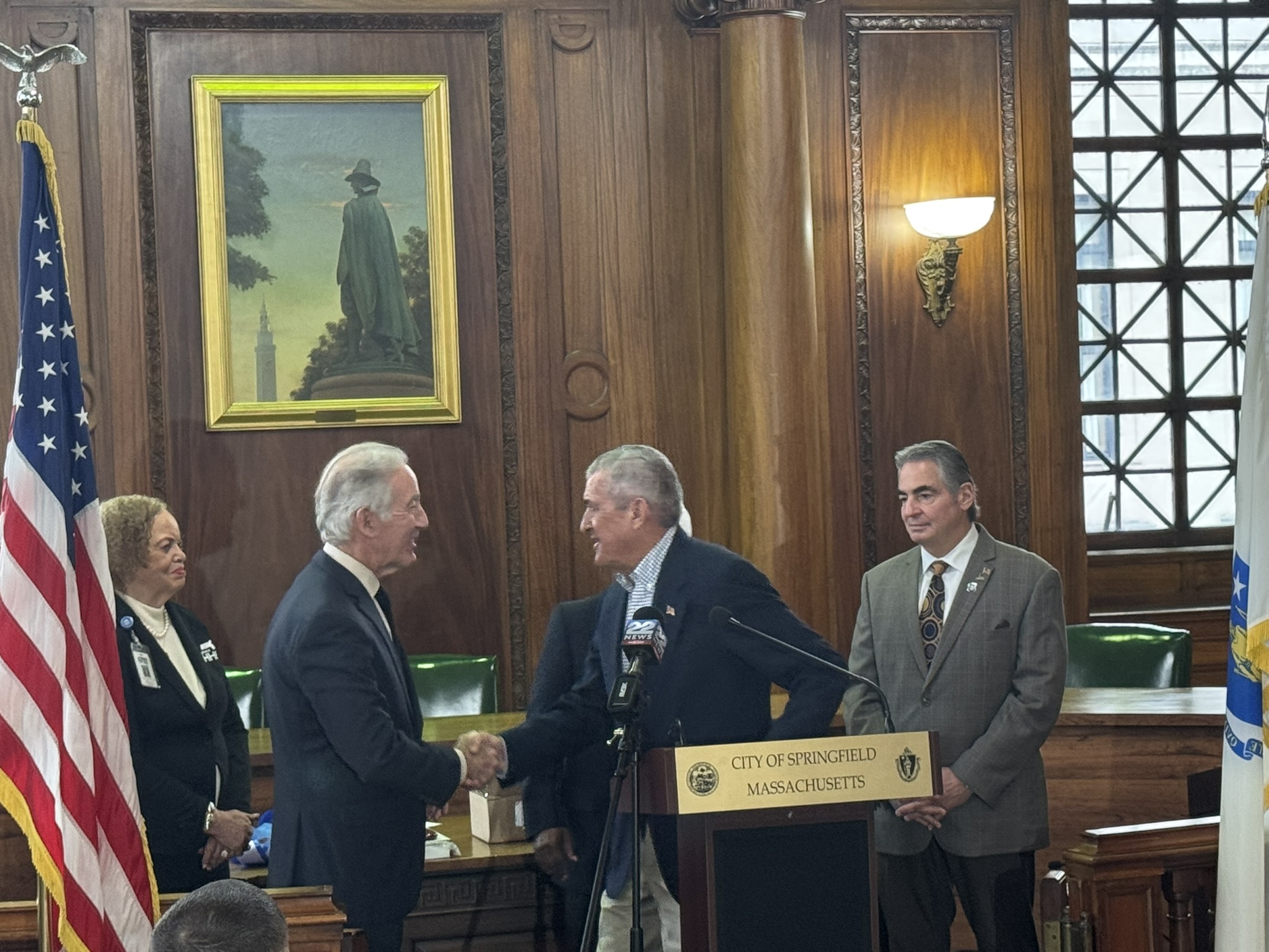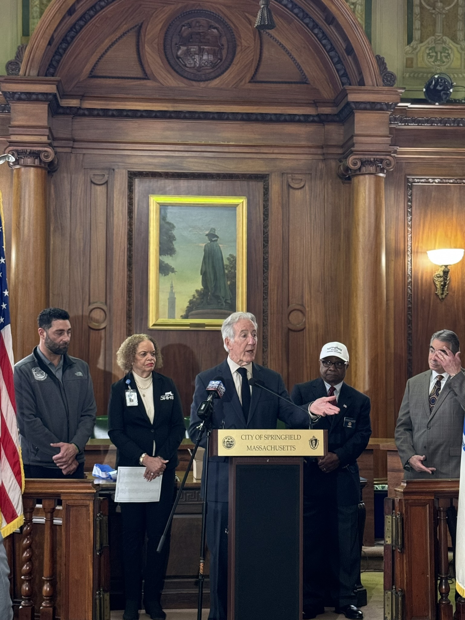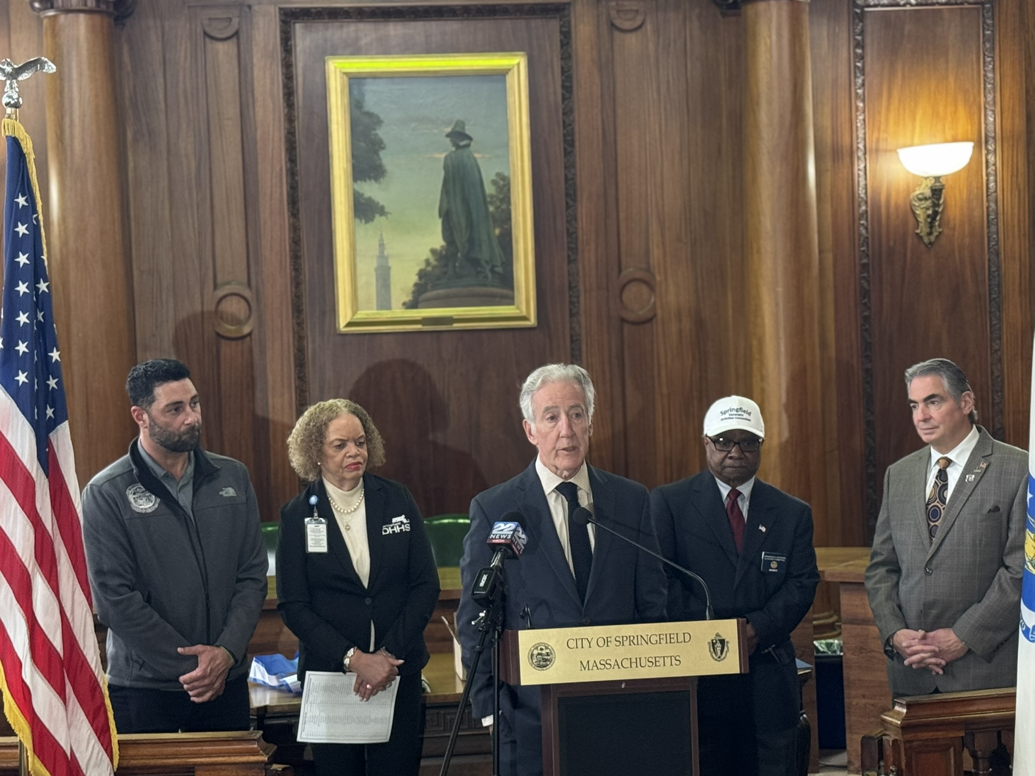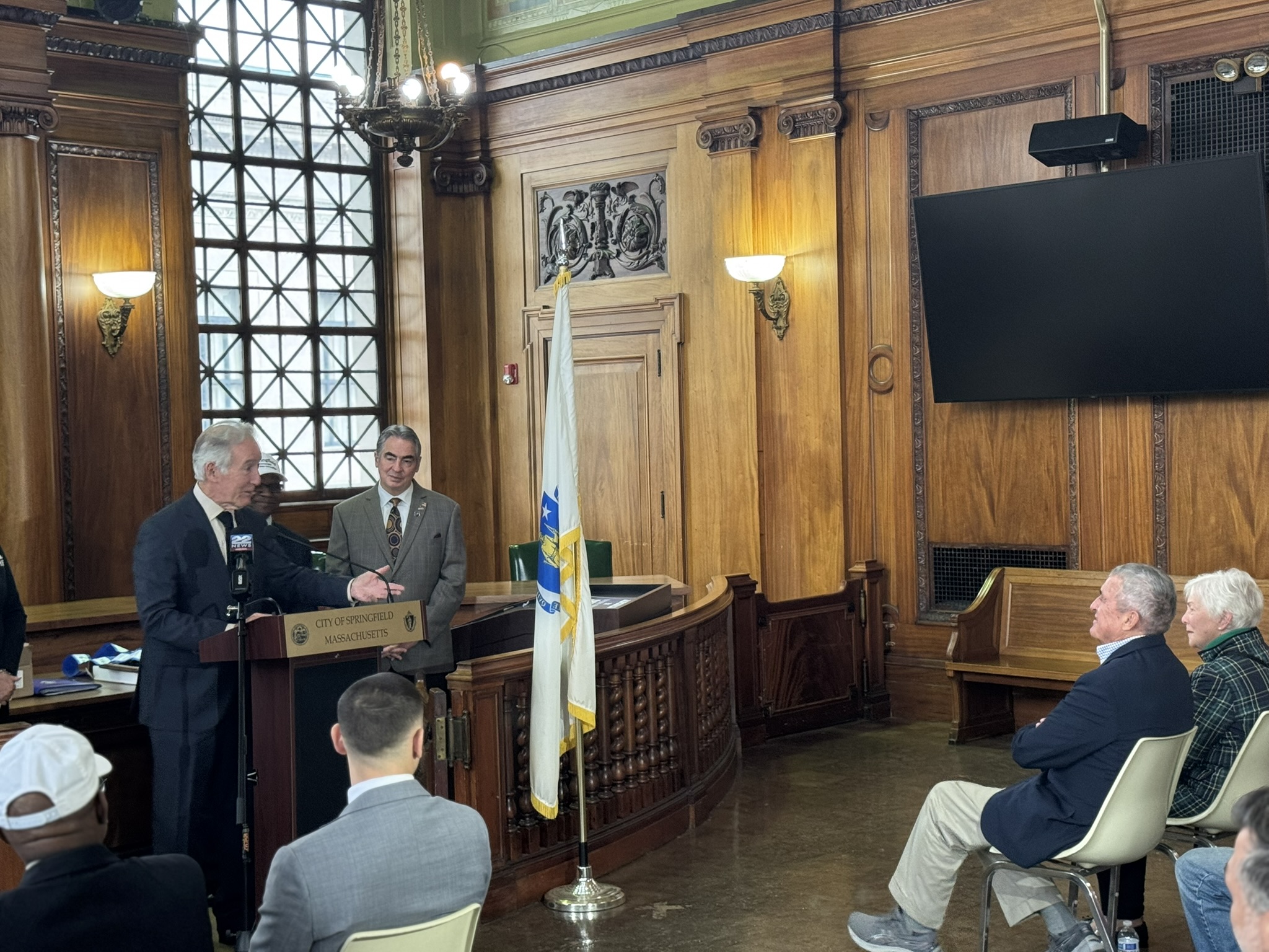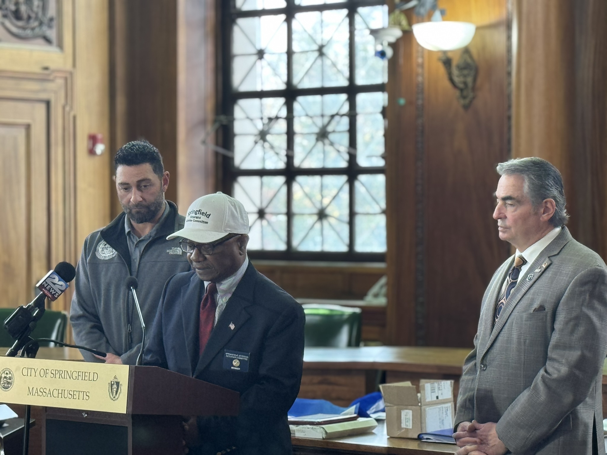 Mayor Domenic J. Sarno, Congressman Richard Neal, Veterans’ Services Director Joe DeCaro, Health & Human Services Commissioner Helen Caulton Harris and the Springfield Veterans’ Activities Committee joined to announce the 2025 Veteran of the Year and Veterans’ Day Parade Marshall this afternoon City Hall.