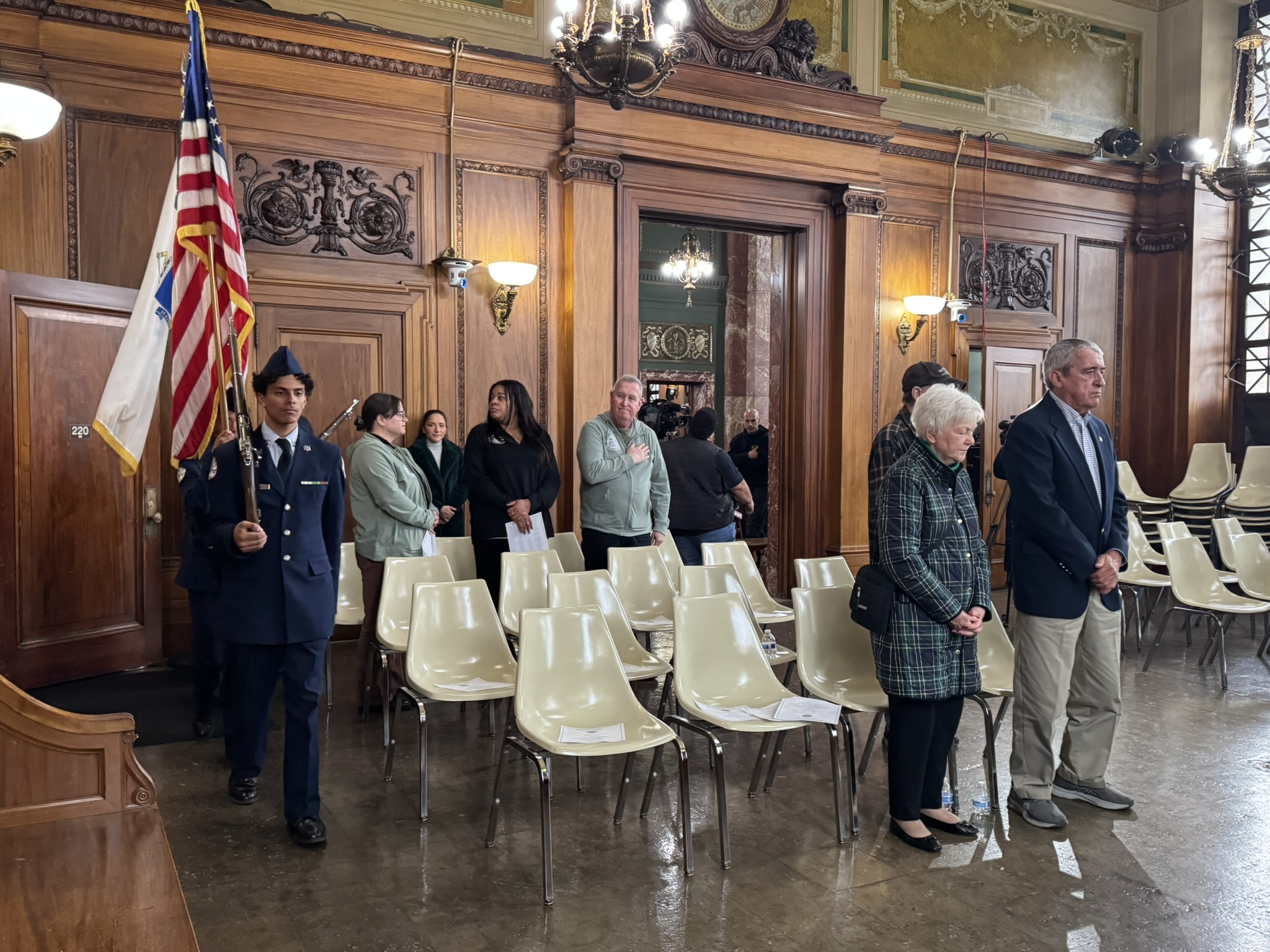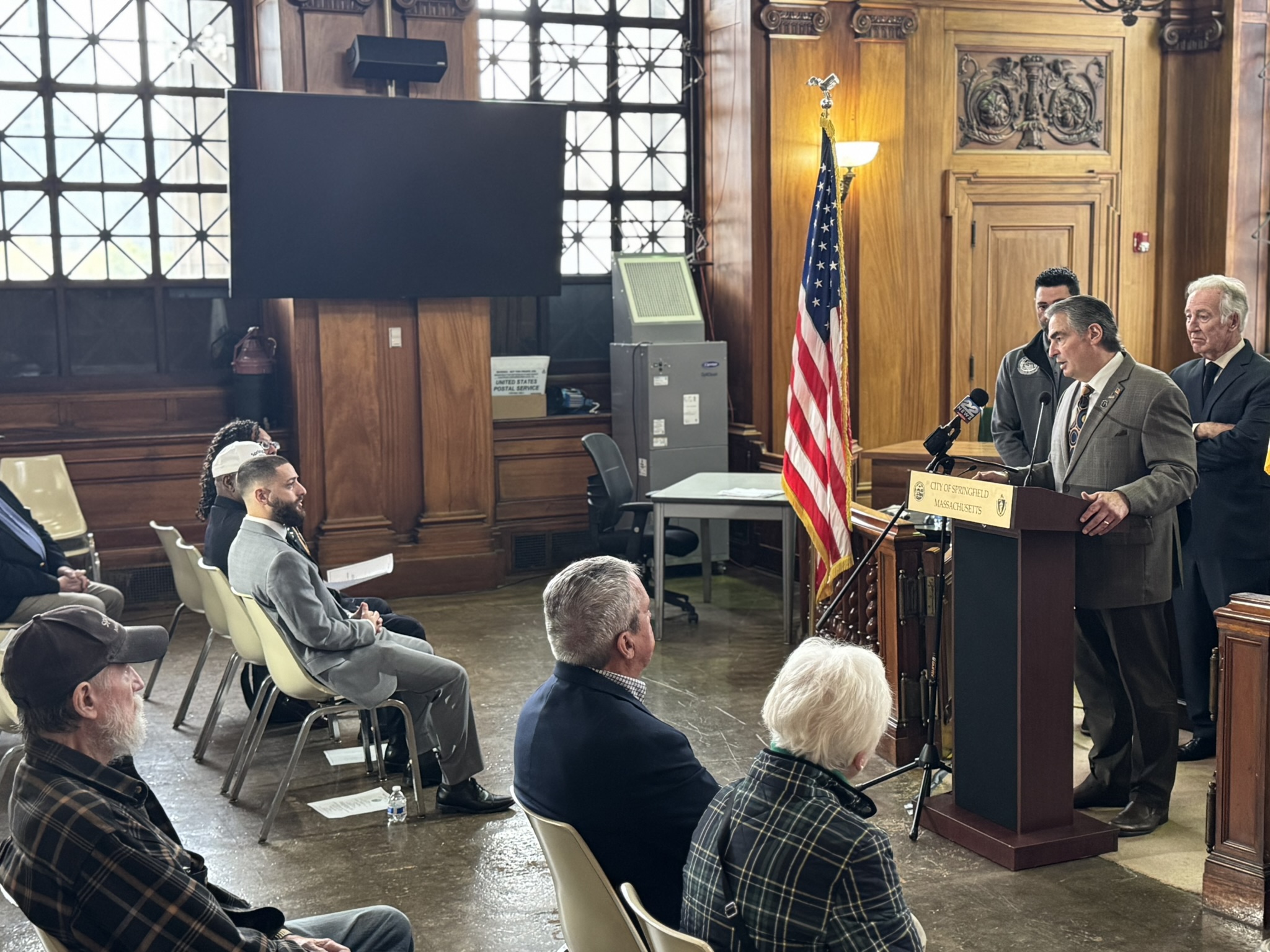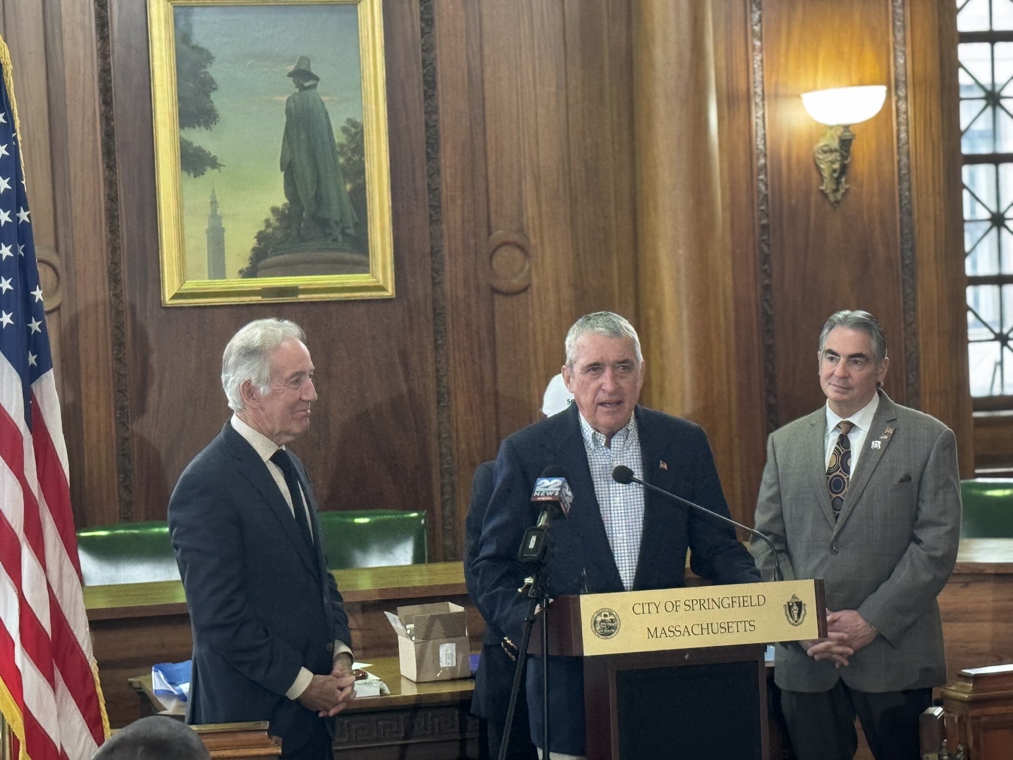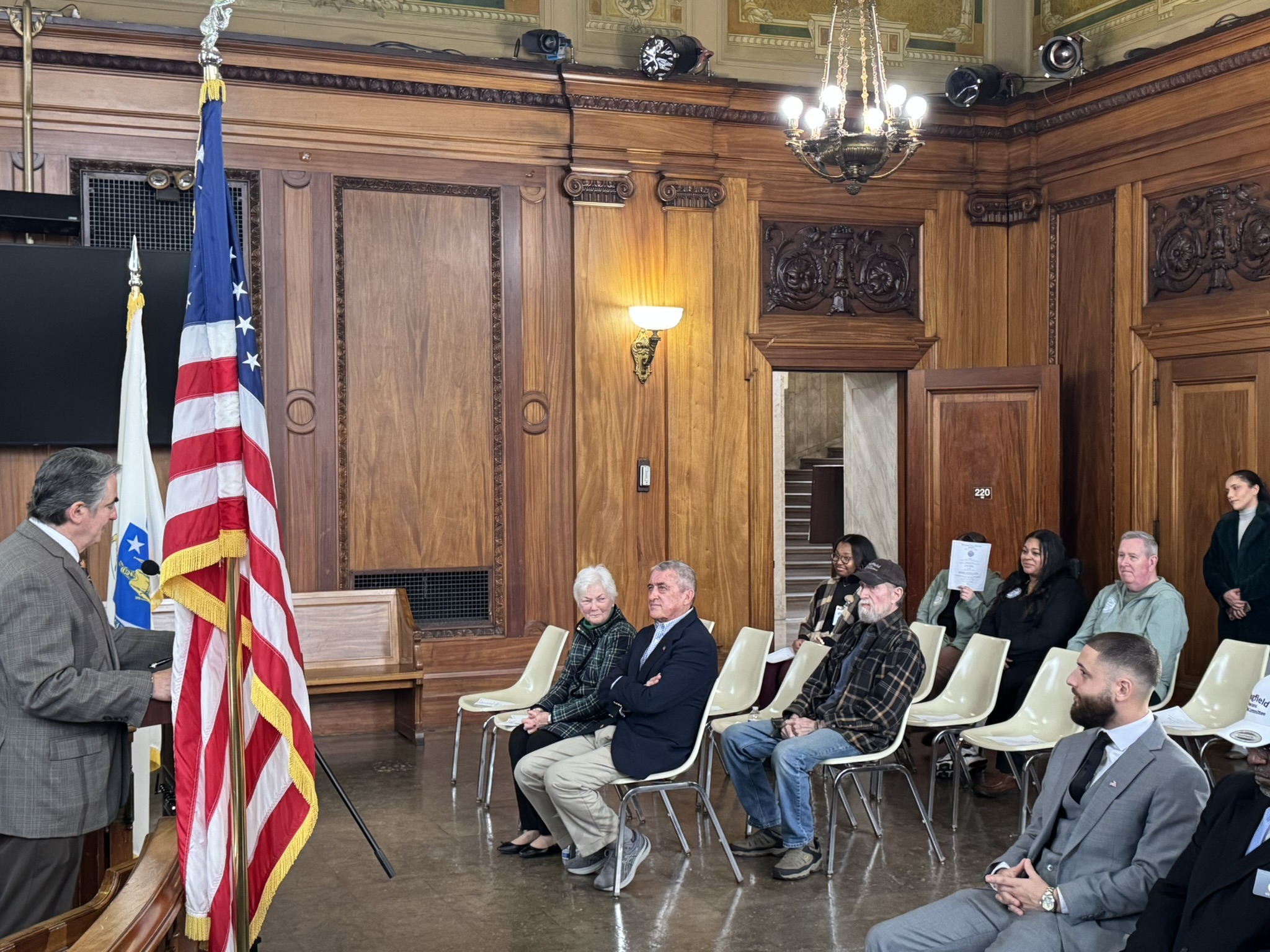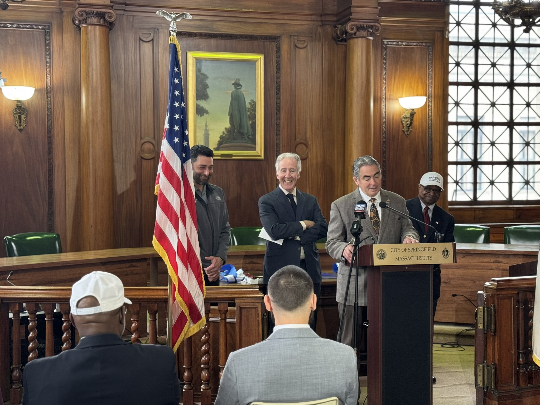 Mayor Domenic J. Sarno, Congressman Richard Neal, Veterans’ Services Director Joe DeCaro, Health & Human Services Commissioner Helen Caulton Harris and the Springfield Veterans’ Activities Committee joined to announce the 2025 Veteran of the Year and Veterans’ Day Parade Marshall this afternoon City Hall.