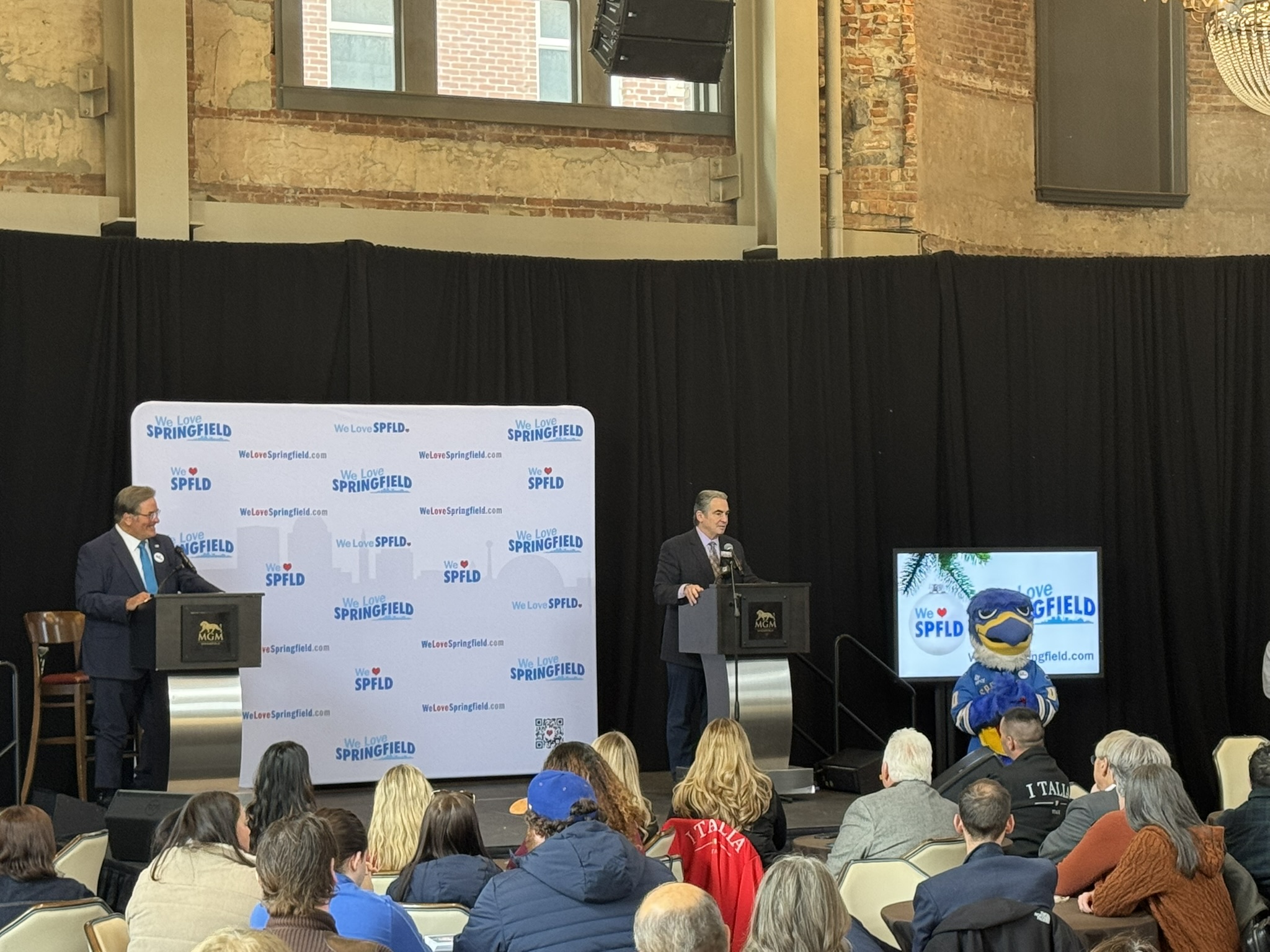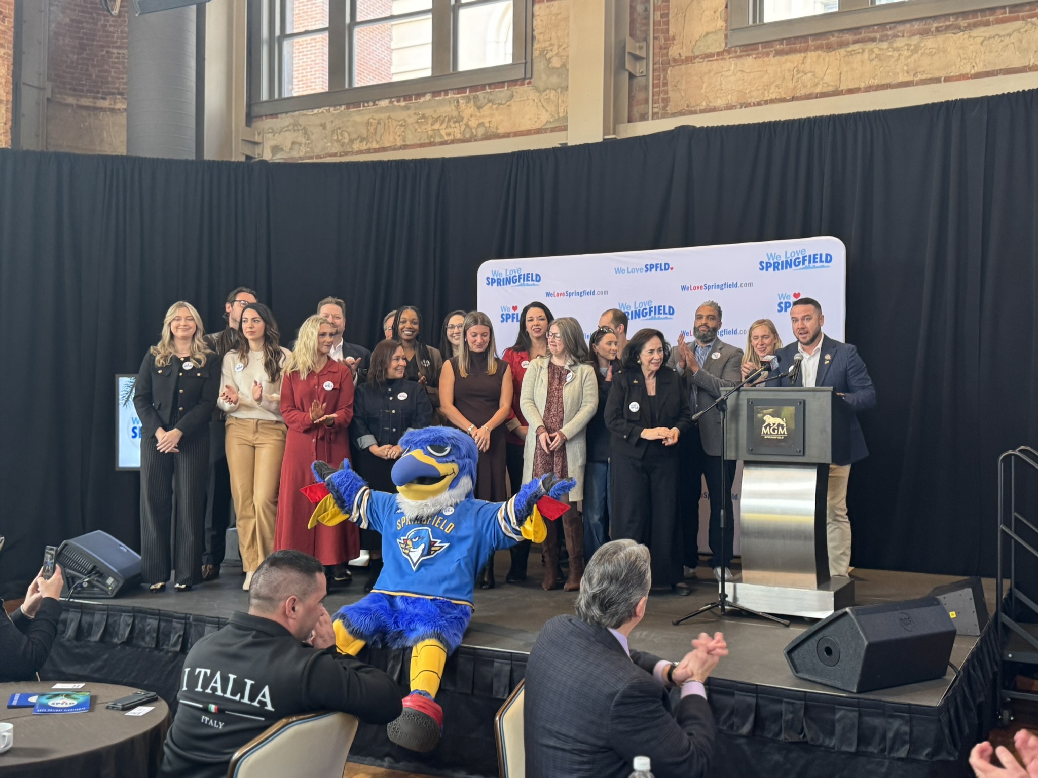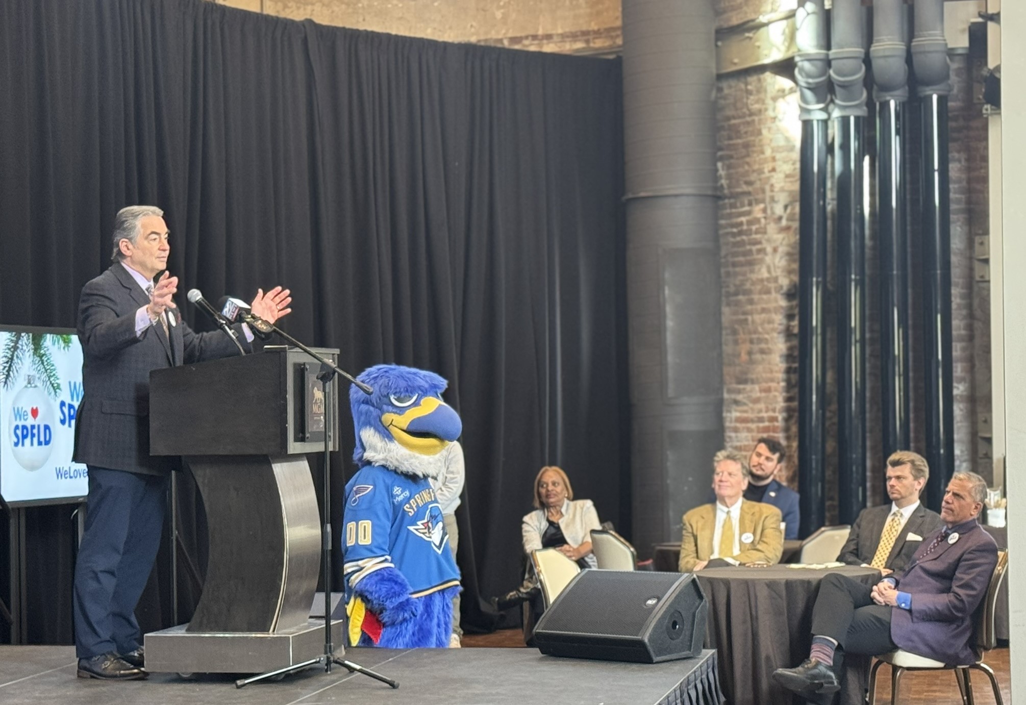 On Thursday, November 5, 2025, at 10:30am at The Armory at MGM Springfield, the new Celebrate Springfield Committee came together with Mayor Domenic J. Sarno, Chief Development Officer (CDO) Tim Sheehan, Spirit of Springfield President Judy Matt, along with Paul Dionne, Naismith Basketball Hall of Fame Vice President of Marketing to announce plans for the “We Love Springfield” campaign. Anthony Cignoli, President of A. L. Cignoli Company, served as the emcee.