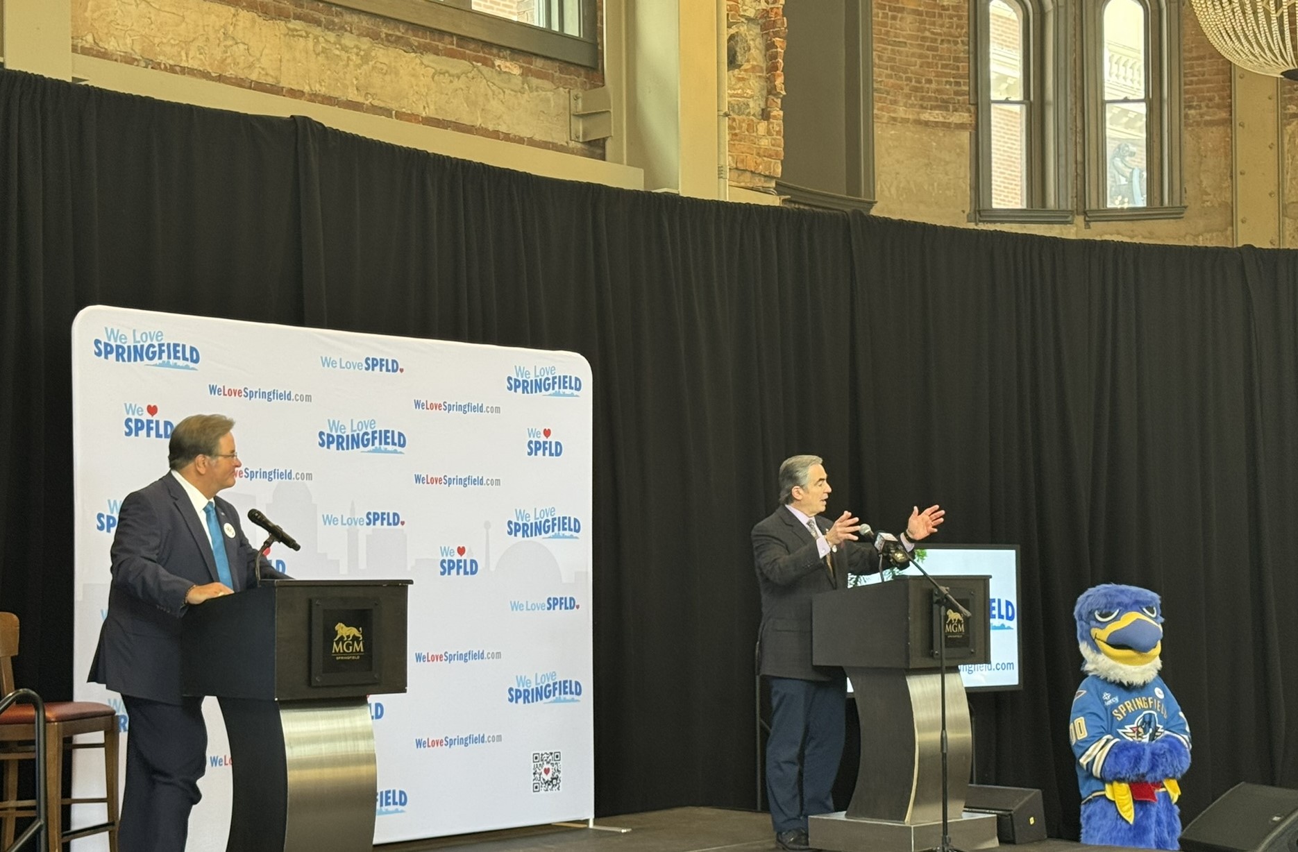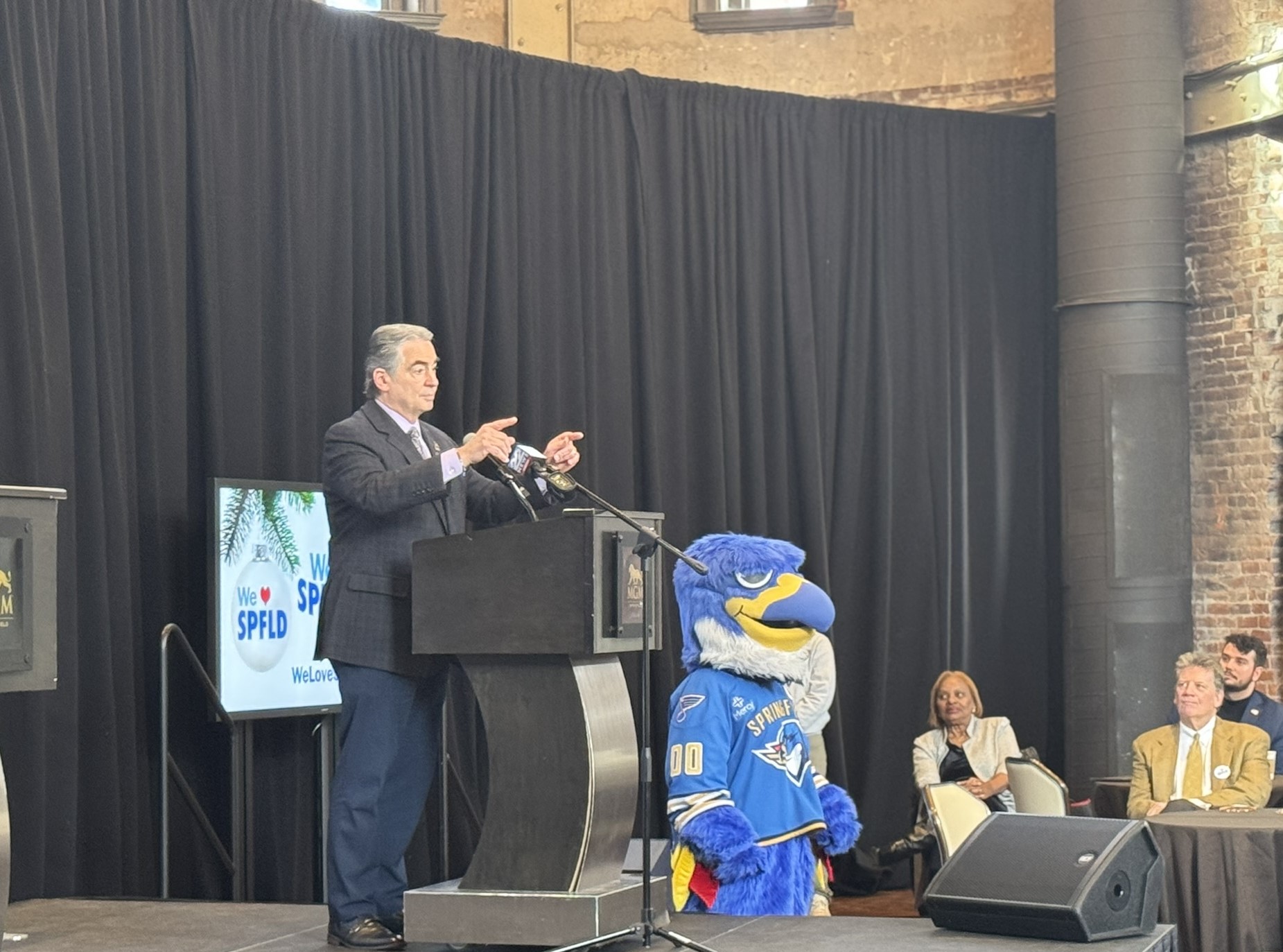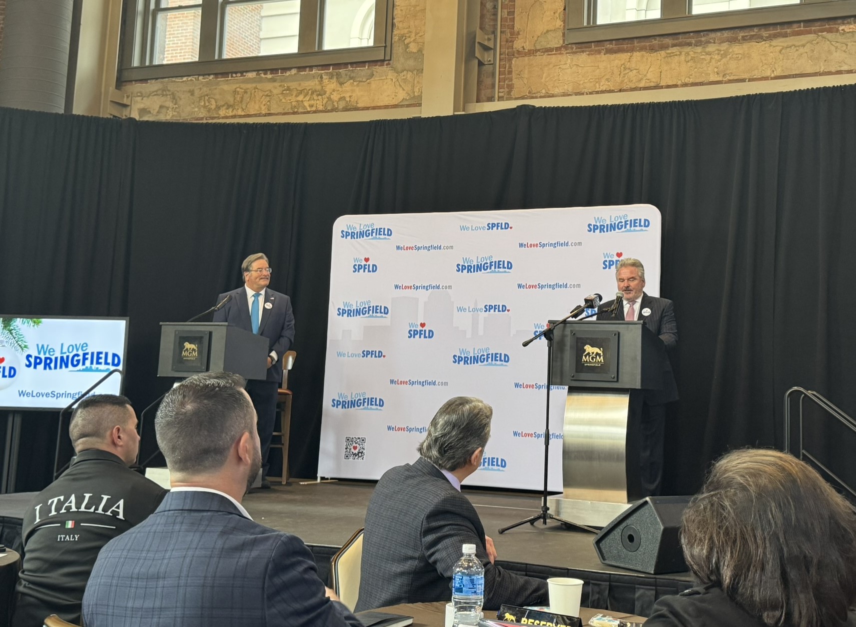 On Thursday, November 5, 2025, at 10:30am at The Armory at MGM Springfield, the new Celebrate Springfield Committee came together with Mayor Domenic J. Sarno, Chief Development Officer (CDO) Tim Sheehan, Spirit of Springfield President Judy Matt, along with Paul Dionne, Naismith Basketball Hall of Fame Vice President of Marketing to announce plans for the “We Love Springfield” campaign. Anthony Cignoli, President of A. L. Cignoli Company, served as the emcee.