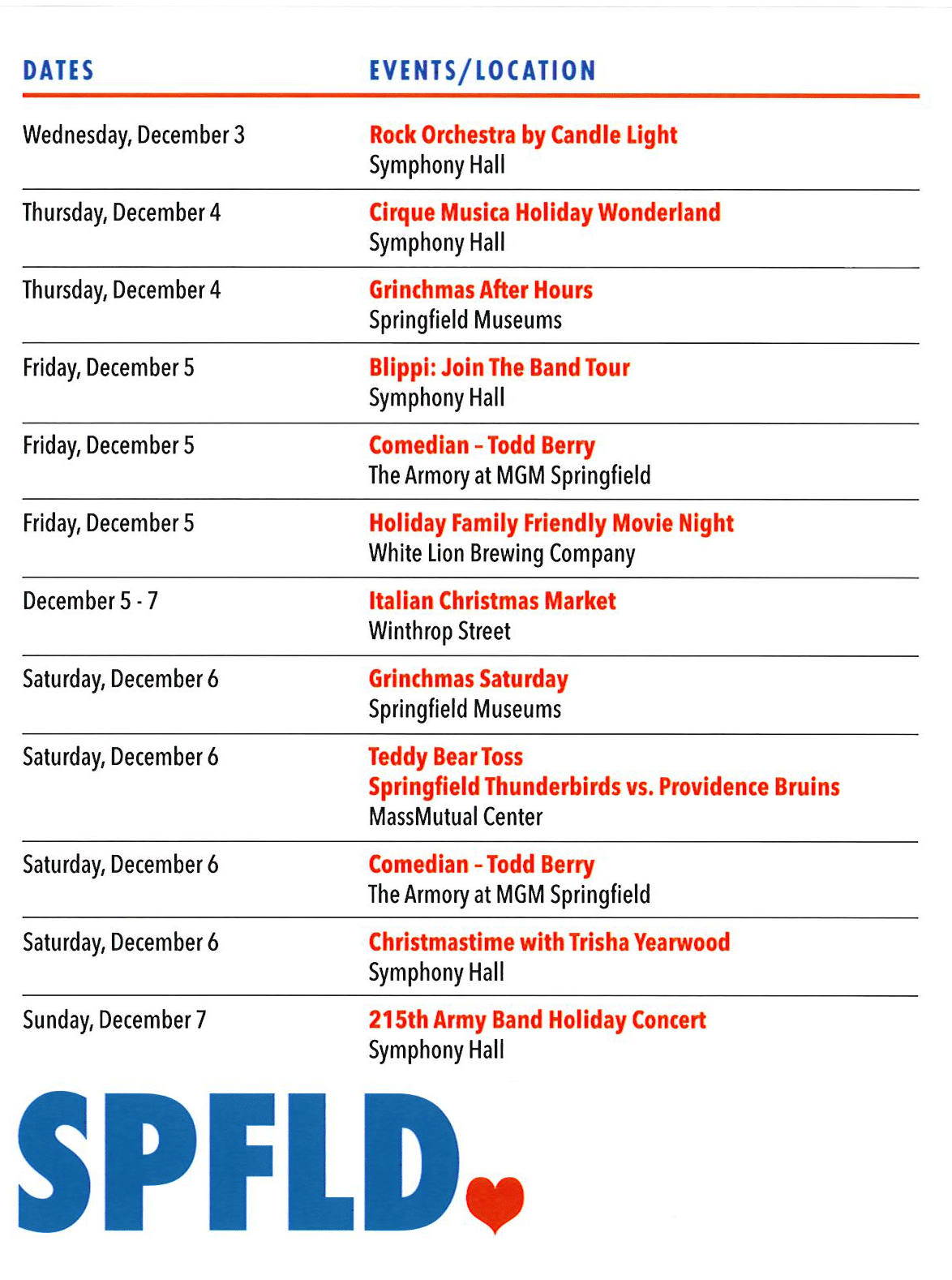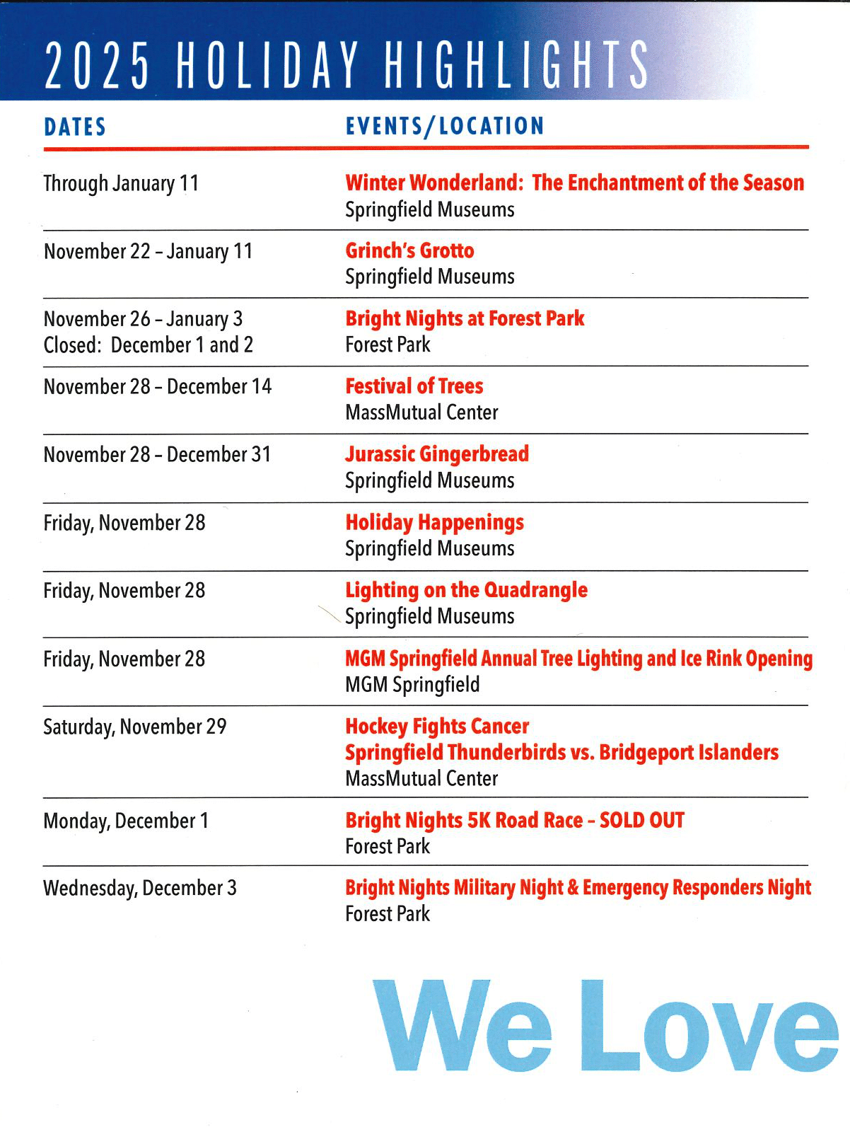 For more information about “We Love Springfield,” and a full calendar of some of Springfield’s premier holiday events, visit https://www.welovespringfield.com/.