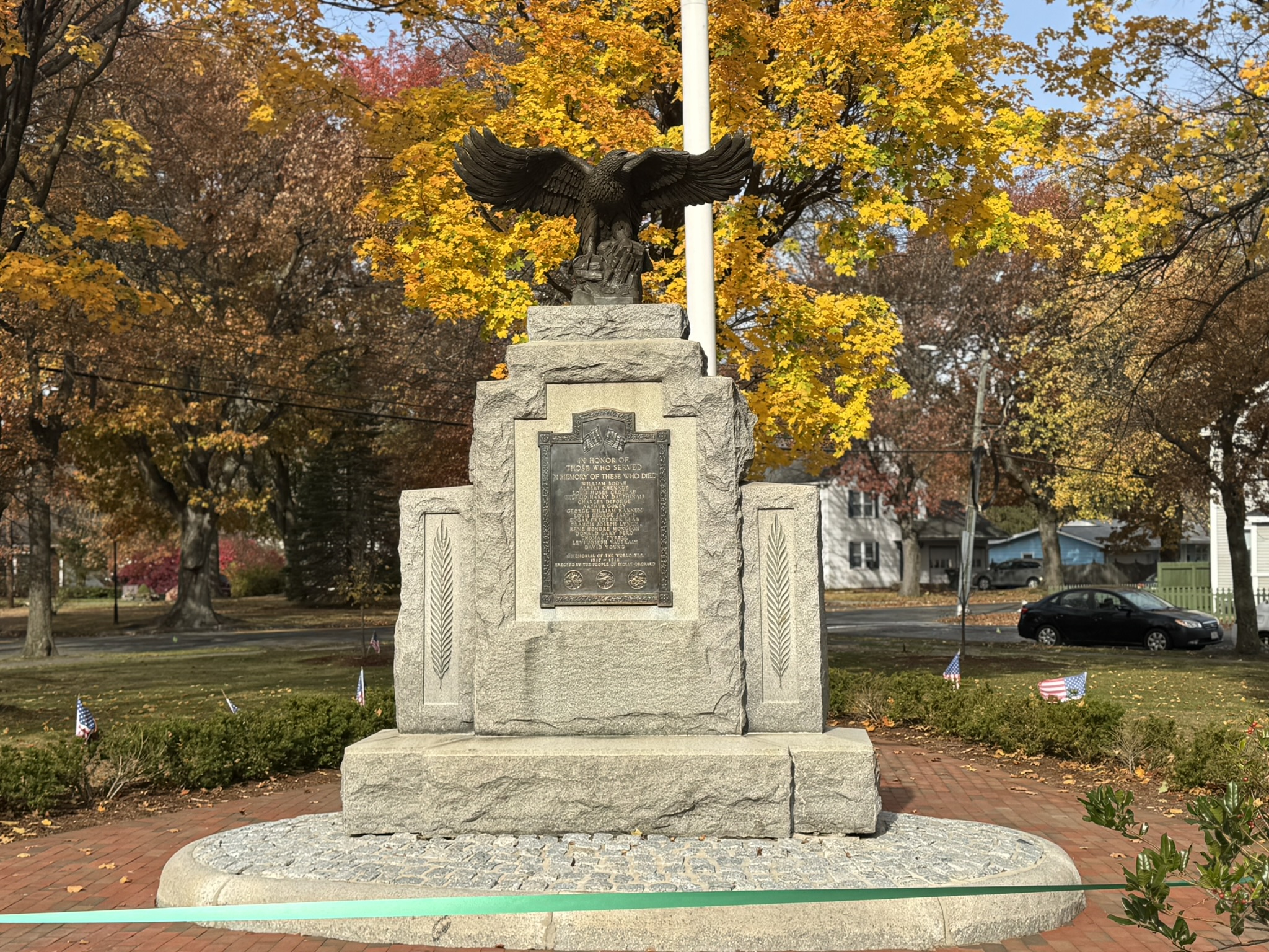 Working with the Indian Orchard Citizens Council and neighborhood residents, the Department of Parks, Buildings and Recreation Management (PBRM), has completed improvements to Godfrey Triangle, including restoration of the World War I Memorial, replacement of the missing bronze eagle, installation of a walkway, benches and a 60 ft. flagpole, as well as tree plantings and irrigation.