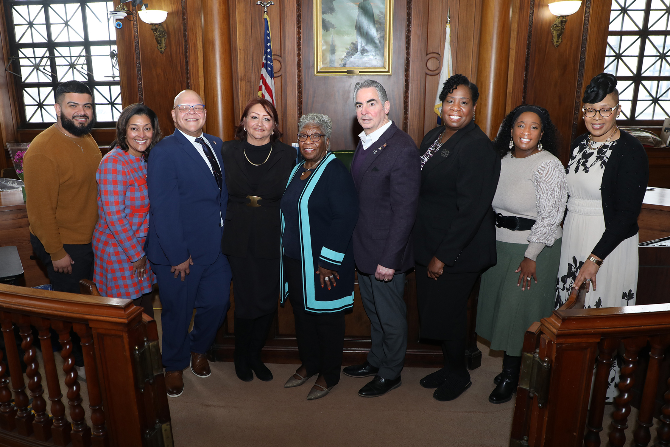 From Left to Right, Executive Assistant to the School Committee Triny Vargas, Denise Hurst, Gummersindo ‘Manny’ Gomez Jr., Rosa Valentin, Barbara Gresham, Chairman Mayor Domenic J. Sarno, Superintendent of Schools Dr. Sonia Dinnall, Vice Chairwoman Latonia Monroe-Naylor, and Ayanna Crawford.