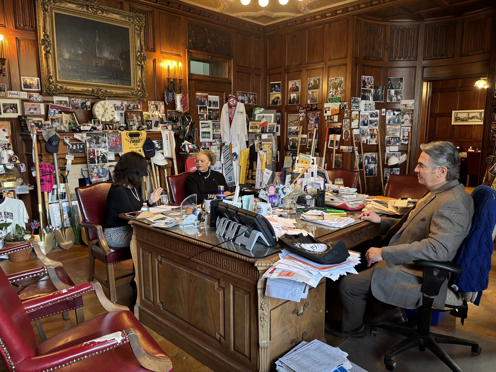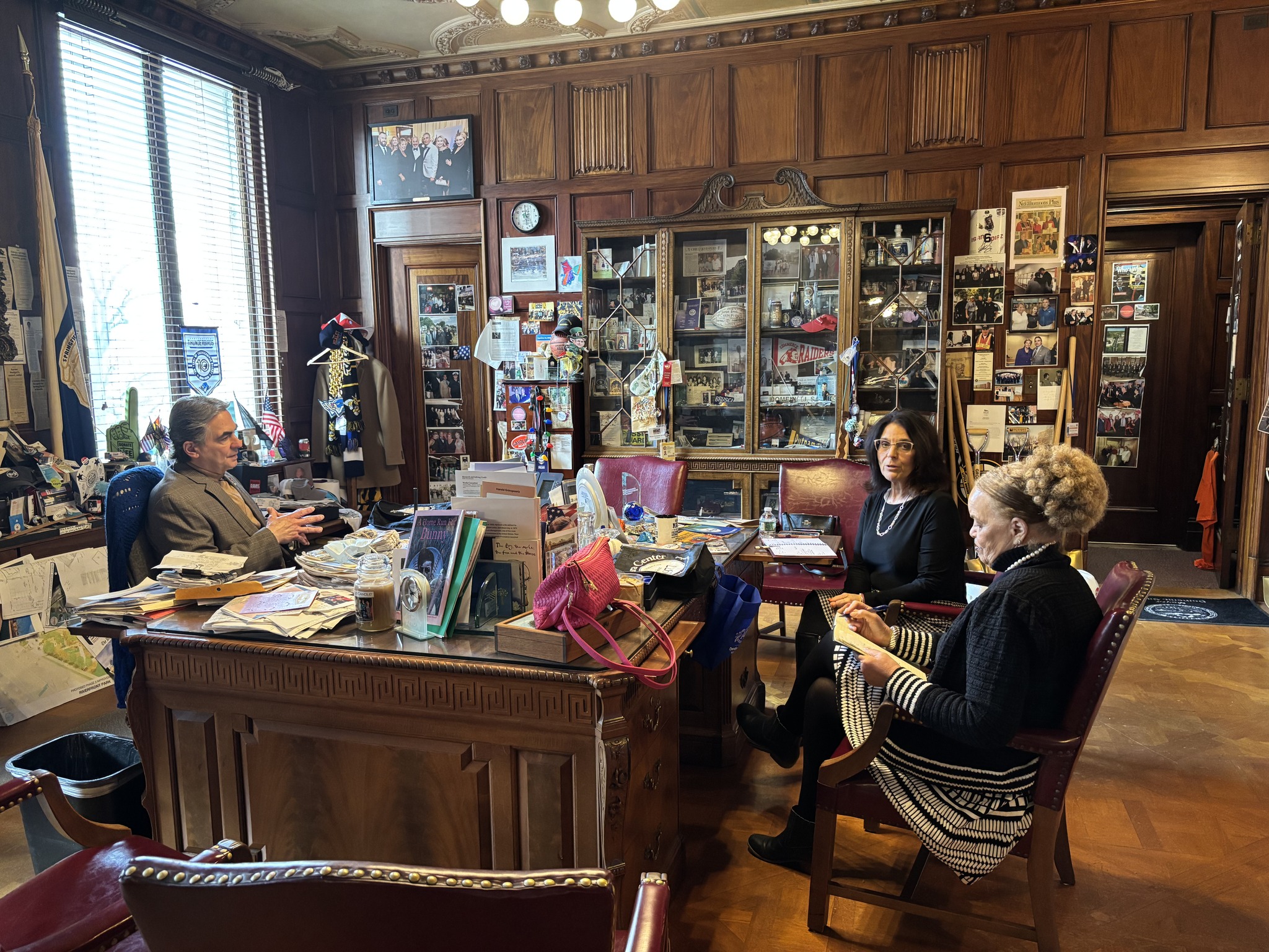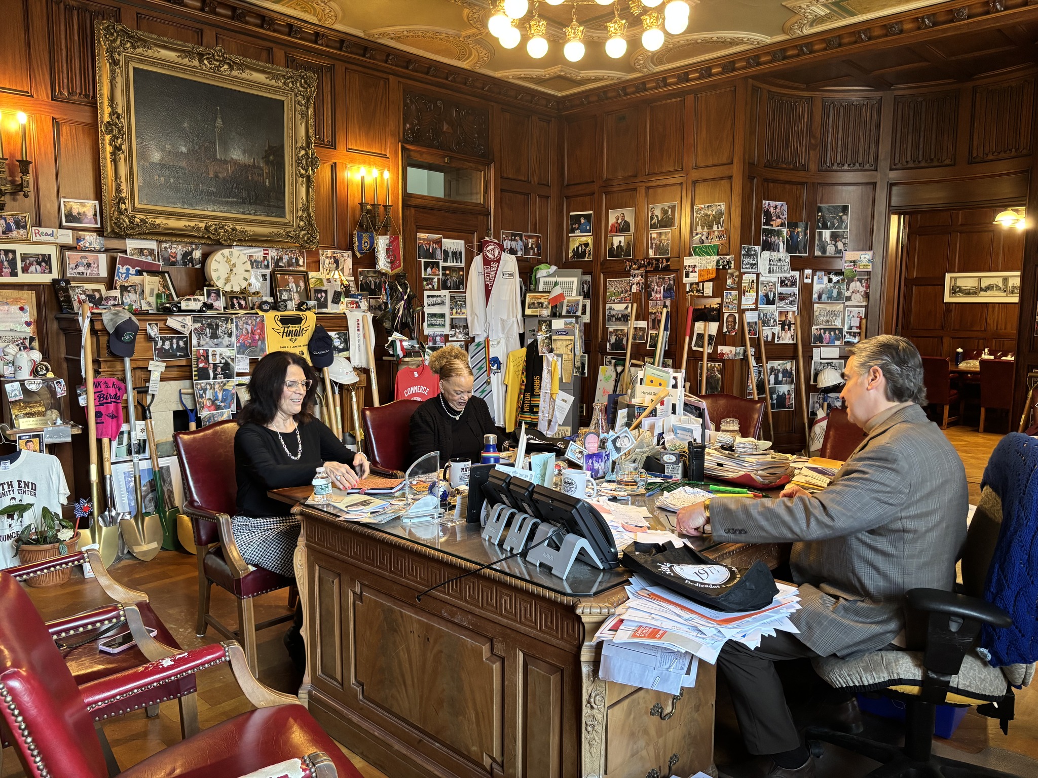 Mayor Domenic J. Sarno, Health and Human Services Commissioner Helen Caulton Harris met with the CEO of the Gándara Center Lois Nesci for updates on their mental health and addiction program services.