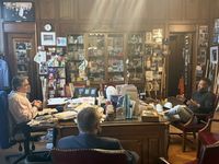 Mayor Sarno visits with Retired Treasurer and Chief Financial Officer Stephen Valenti