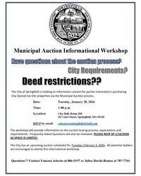 he City of Springfield will be holding a Municipal Property Auction Information Workshop on January 20, 2026.