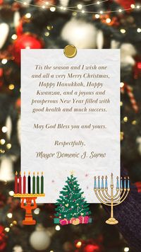 Mayor Domenic J. Sarno was happy to see the front door to the Mayor’s Office decked out for the holidays as departments throughout the city prepare for the Holiday Door Decorating Contest.