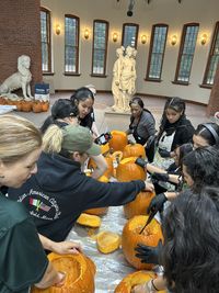 Mayor Sarno and PBRM Director Ashe thank Central High School Students for their help carving hundreds of Pumpkins for Springfield’s “Pumpkin Stroll After Dark”