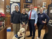 Mayor Domenic J. Sarno enjoyed a visit with his daughter Cassandra, Nina, and Becky from the Hampden County Sheriff Office, along with Therapy Dog Willow- a beautiful golden retriever.