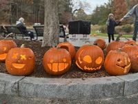 Mayor Sarno and PBRM Director Ashe thank Central High School Students for their help carving hundreds of Pumpkins for Springfield’s “Pumpkin Stroll After Dark”