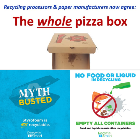 2. Styrofoam containers of any type CANNOT be placed in recycling. Any styrofoam container located in recycling containers will not be collected.