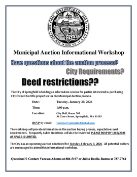 The City of Springfield will be holding its first Real Estate Auction of 2026 on Tuesday, February 3, 2026 at Springfield City Hall. SAVE THE DATE! More Information will be released soon.