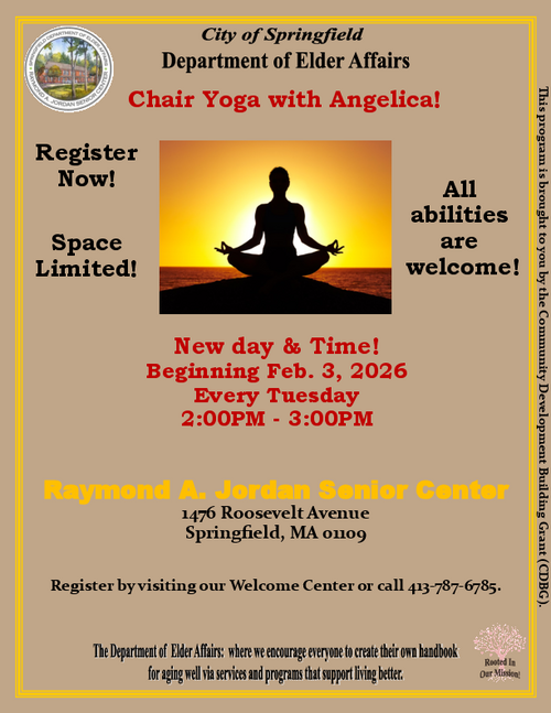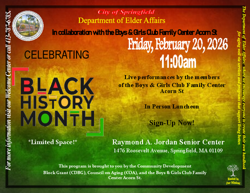 This program will take place in the 2nd Fl Multipurpose Room at the Raymond A. Jordan Senior Center.