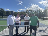 Mayor Sarno, Parks Director Ashe, City Councilors Walsh & Click-Bruce join with the Springfield Pickleball Association to cut ribbon at Greenleaf Park’s new Pickleball Courts